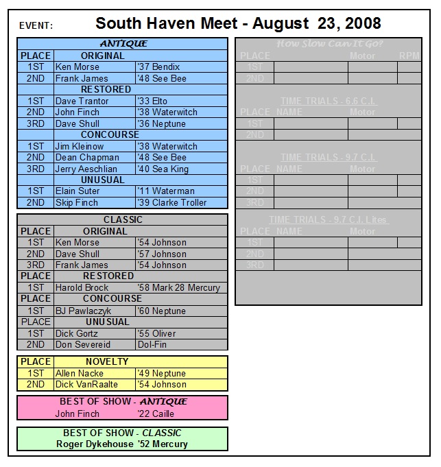 Wolverine Chapter Meet in South Haven, Michigan on Saturday August 23, 2008