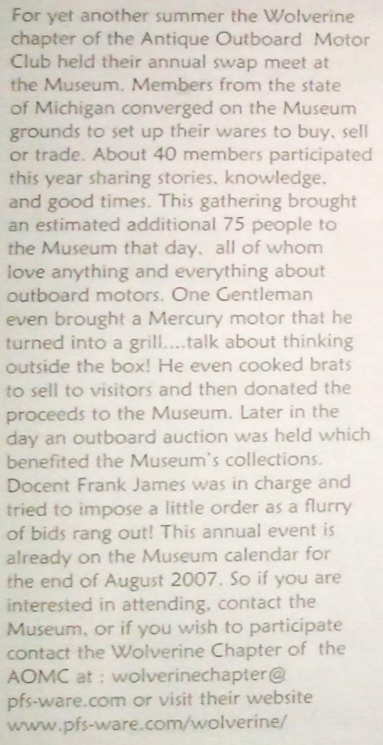Our South Haven meet was held on a wonderful day and featured a great auction put on by the Michigan Maritime Museum netting $1160.50 - all going to the museum to support their on-going operating costs. This was more than double last year's amount. Lunch was furnished by the Maritime Museum and the ribs, beans and veggie salads were wonderful.