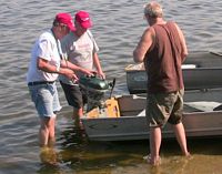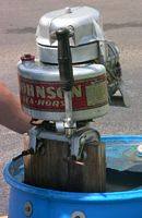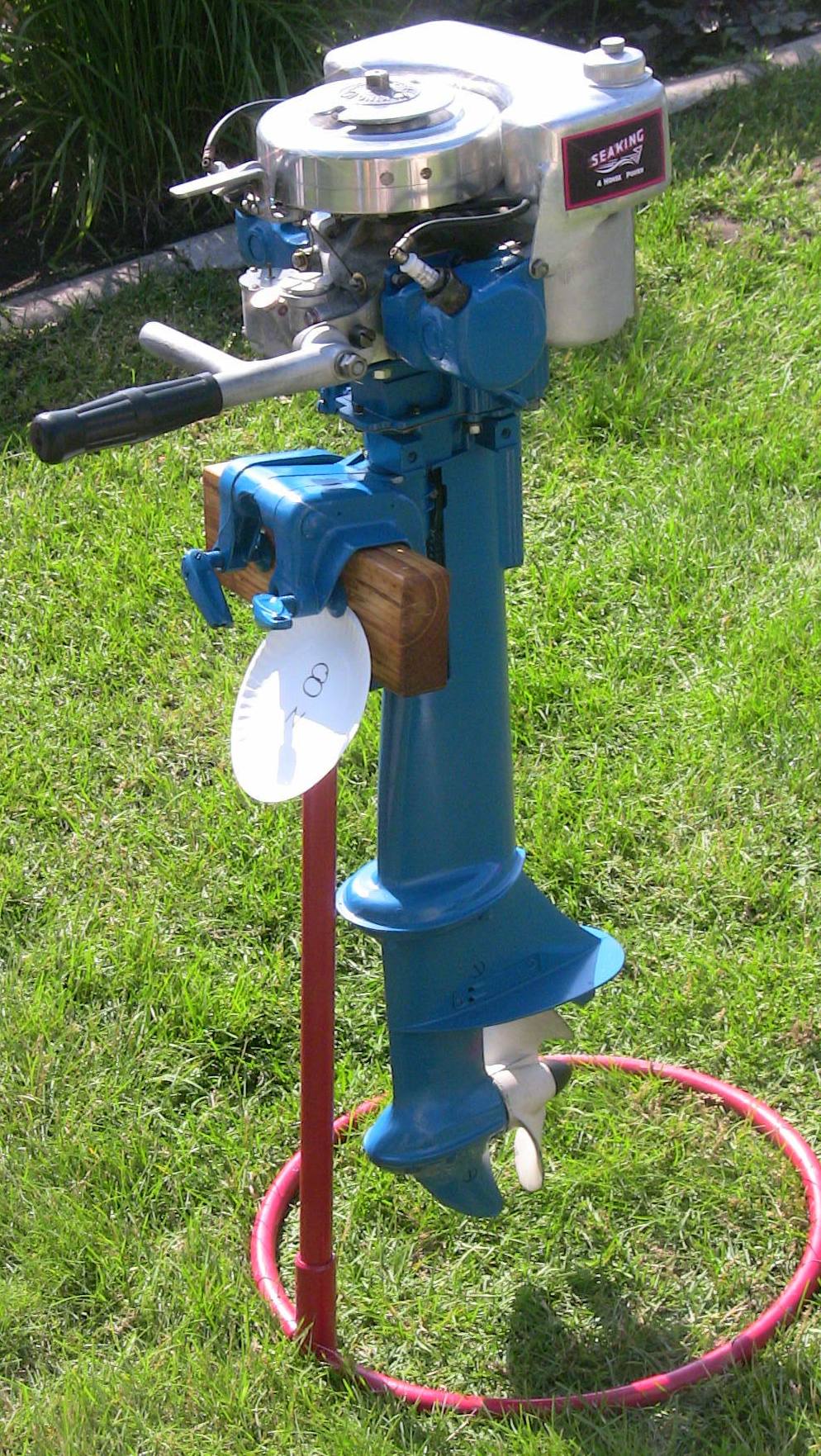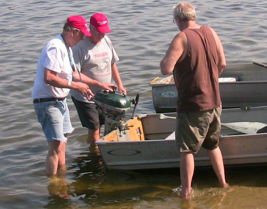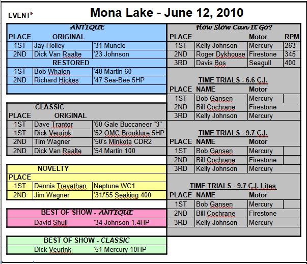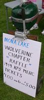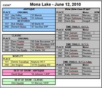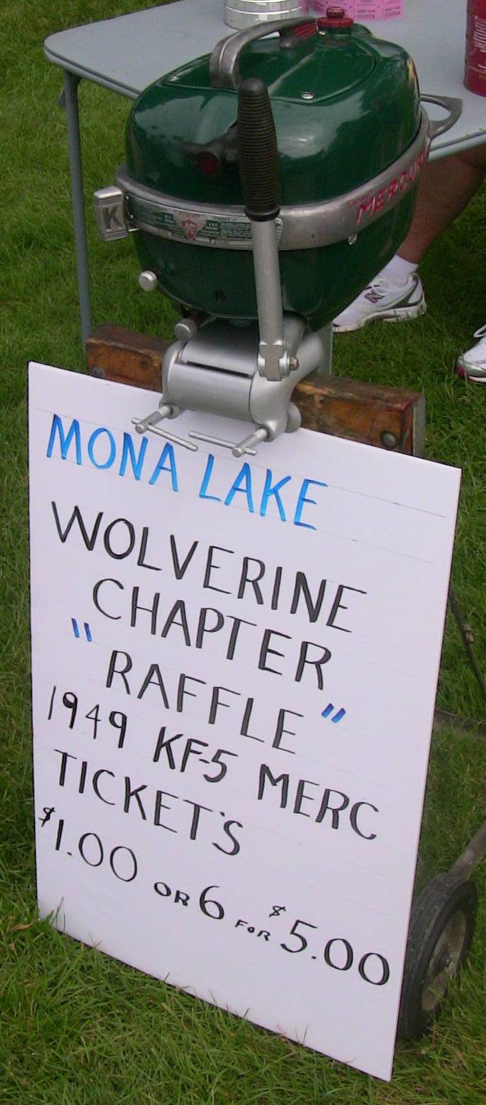 Our Mona Lake Wet meet was a big success - and featured some timed "races" (see pics) as well as the usual assortment of motors and boats on display. Of course there was a swap meet area going on with some great buys, plus there was the raffle for the 1949 KF-5 Mercury outboard (see pics)