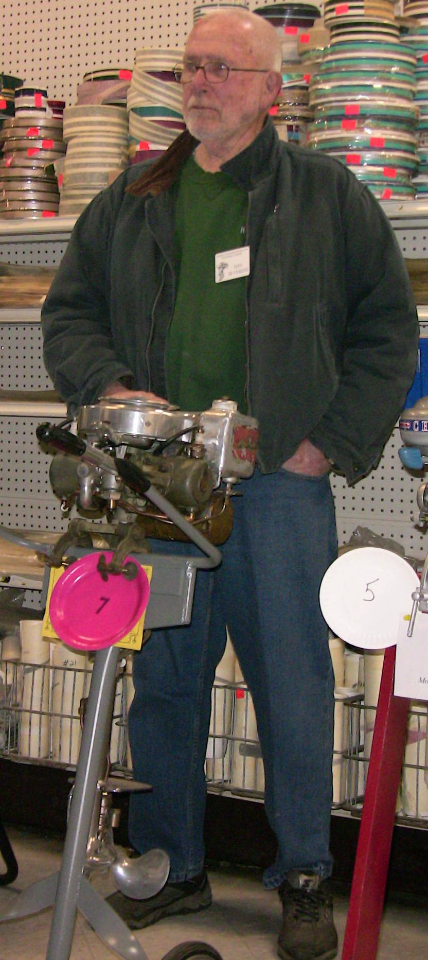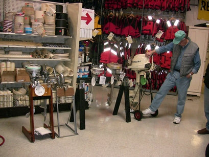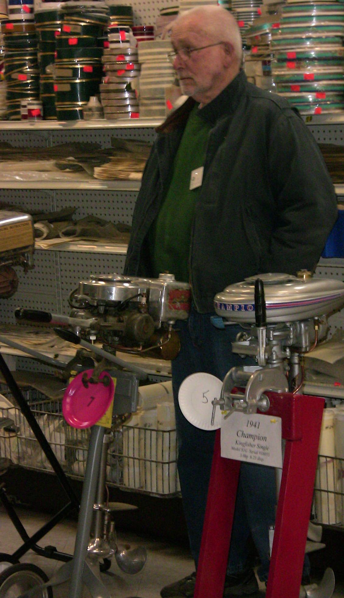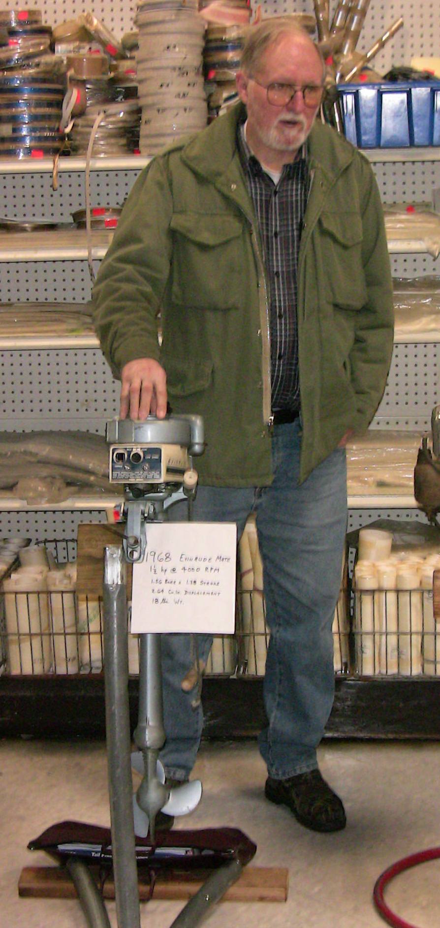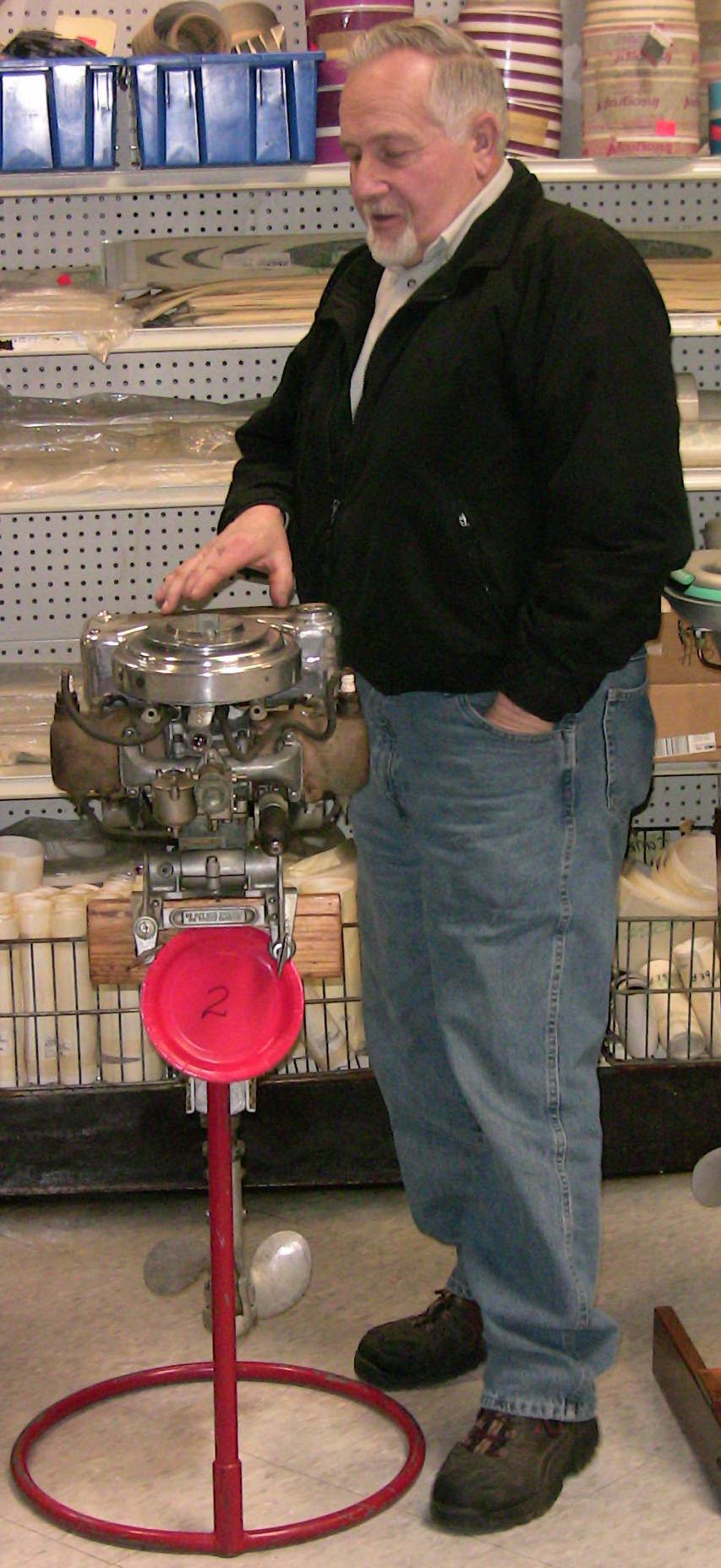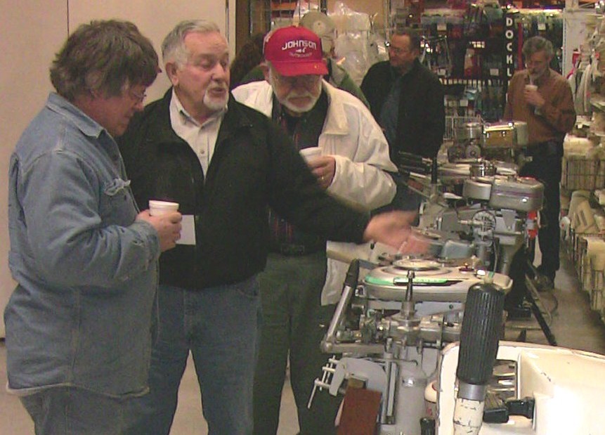 Wolf's Marine was able to supply 3 dozen chairs for our comfort and 4 large tables for our coffee and lunch set-ups and attendance and show-motor registration. That was much appreciated because it eliminated the need to provide any furniture of our own. We had 14 great motors show up for our Peoples' Choice display motor competition. We tried something new for this meet... we had the exhibitor of each of the display motors stand up and give a brief -no longer than 5 minutes - presentation about his or her motor. The information we were looking for could include year produced, brand, model, manufacturer, specifications, distinctive features, condition, history and justification for the show category selected.