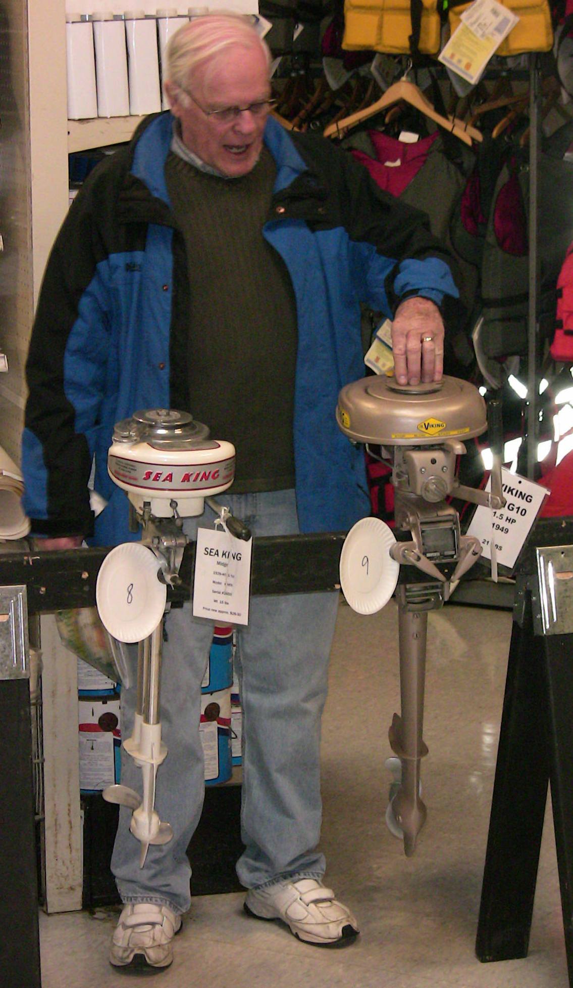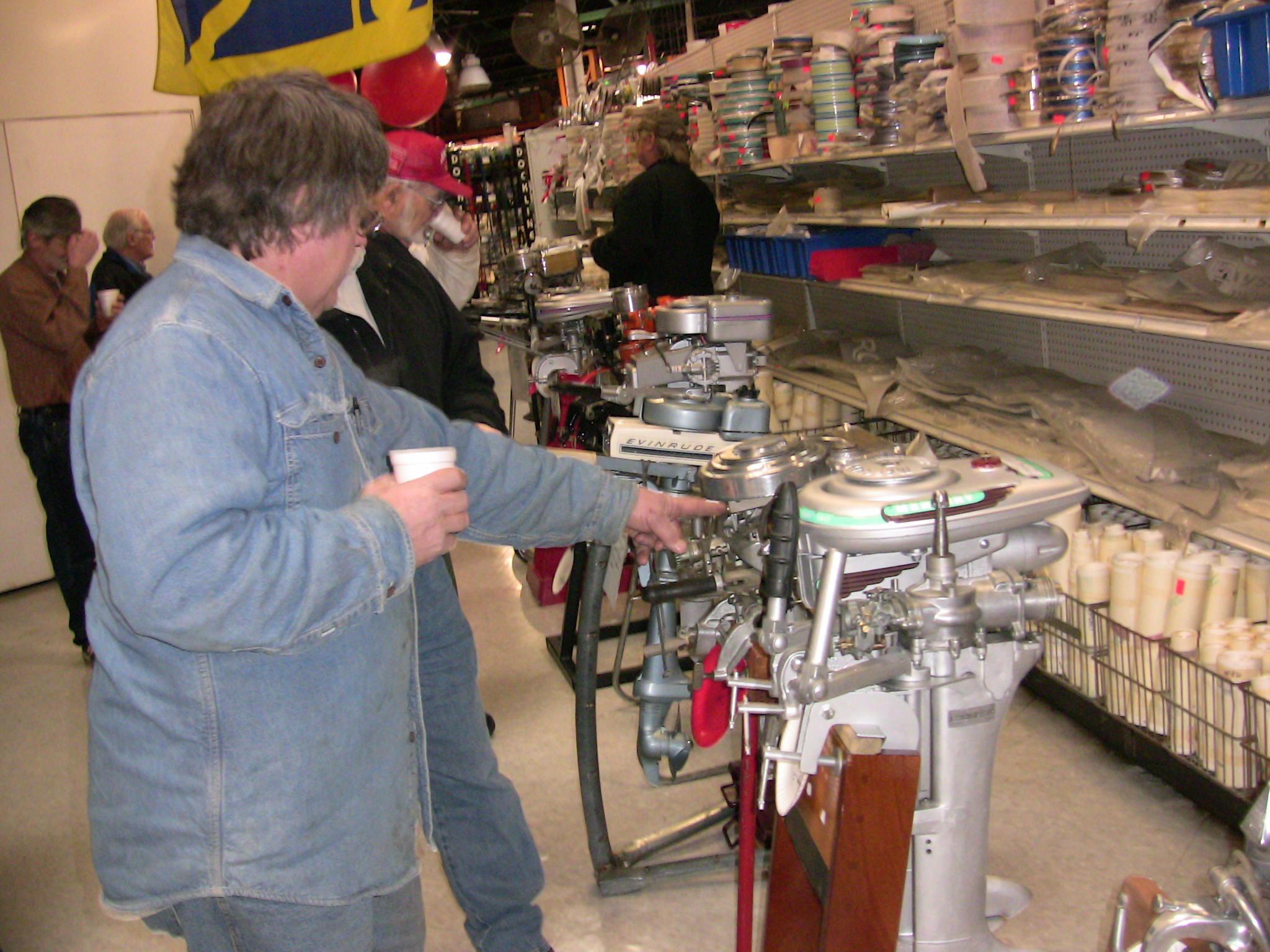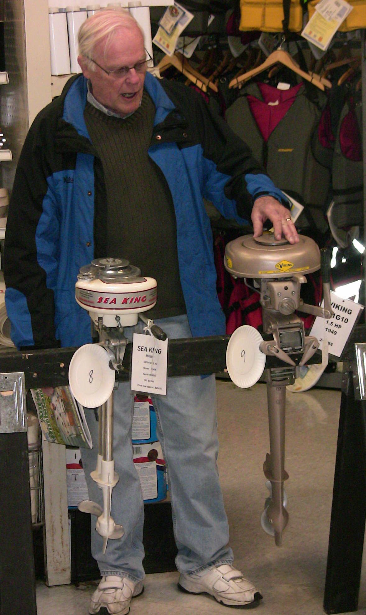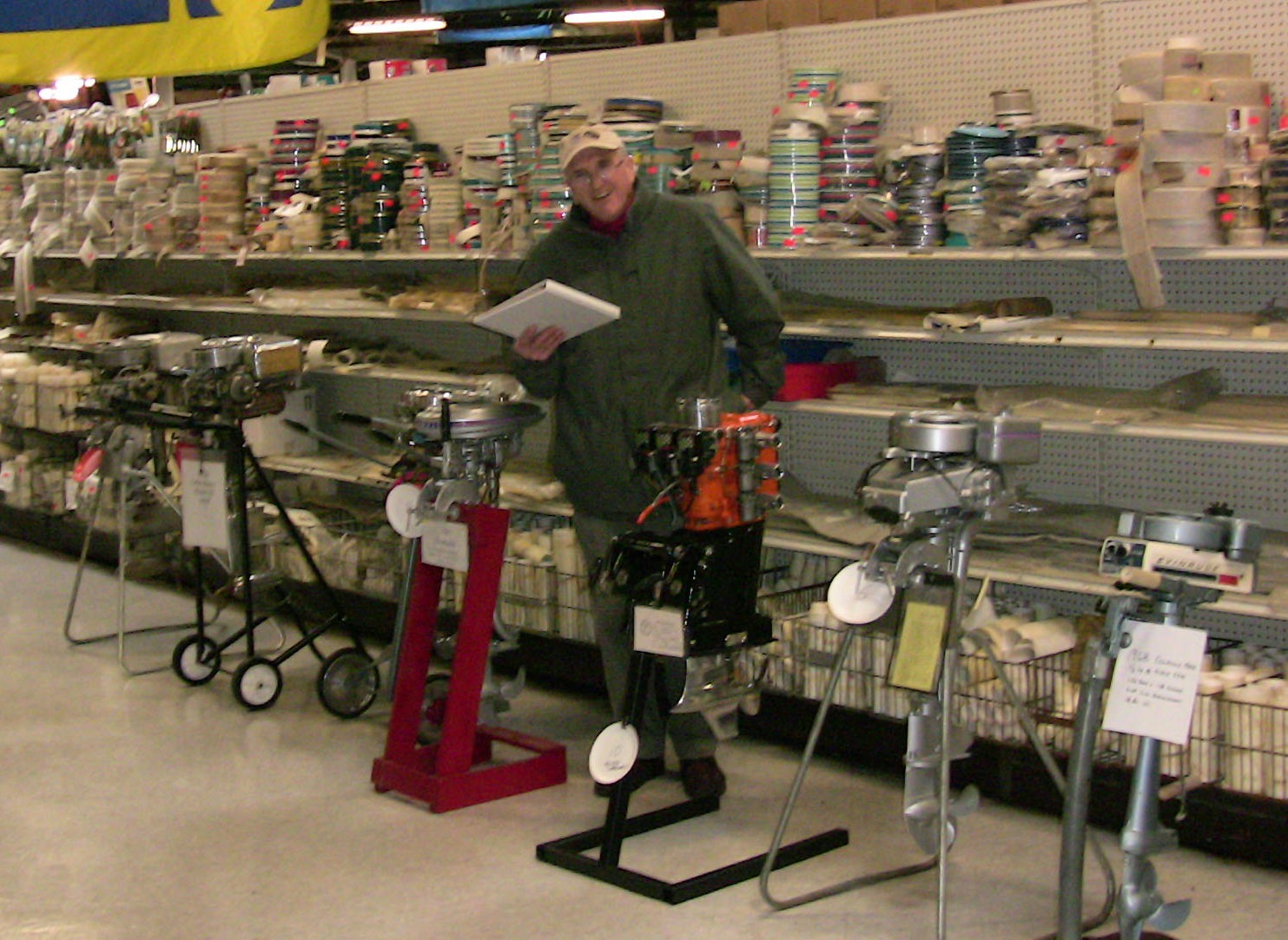 Wolf's Marine was able to supply 3 dozen chairs for our comfort and 4 large tables for our coffee and lunch set-ups and attendance and show-motor registration. That was much appreciated because it eliminated the need to provide any furniture of our own. We had 14 great motors show up for our Peoples' Choice display motor competition. We tried something new for this meet... we had the exhibitor of each of the display motors stand up and give a brief -no longer than 5 minutes - presentation about his or her motor. The information we were looking for could include year produced, brand, model, manufacturer, specifications, distinctive features, condition, history and justification for the show category selected.