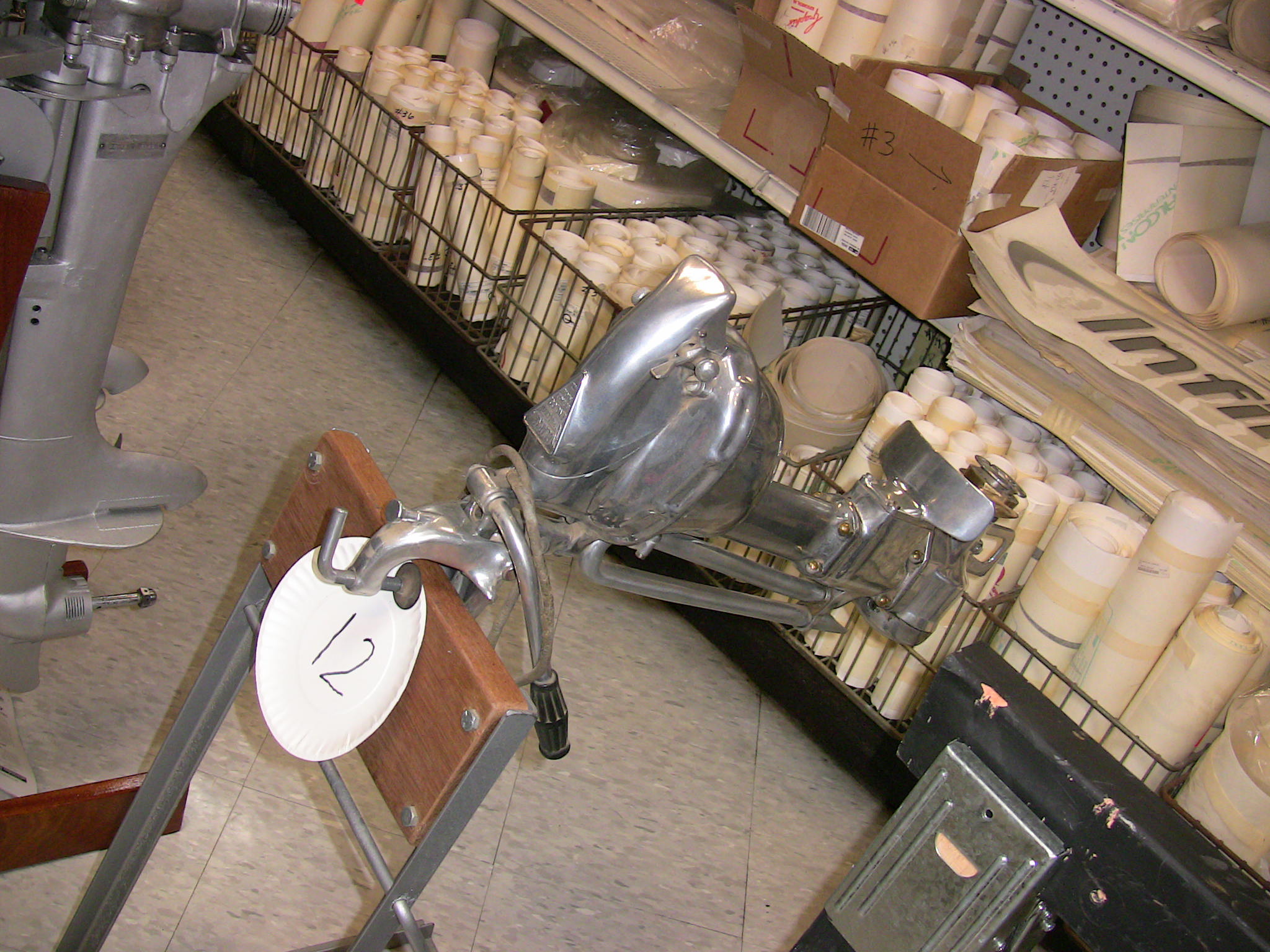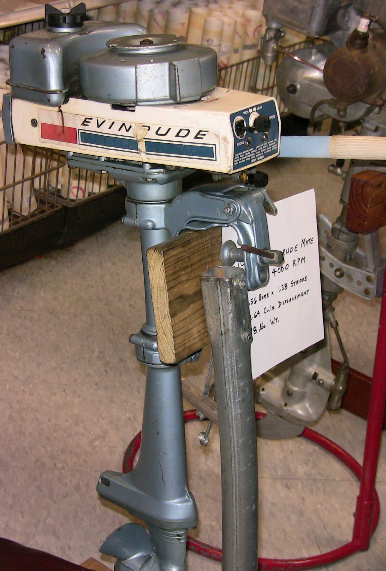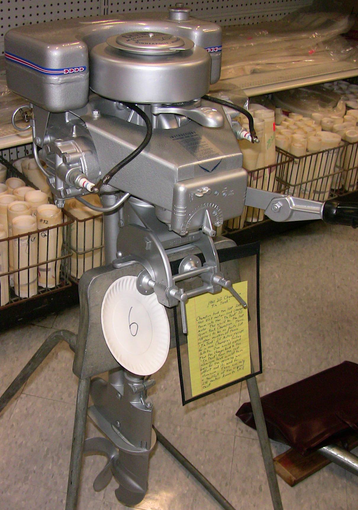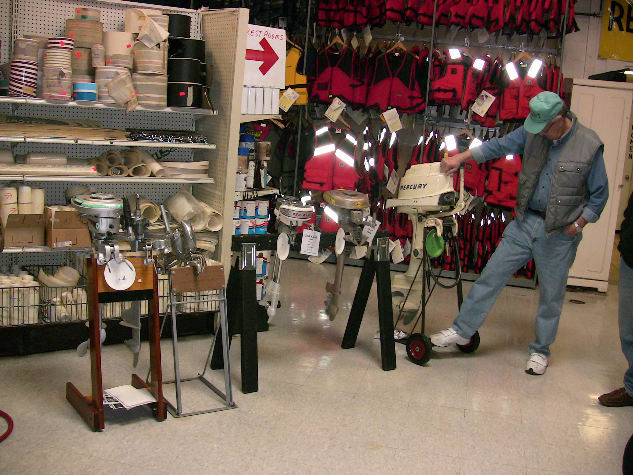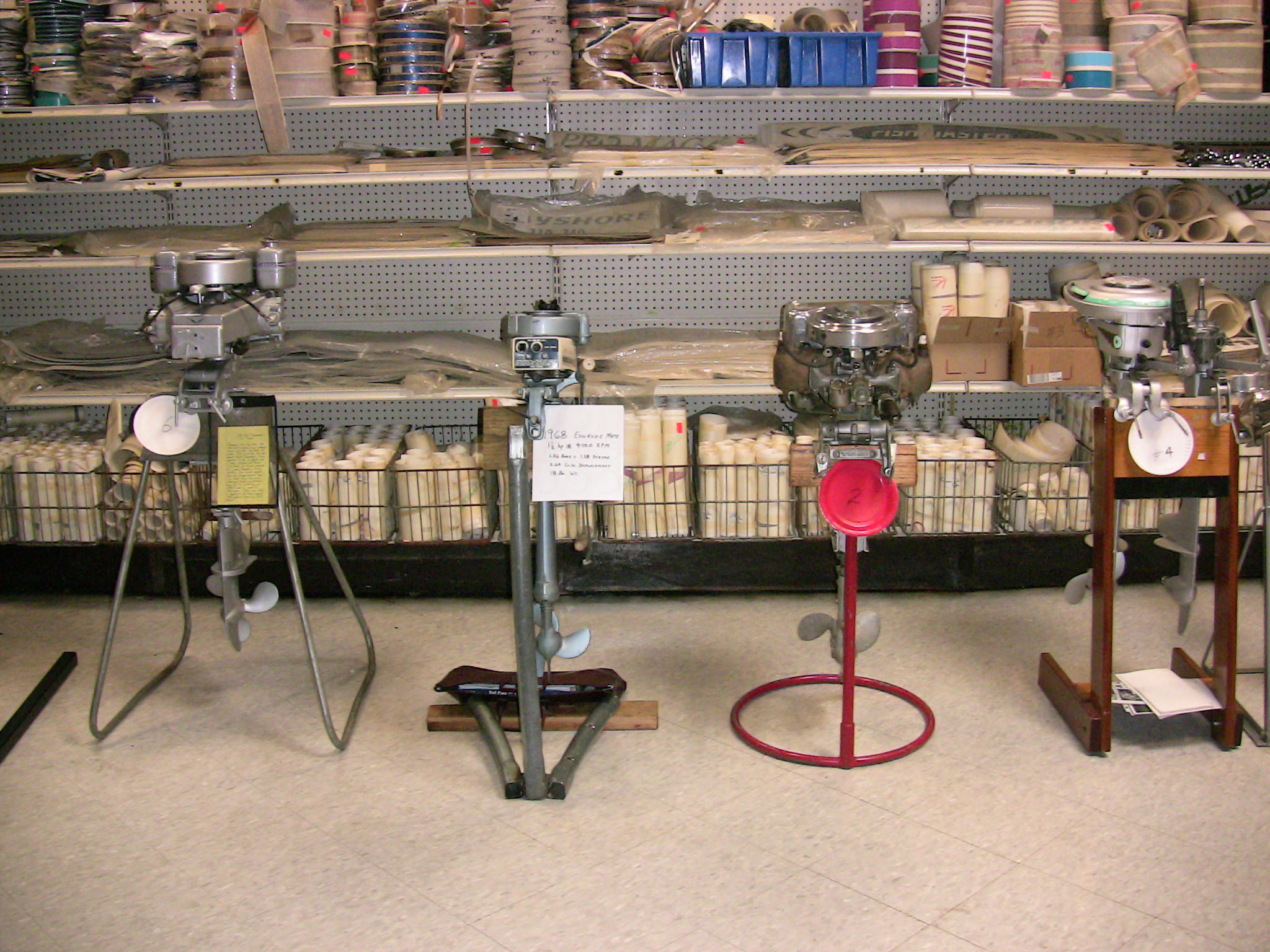 Wolf's Marine was able to supply 3 dozen chairs for our comfort and 4 large tables for our coffee and lunch set-ups and attendance and show-motor registration. That was much appreciated because it eliminated the need to provide any furniture of our own. We had 14 great motors show up for our Peoples' Choice display motor competition. We tried something new for this meet... we had the exhibitor of each of the display motors stand up and give a brief -no longer than 5 minutes - presentation about his or her motor. The information we were looking for could include year produced, brand, model, manufacturer, specifications, distinctive features, condition, history and justification for the show category selected.
