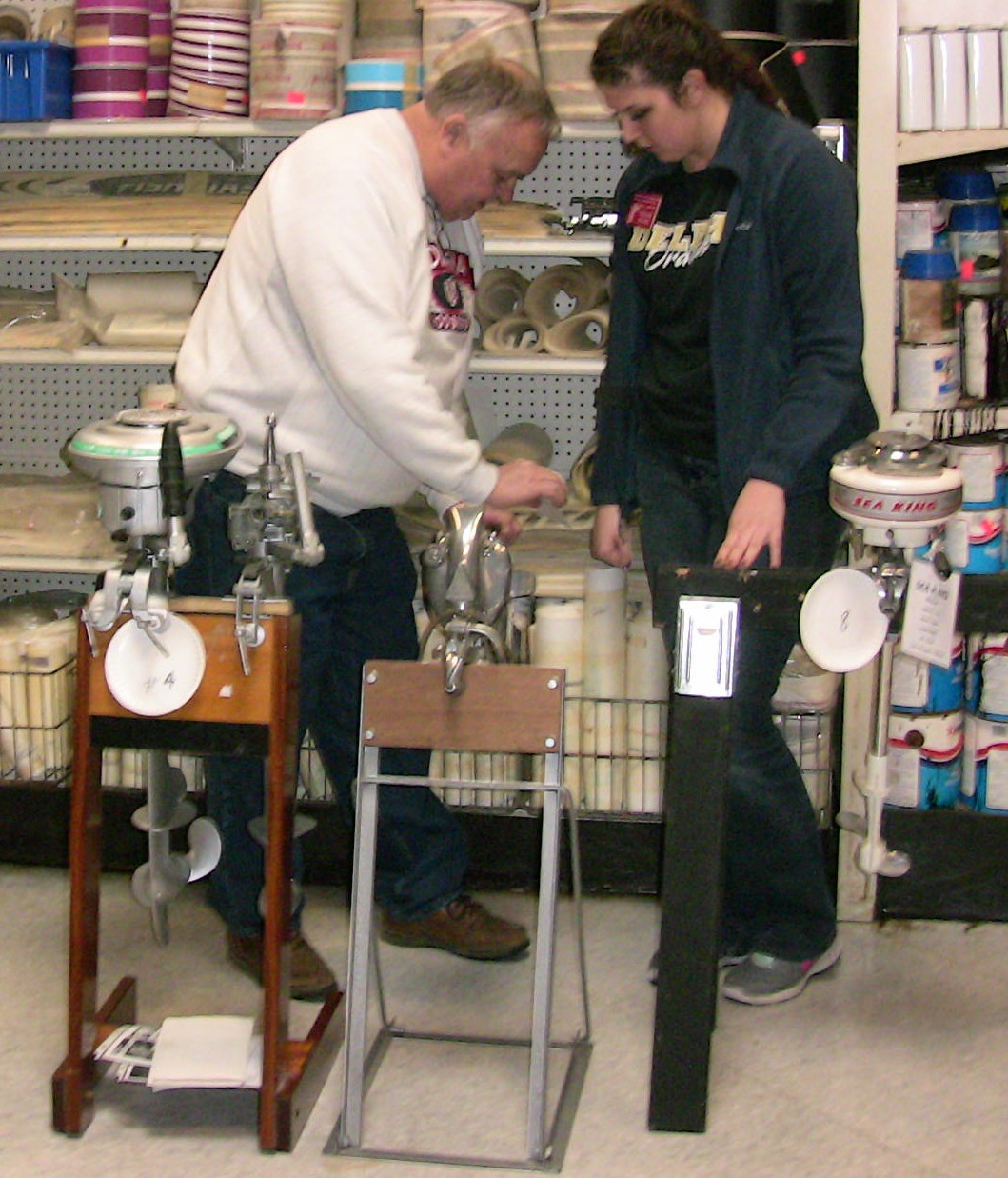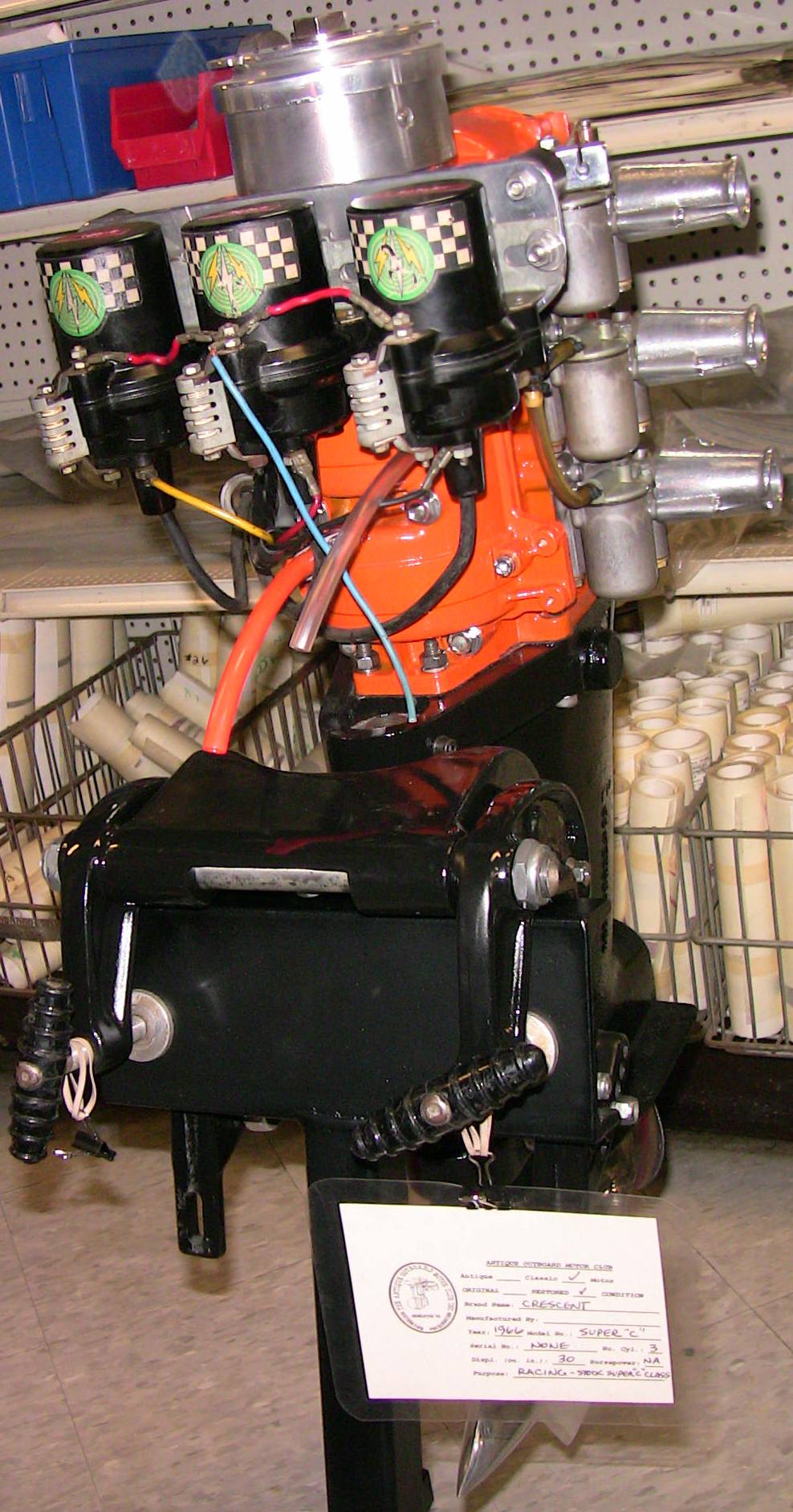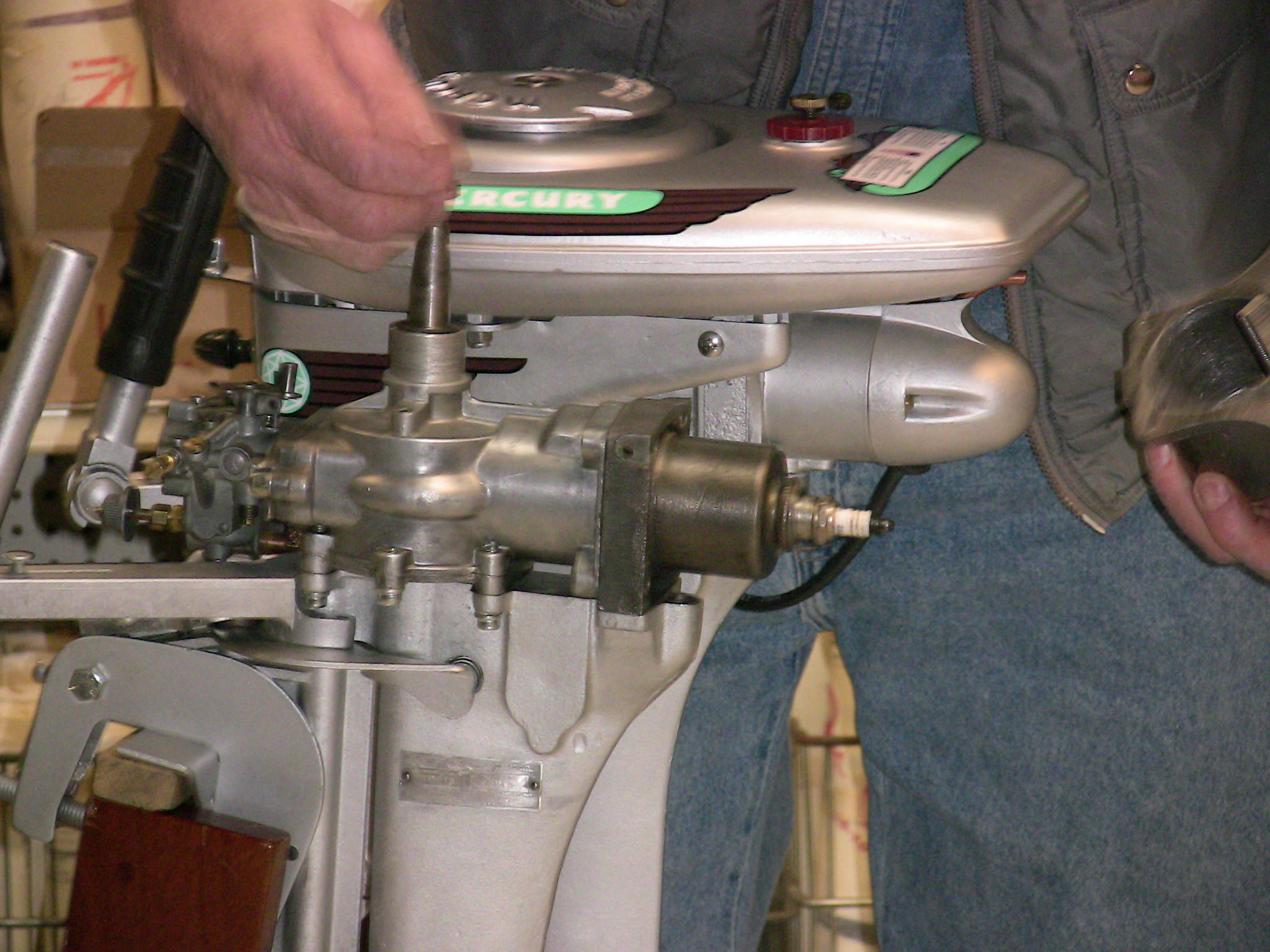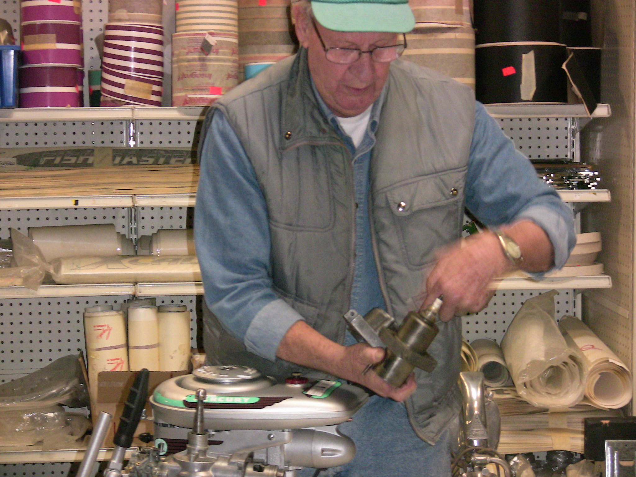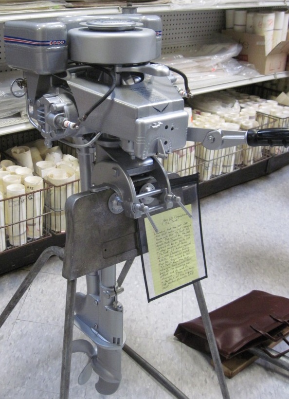 Wolf's Marine was able to supply 3 dozen chairs for our comfort and 4 large tables for our coffee and lunch set-ups and attendance and show-motor registration. That was much appreciated because it eliminated the need to provide any furniture of our own. We had 14 great motors show up for our Peoples' Choice display motor competition. We tried something new for this meet... we had the exhibitor of each of the display motors stand up and give a brief -no longer than 5 minutes - presentation about his or her motor. The information we were looking for could include year produced, brand, model, manufacturer, specifications, distinctive features, condition, history and justification for the show category selected.
