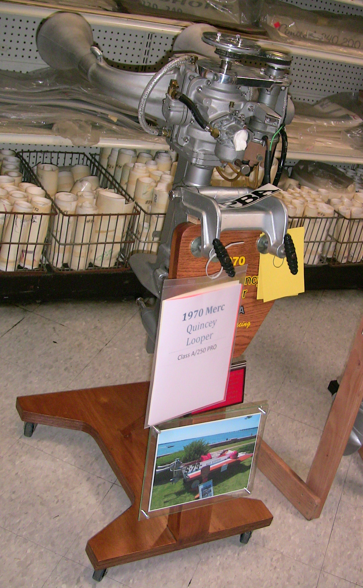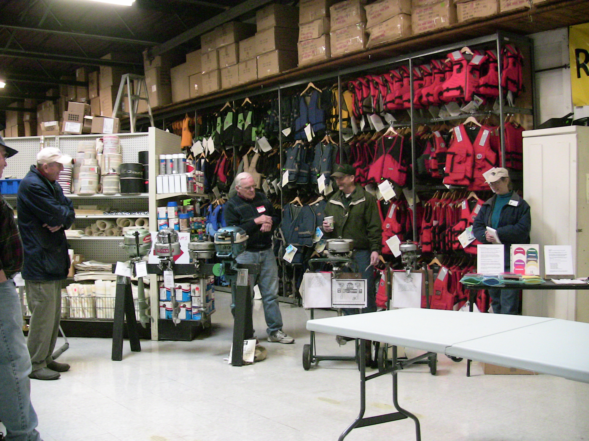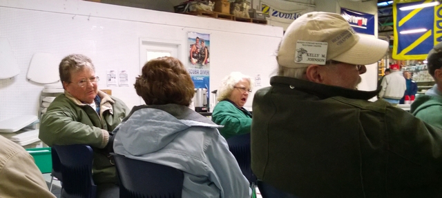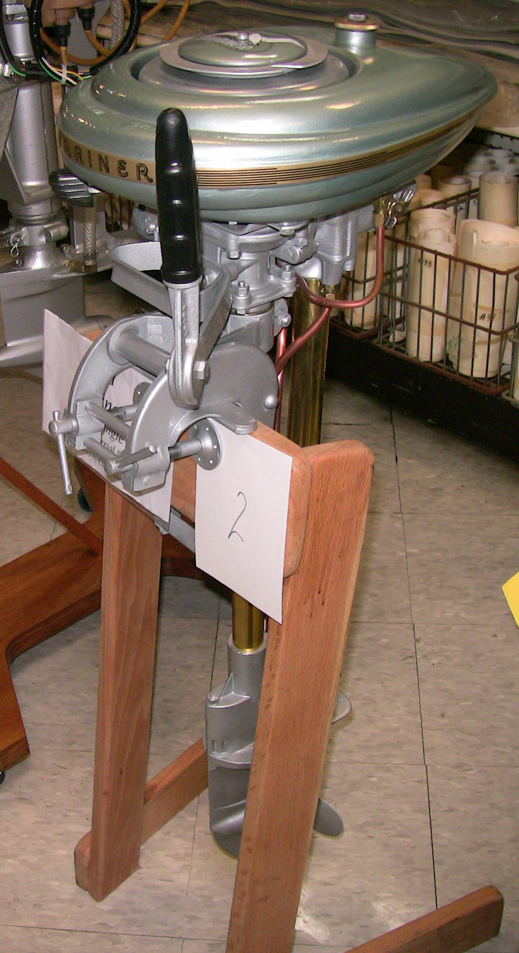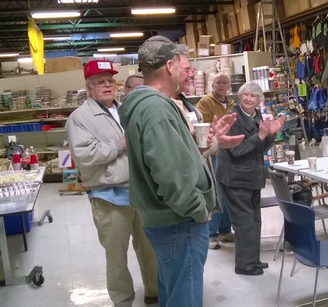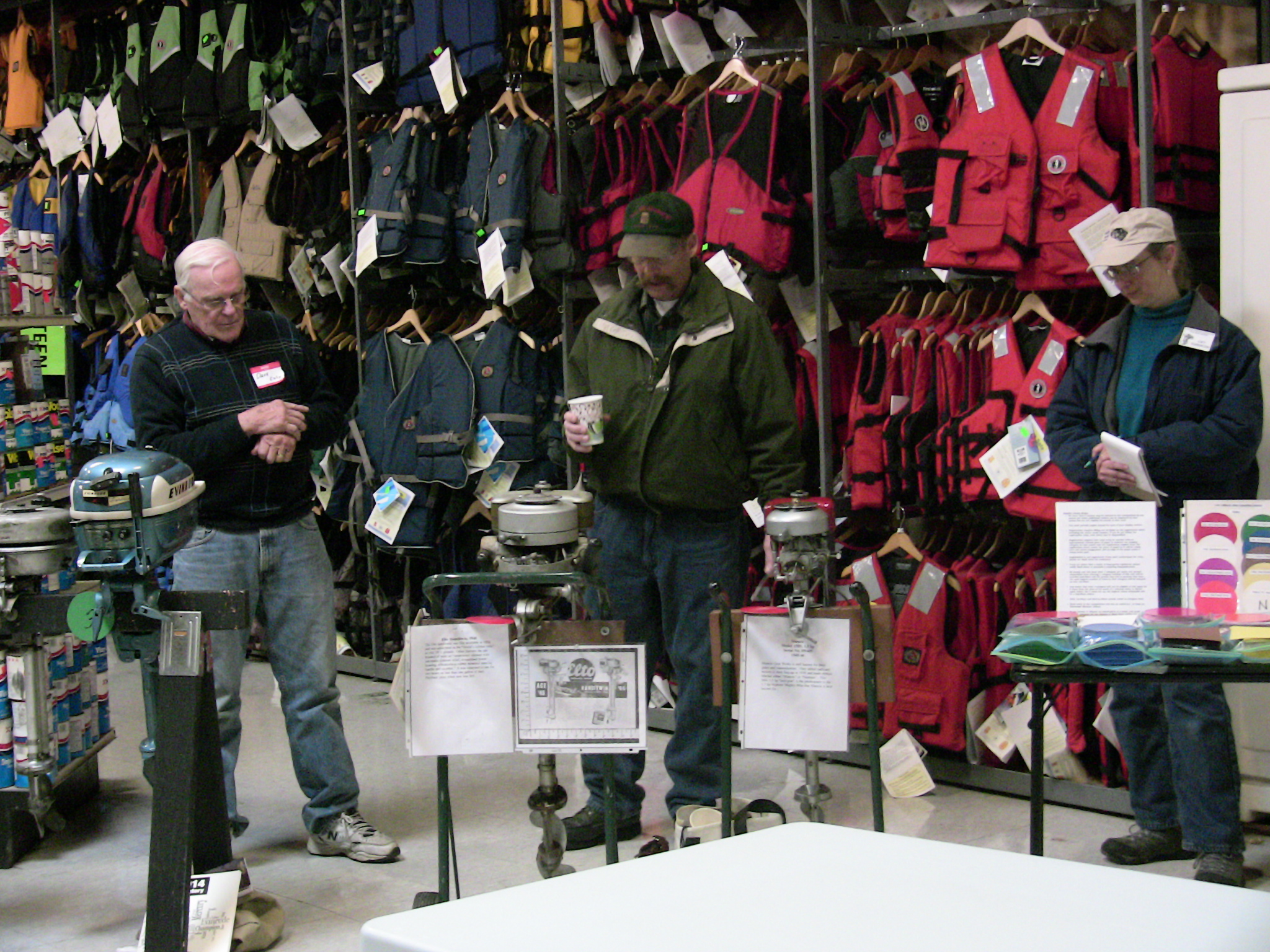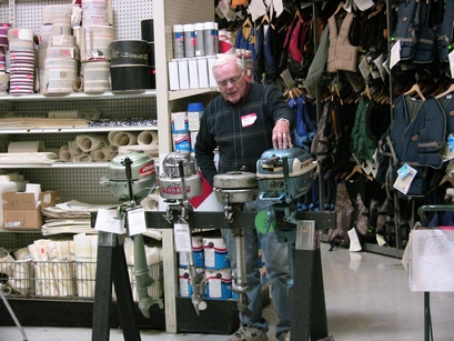Those present enjoyed coffee, hot tea and hot cocoa along with sweet rolls. For lunch we enjoyed chicken, potato salad, coleslaw and rolls for the main course and chop suey and oatmeal cakes with beverages. Rog Dykehouse gave an excellent show & tell demonstration with actual hardware (partial powerhead assemblies) to explain the difference between cross-flow scavenged and loop-scavenged 2-cycle engines.
