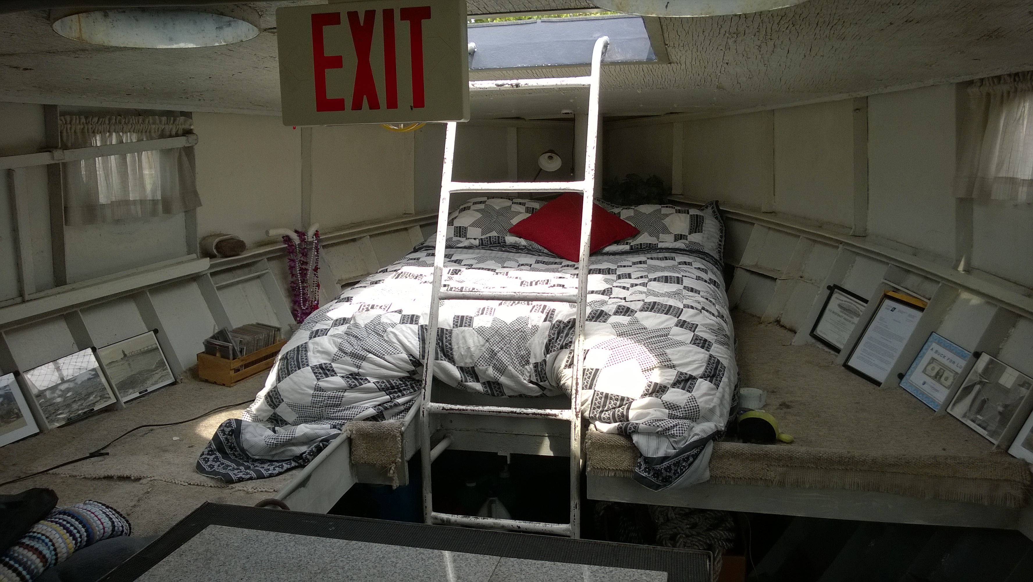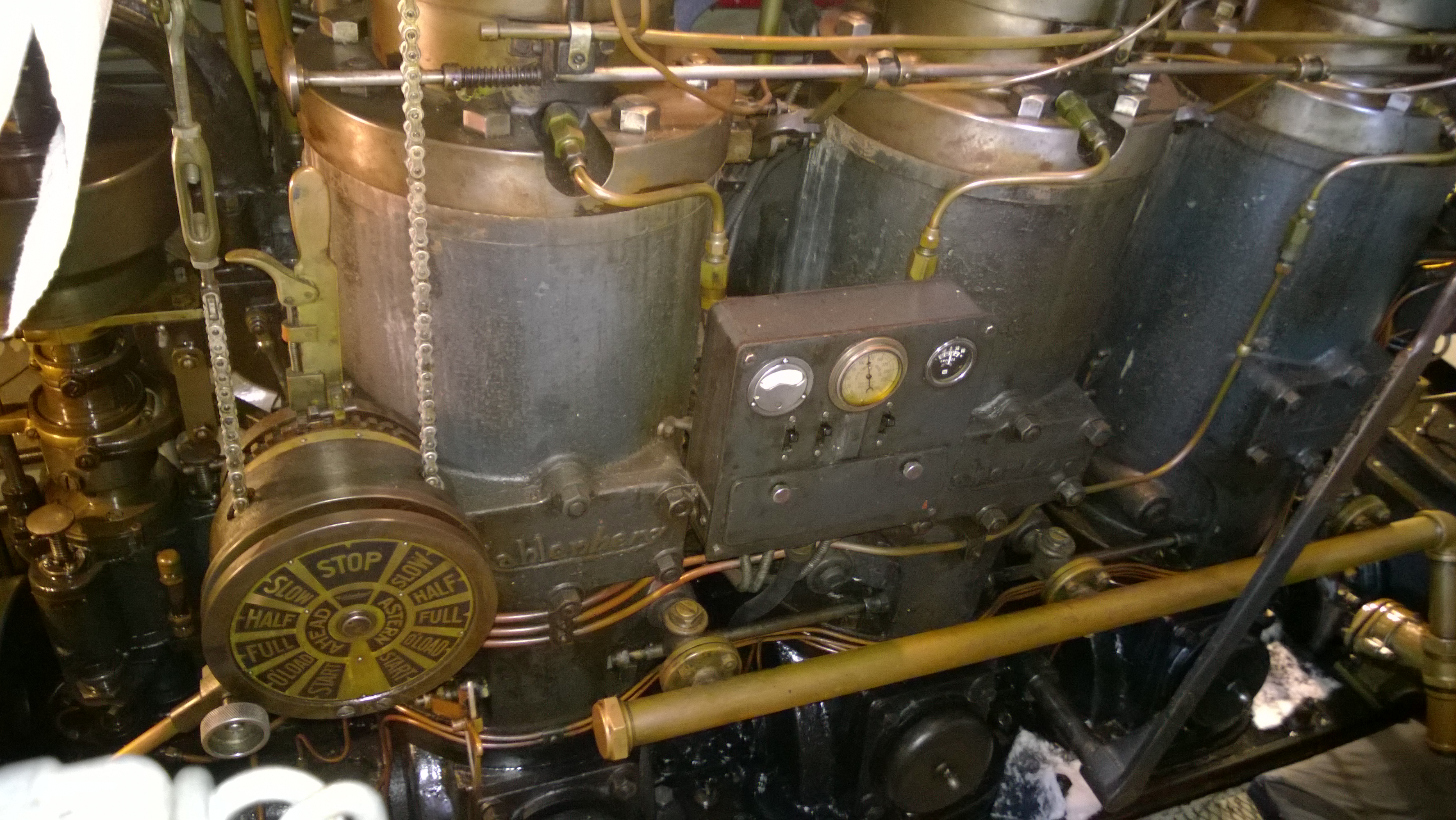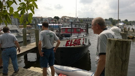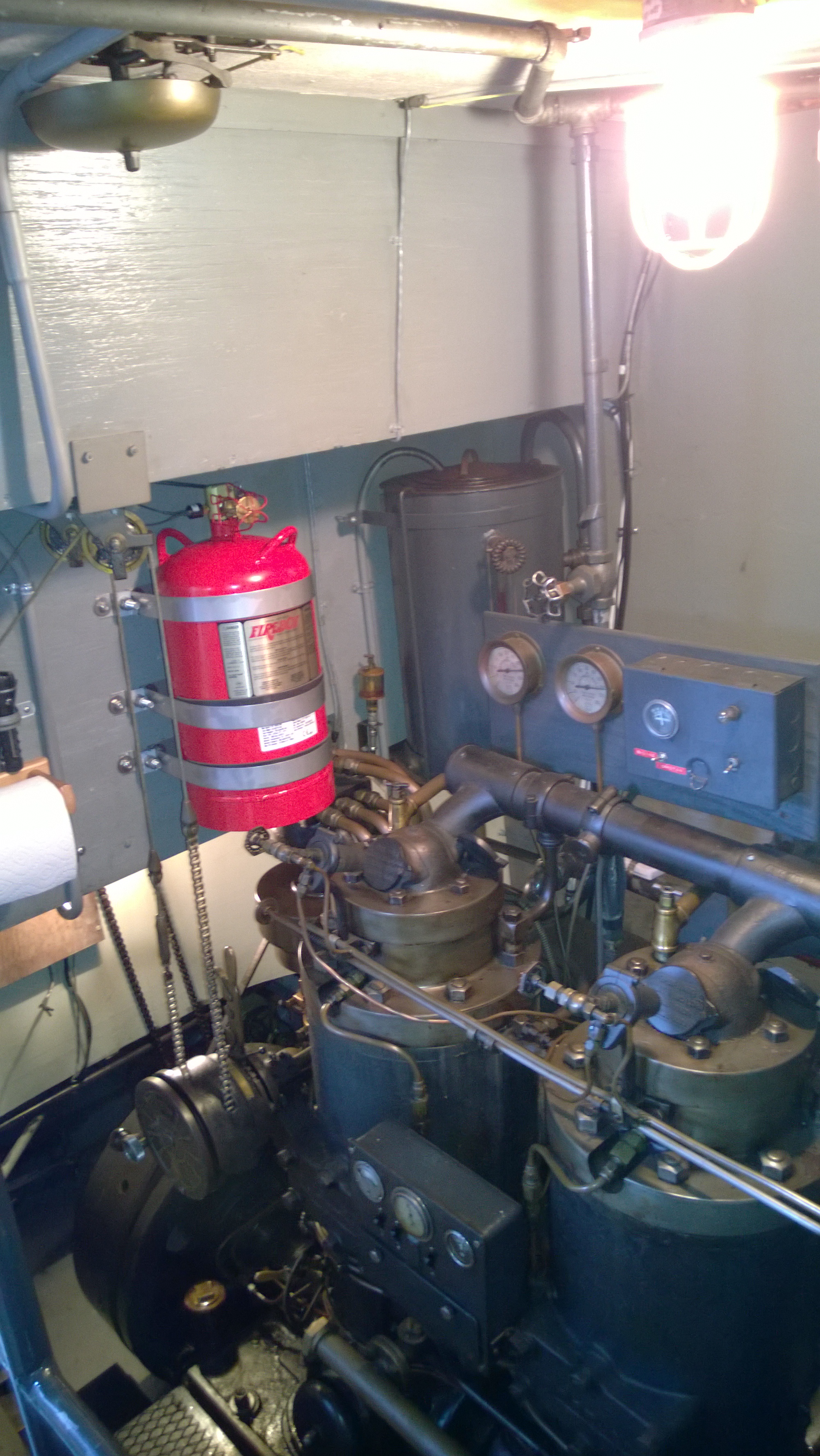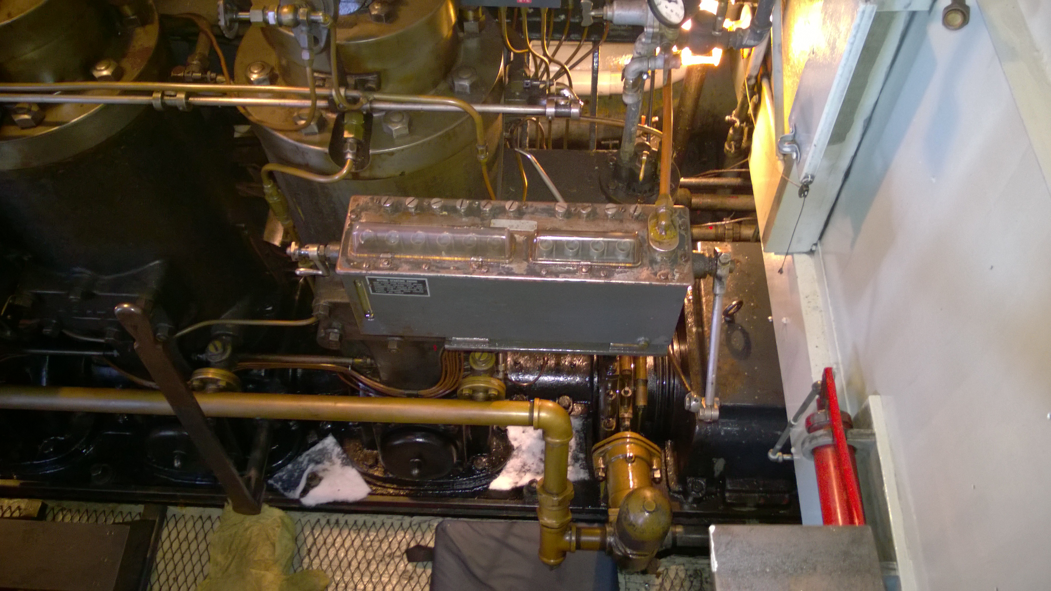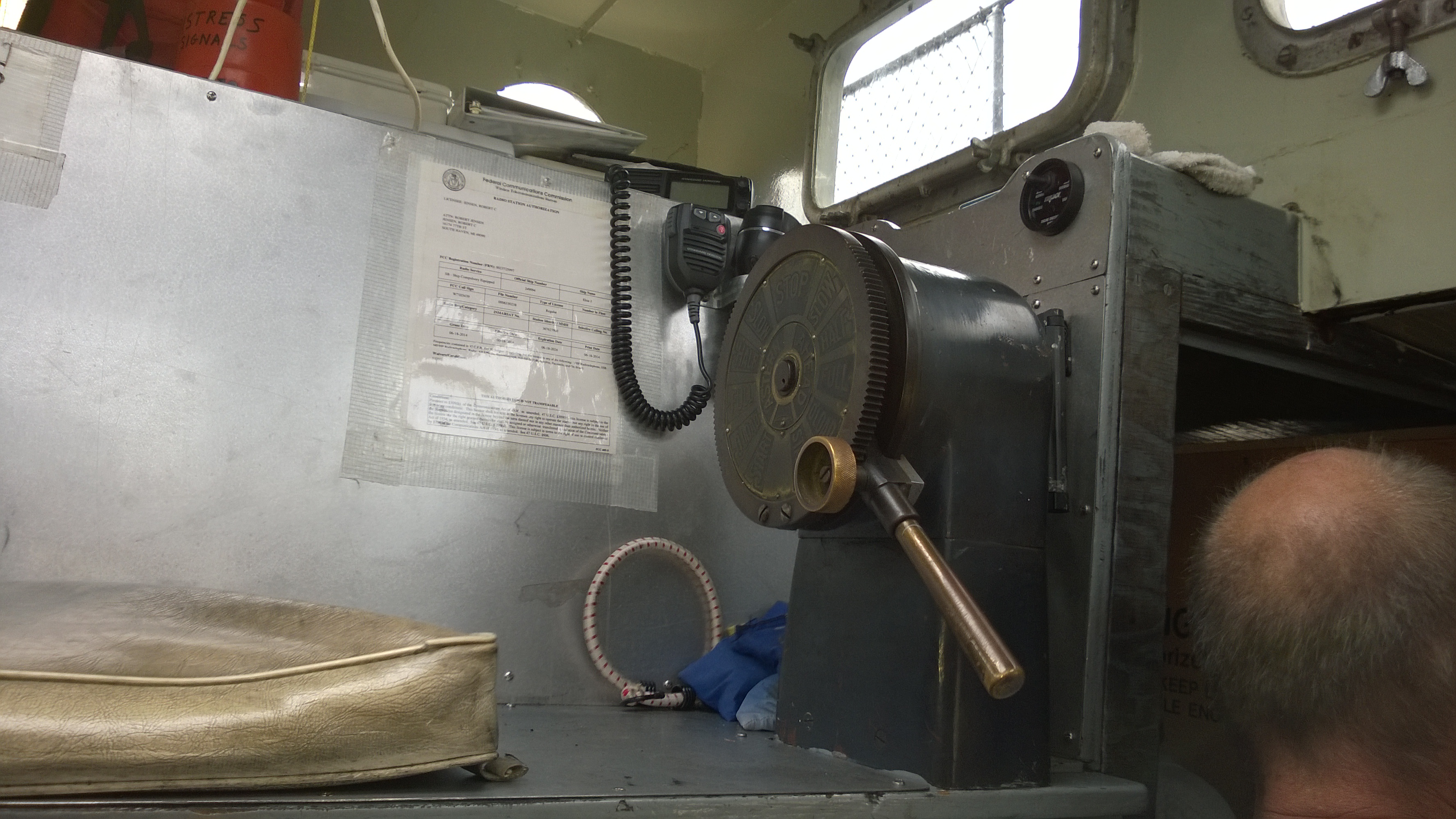 Since so many of our attendees are "motor-heads", the Museum offered to let us gather around the Jensen "Fish Tug", a boat they now use for harbor tours, and let us witness the start-up of its in-line, three cylinder Kannenburg diesel engine. This old critter (from the 1940's?) starts with glow plugs and by spinning the motor over with timed air injection into the cylinders. Some of our members got to stand close to the inboard motor and some of us, because of limited space around the engine, were relegated to standing on the dock adjacent to the boat (I was in the latter group). After going through the check list to make sure the proper starting procedure was followed, the engineer (a member of the Jensen family) finally started the air injection and it wasn't long until the engine was cranking fast enough and the exhaust pipe belched a big black cloud of diesel exhaust signifying the started up was successful. It was truly fun to witness this event... a long as you were NOT standing downwind of the exhaust pipe. Two of our attendees opted to take the ensuing cruise in the boat.