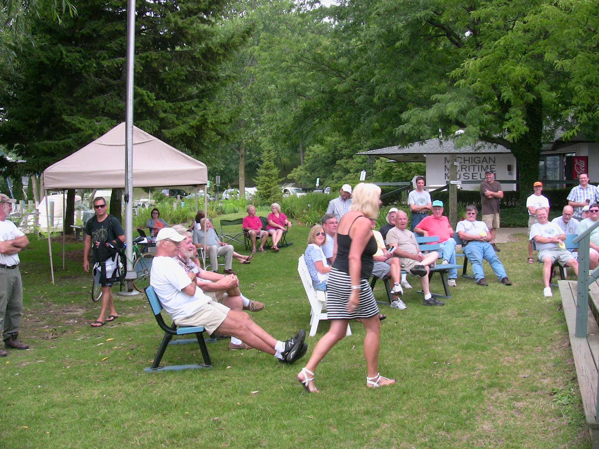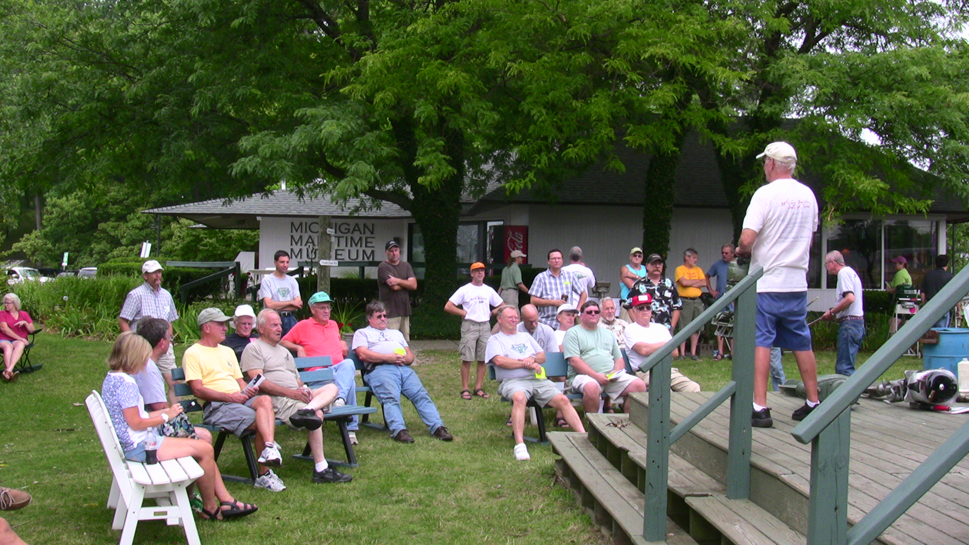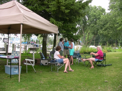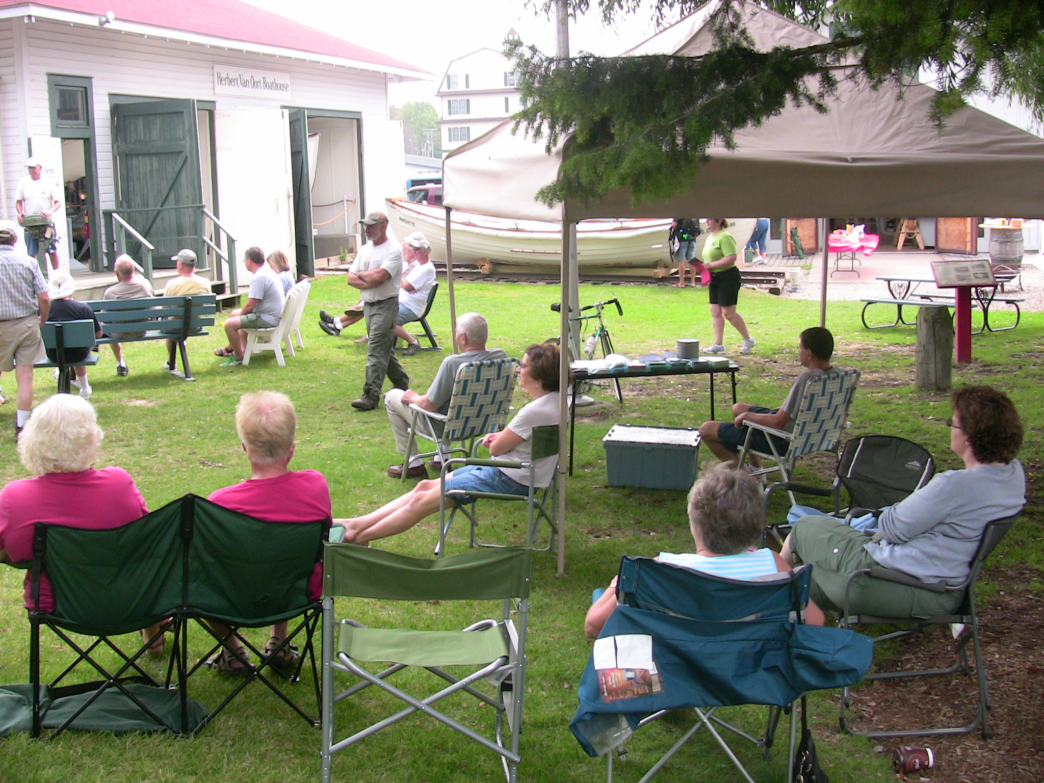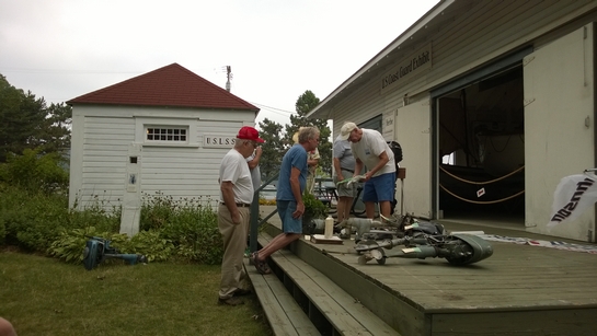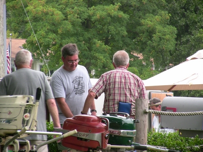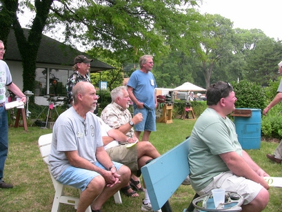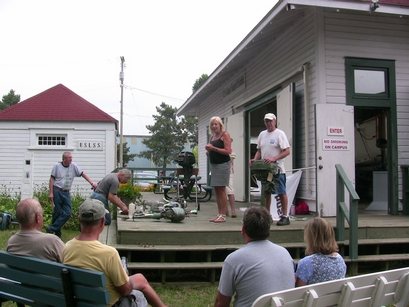 One of the traditional events at this meet is an auction of items donated by Chapter members and by people from the greater South Haven area with the proceeds going to the Museum to help offset operating costs (one of their latest fund raising projects is to help fund a new building for their small watercraft collection). While the collective donated items did not look like they would bring in all that much, the results were quite surprising. The bidding was quite competitive and brought in a total of $420. Our auctioneer, Frank James, obviously did his job well but the "generous" crowd really helped. Thanks to all that participated... the proceeds really pleased the Museum personnel.