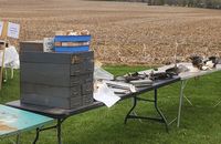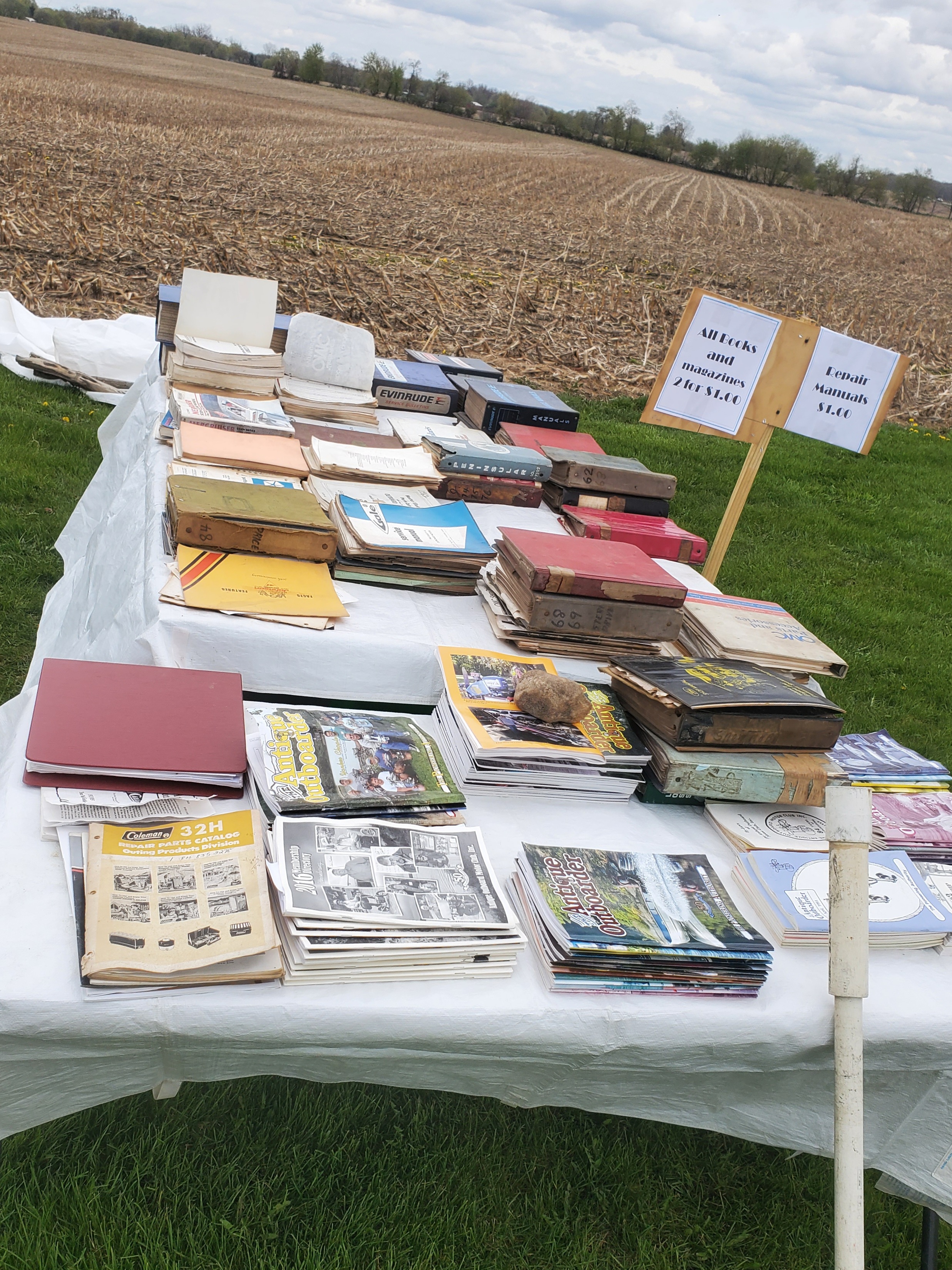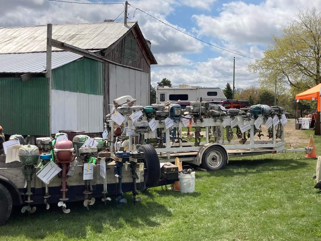There were many, many motors to choose from, documentation, parts, and boat related items as well. Bill Shattuck bought the motor trailer and took many motors home to sell at future meets with the proceeds going to Keith's family.