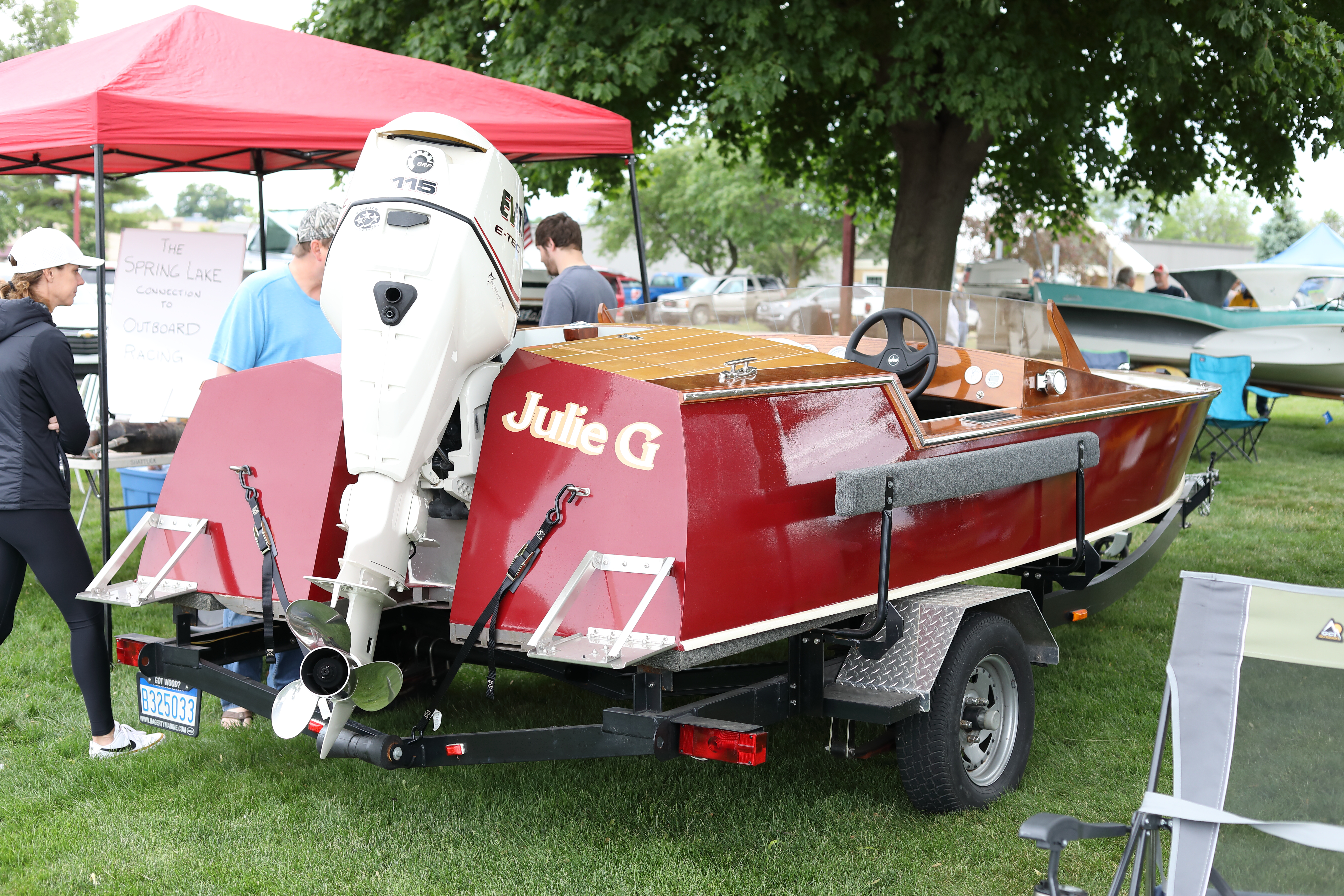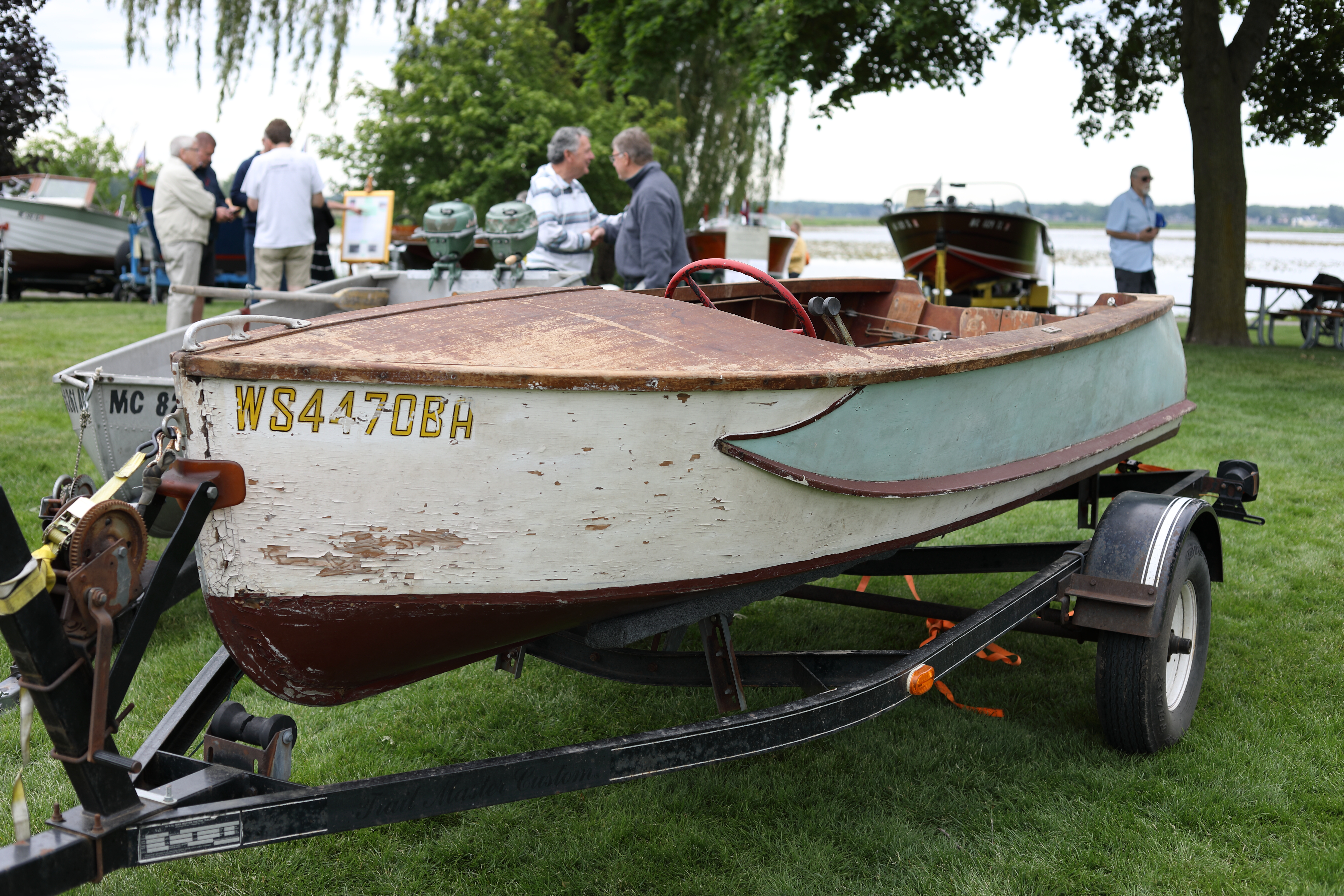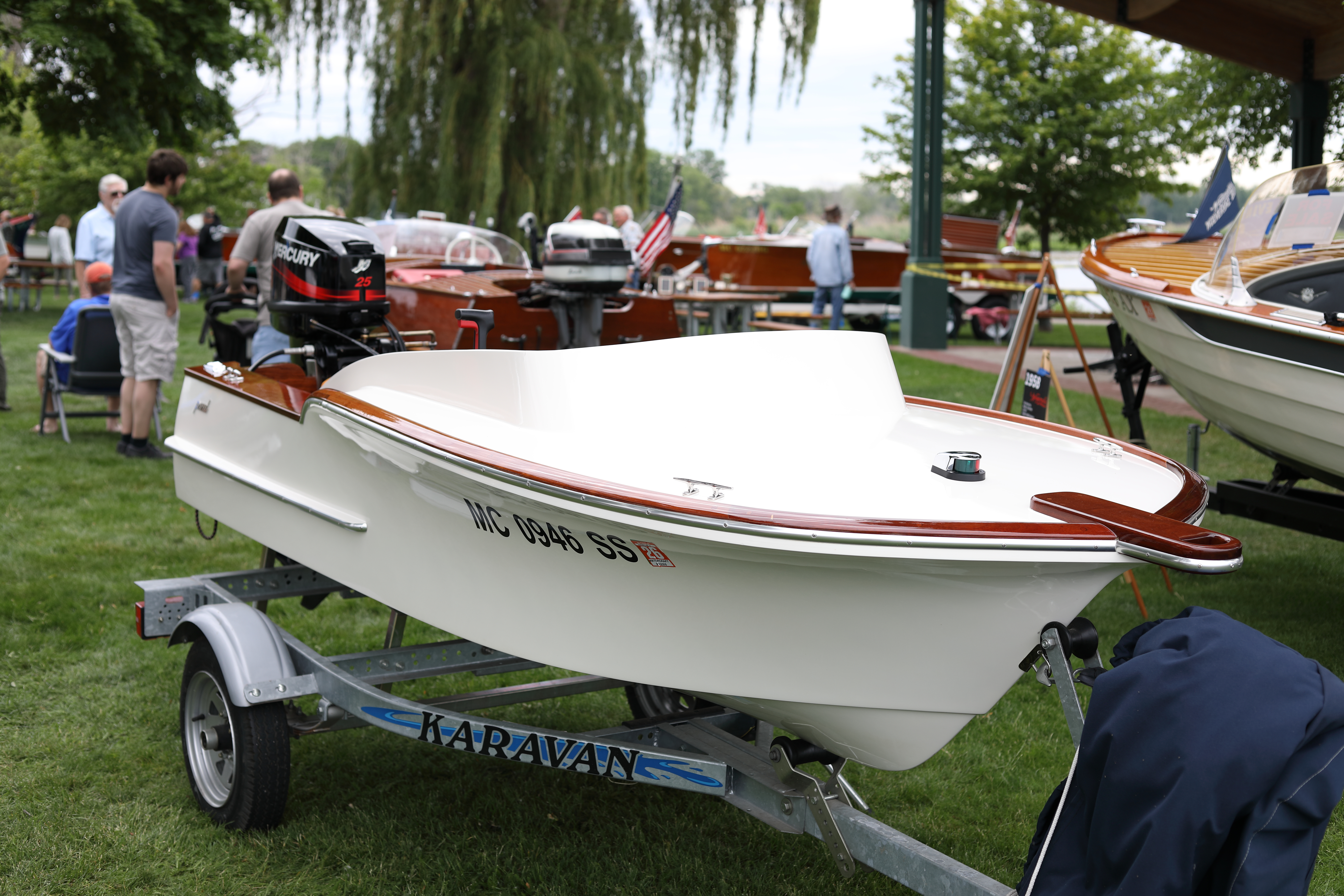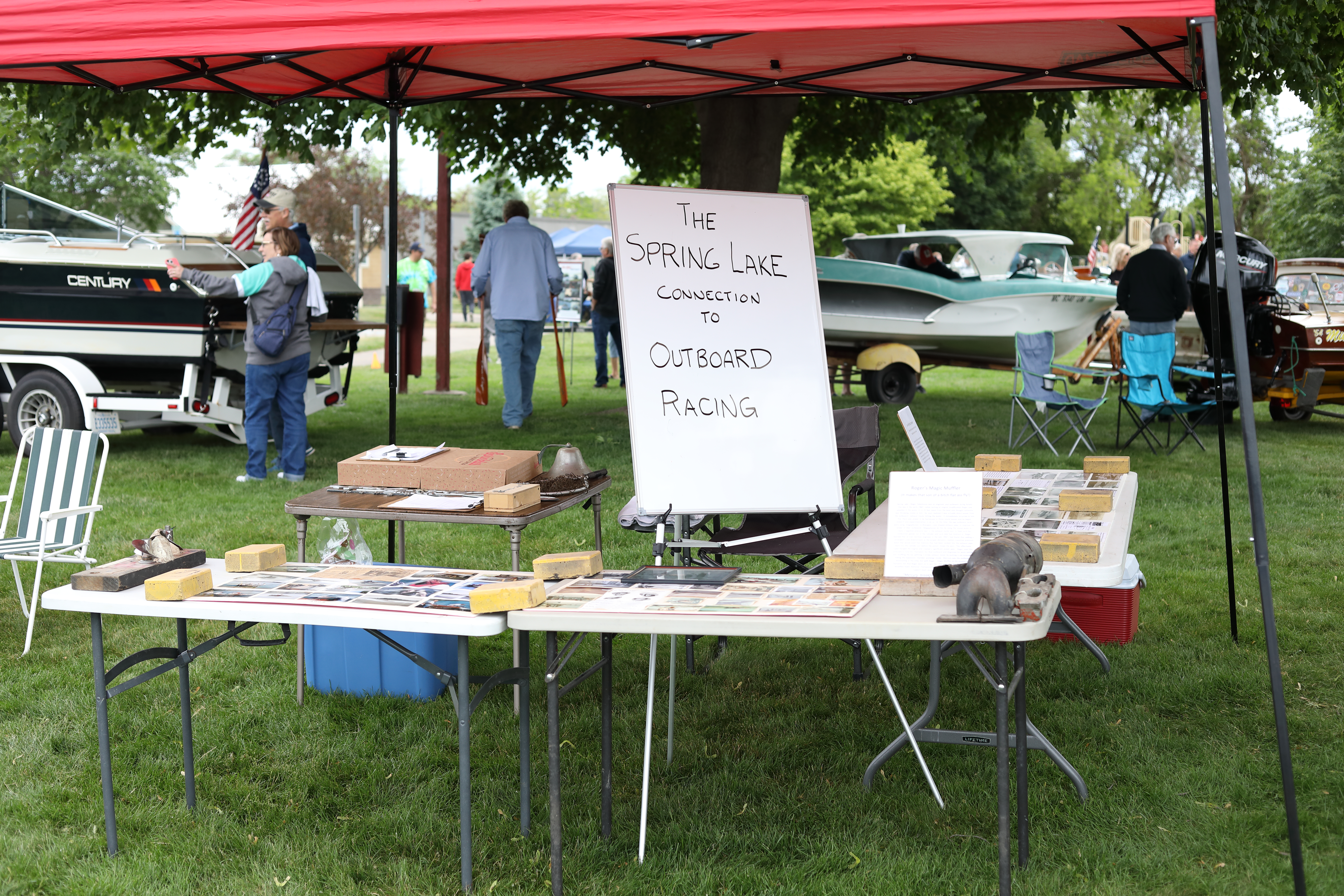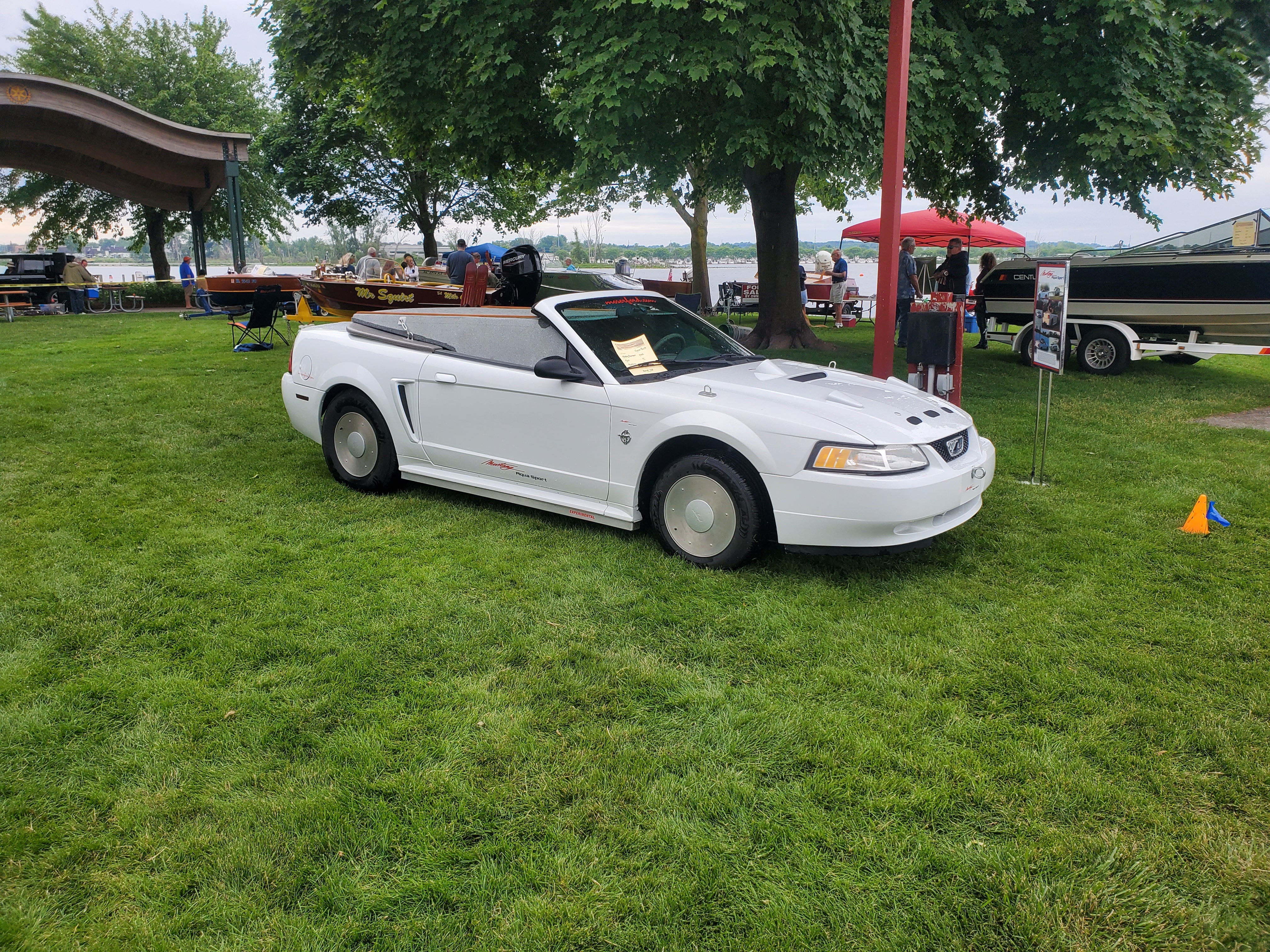 It was a beautiful day in Spring Lake for this meet. Both the boat show and our club featured many fine displays of boats and motors, including a custom built Mustang Boat-Car!