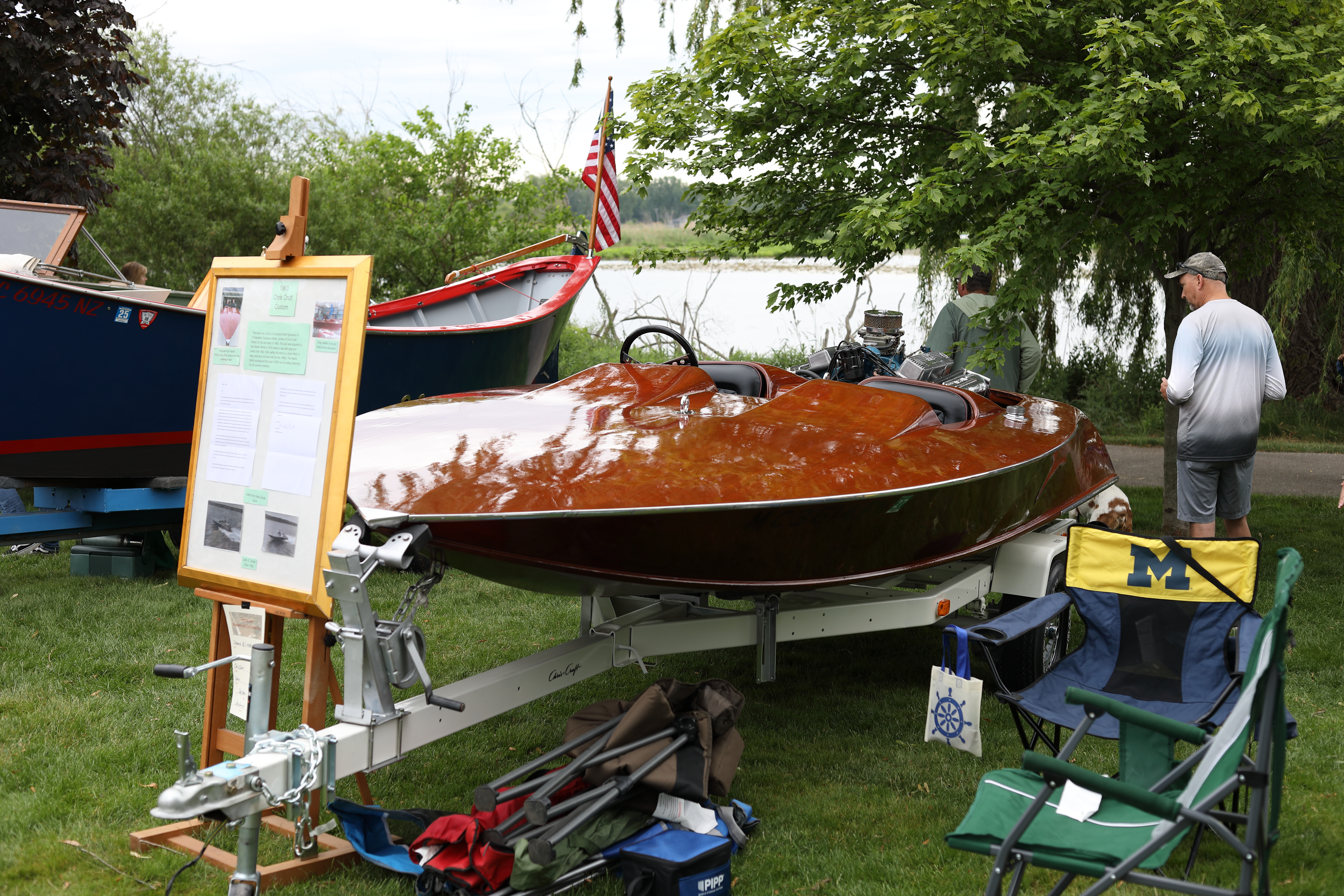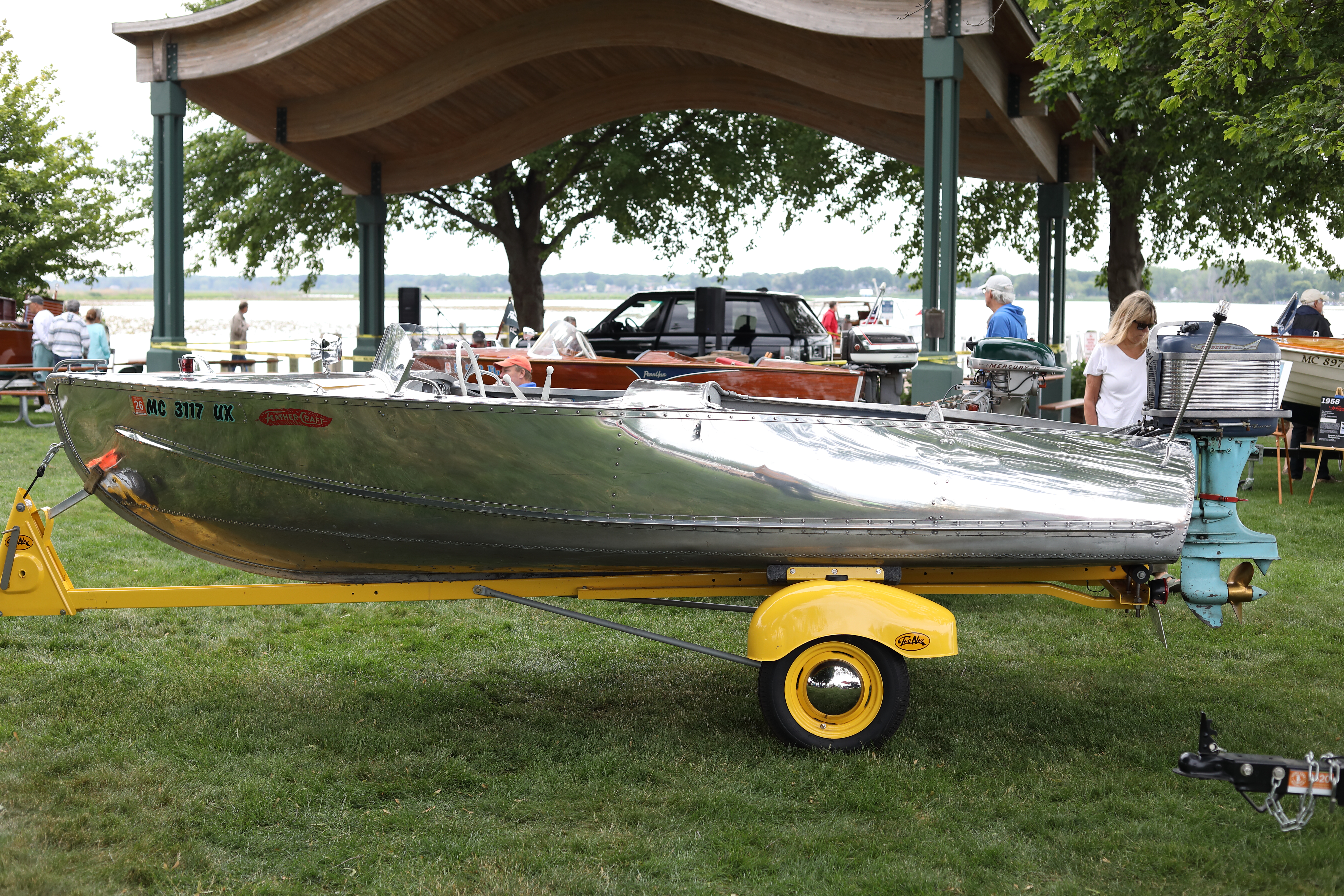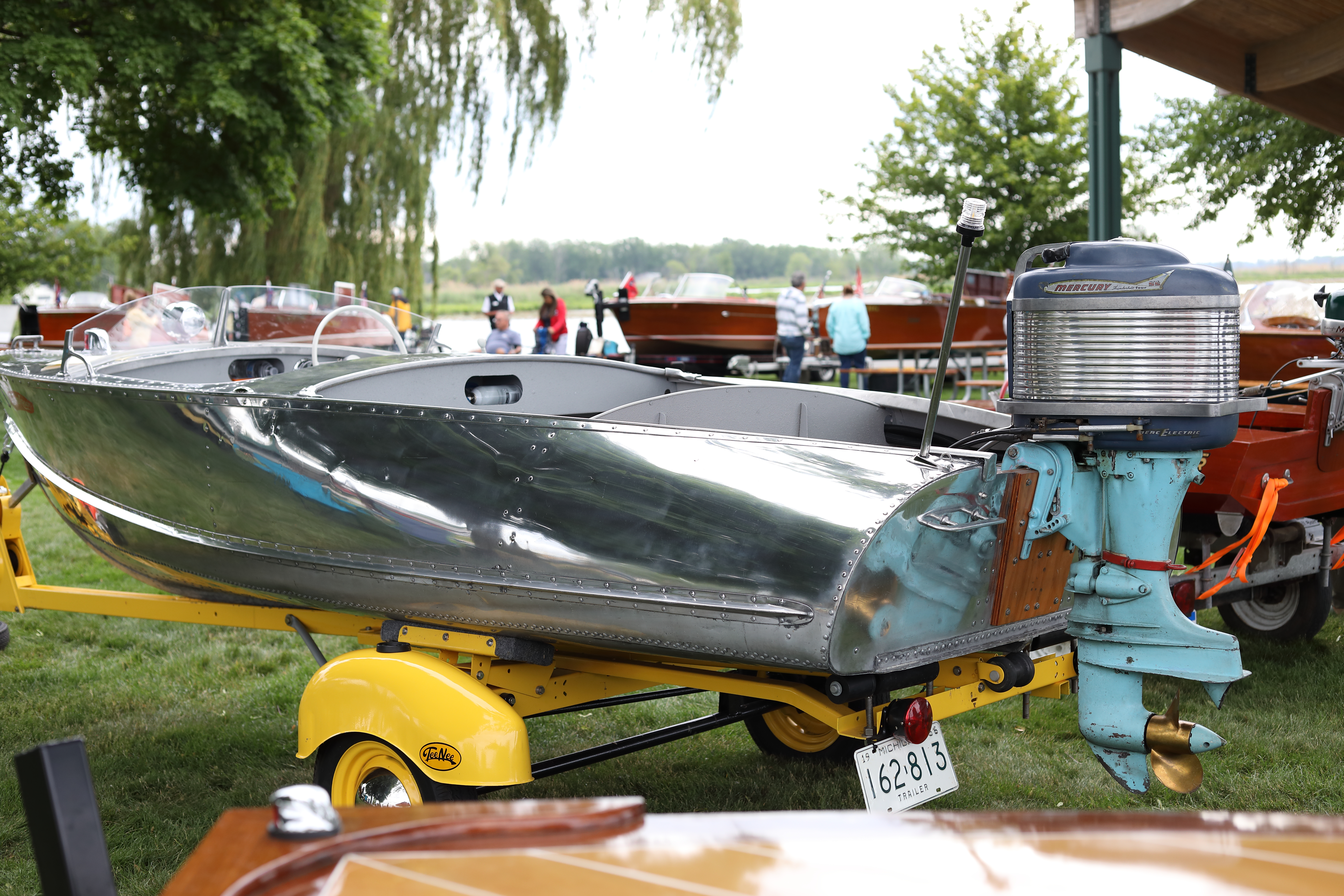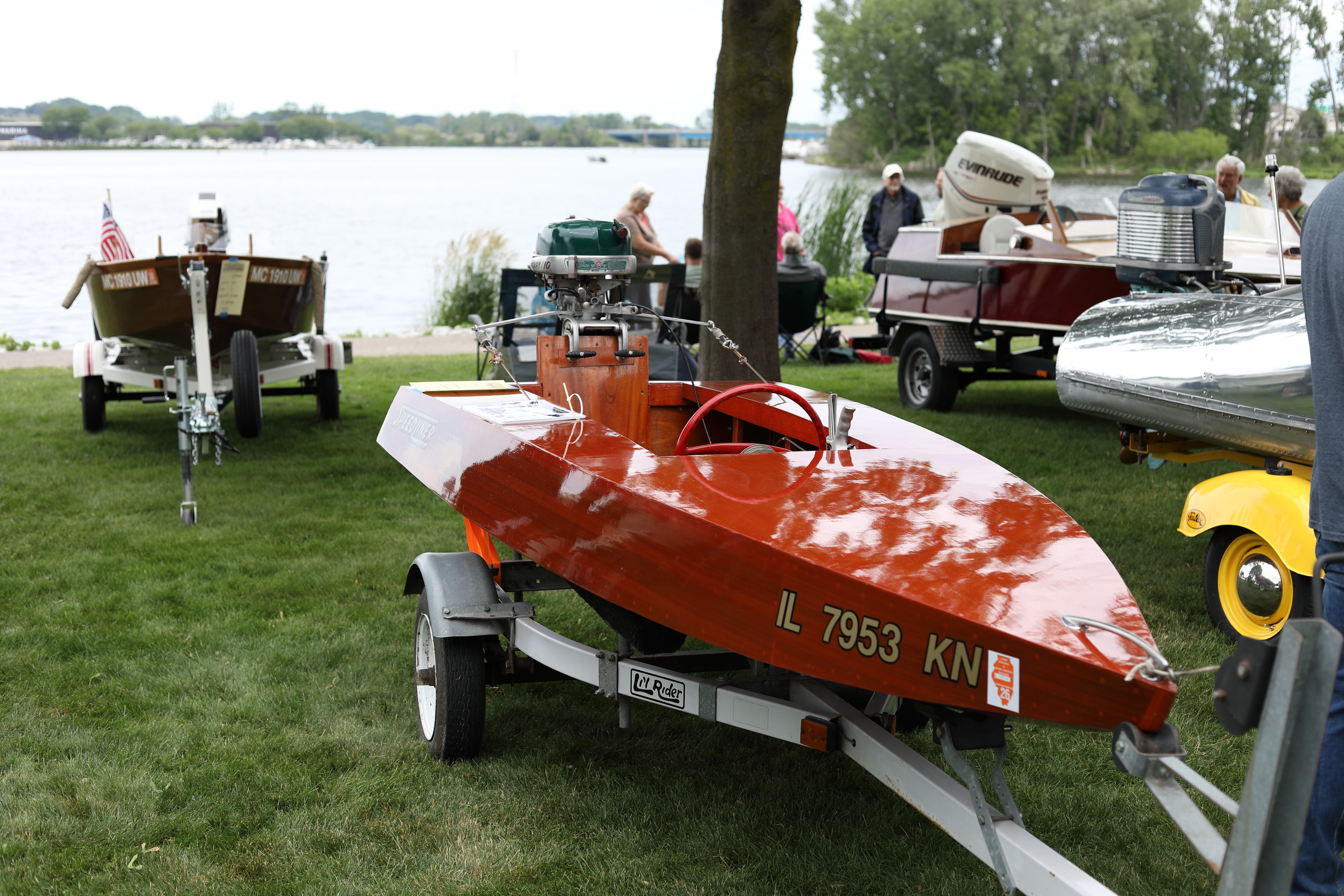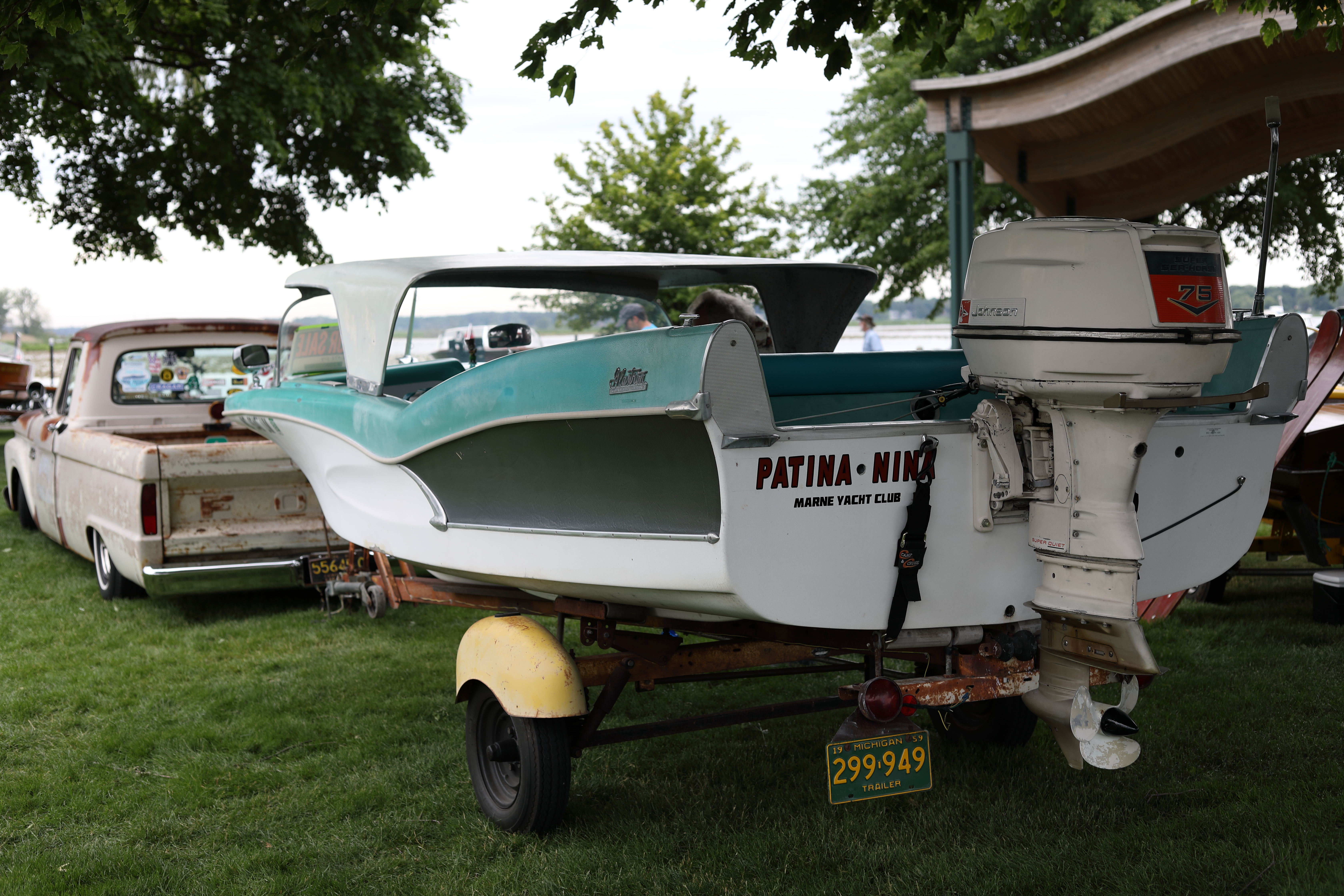 It was a beautiful day in Spring Lake for this meet. Both the boat show and our club featured many fine displays of boats and motors, including a custom built Mustang Boat-Car!