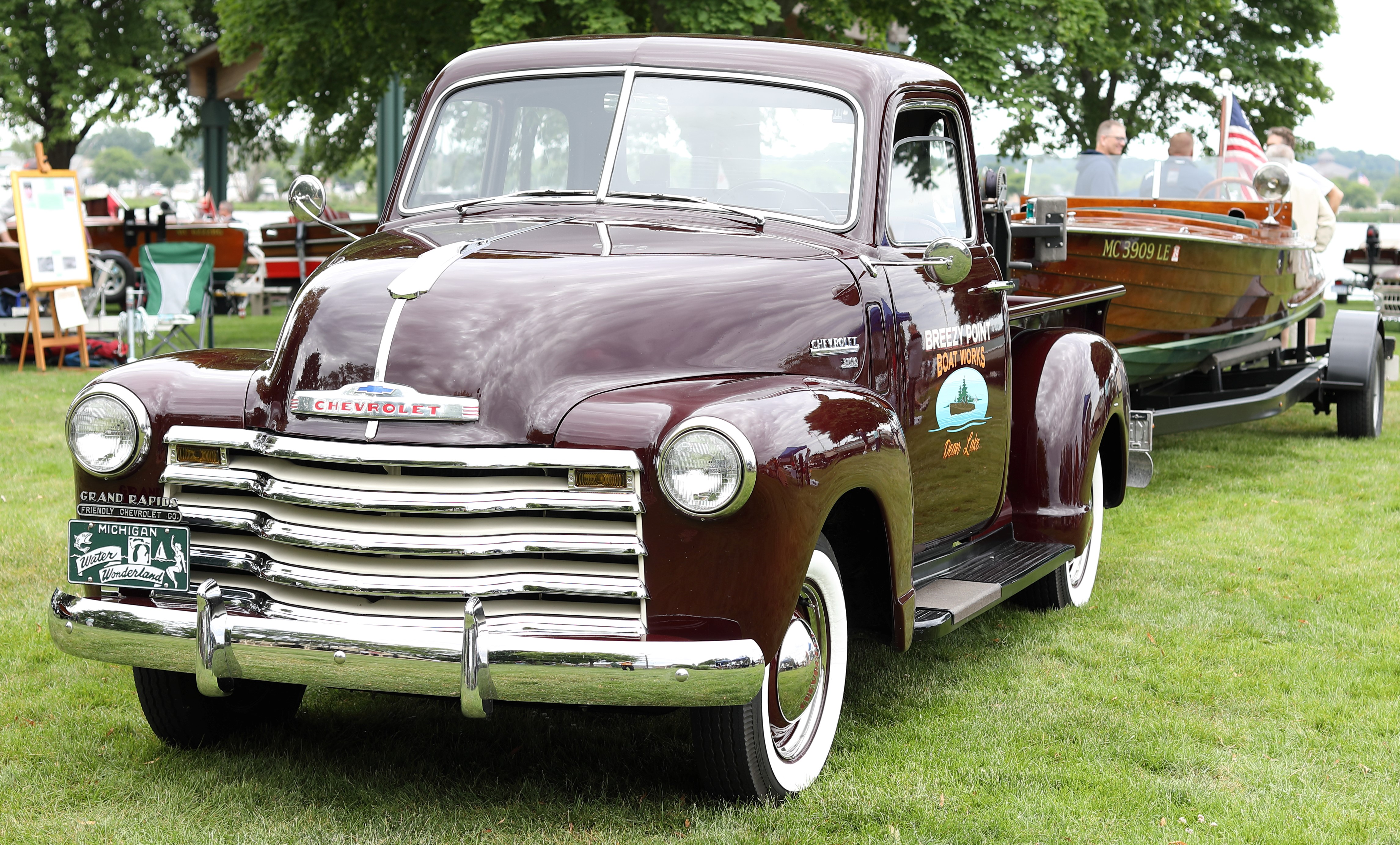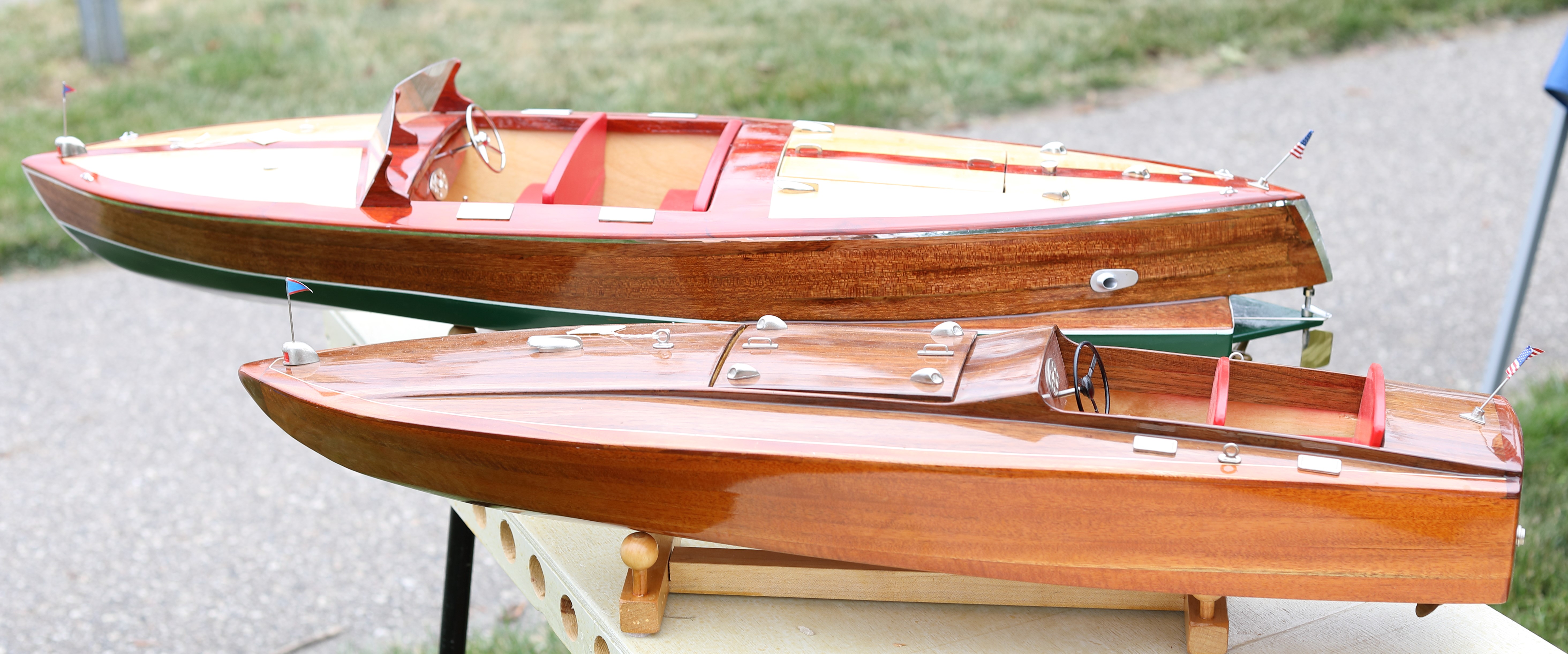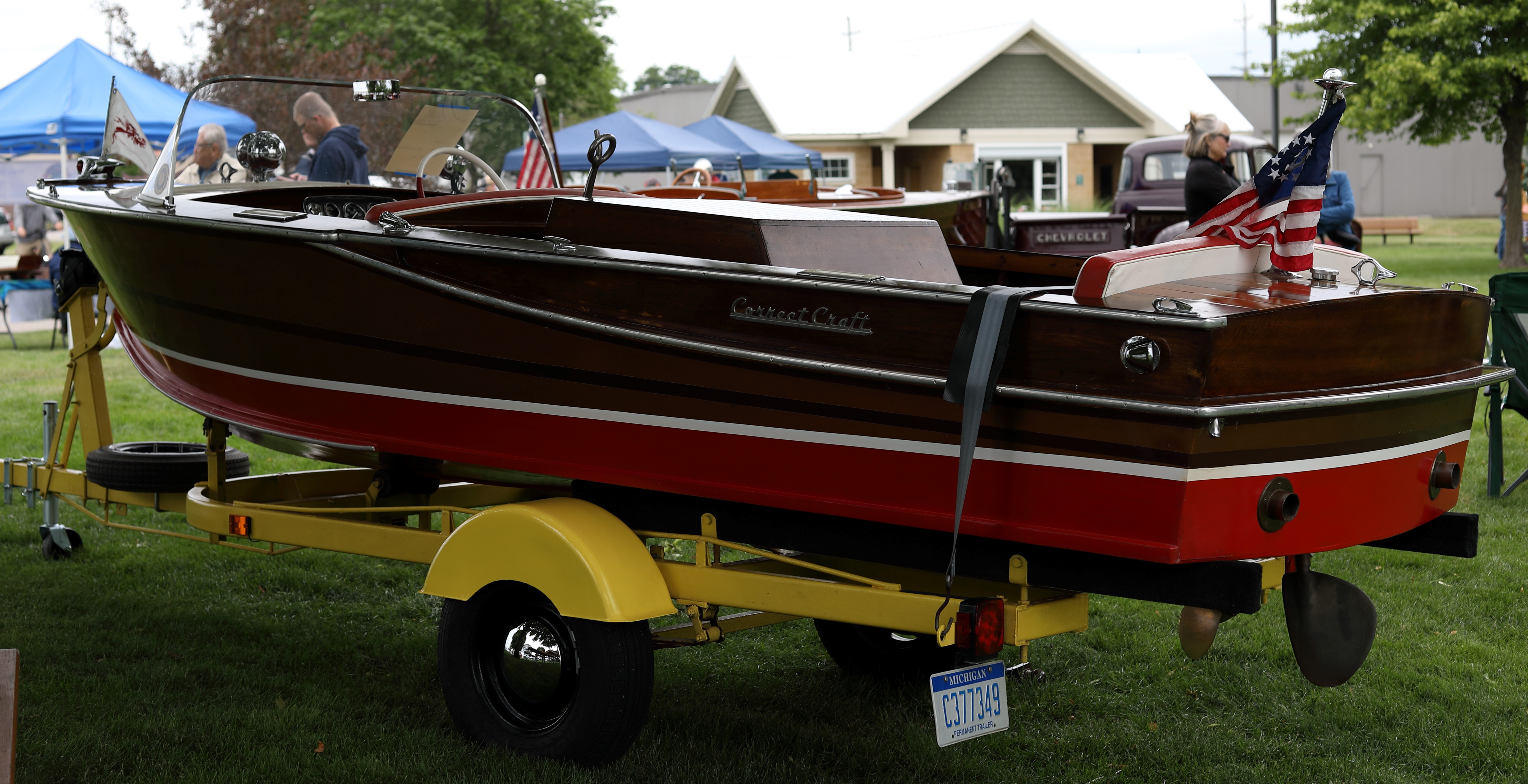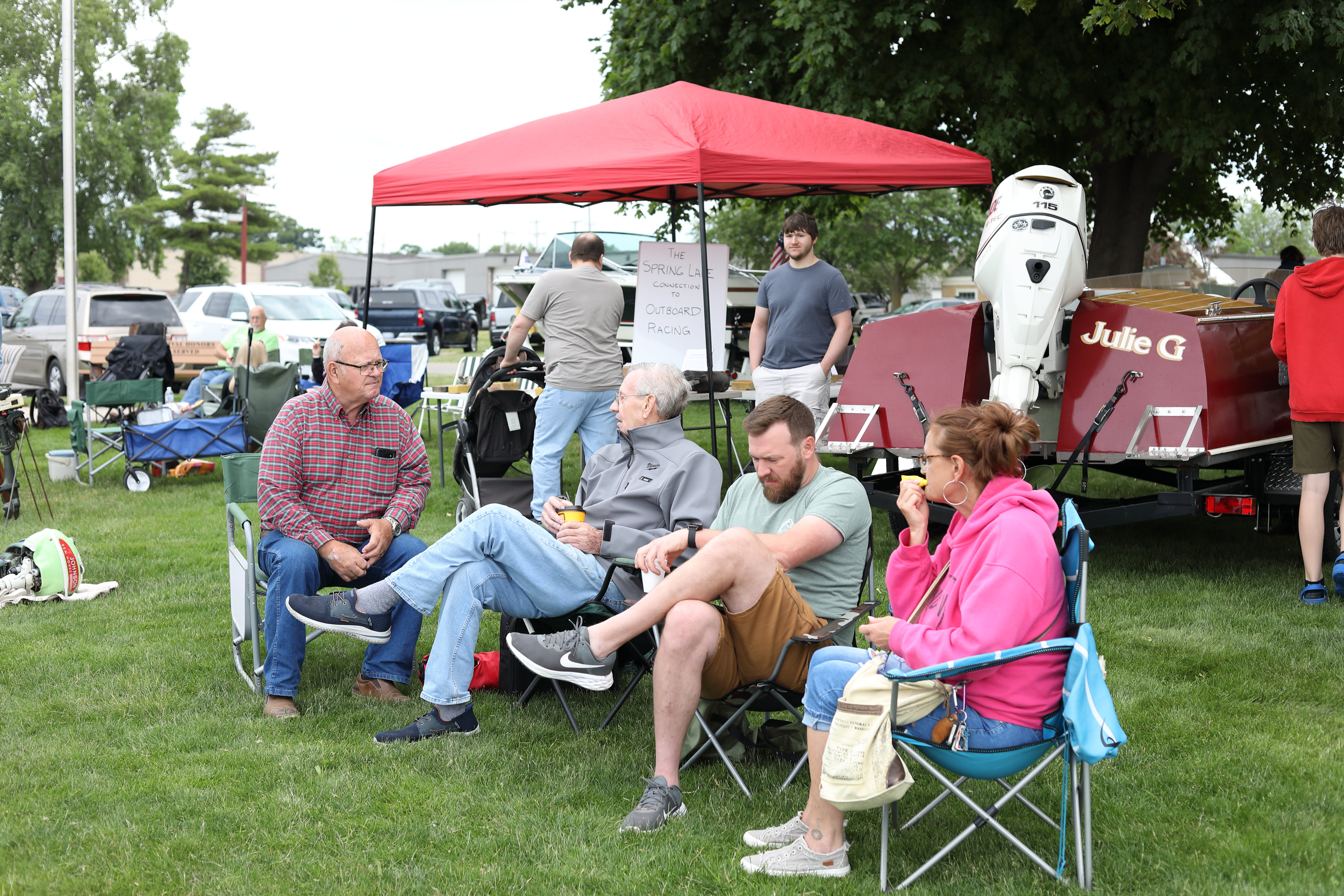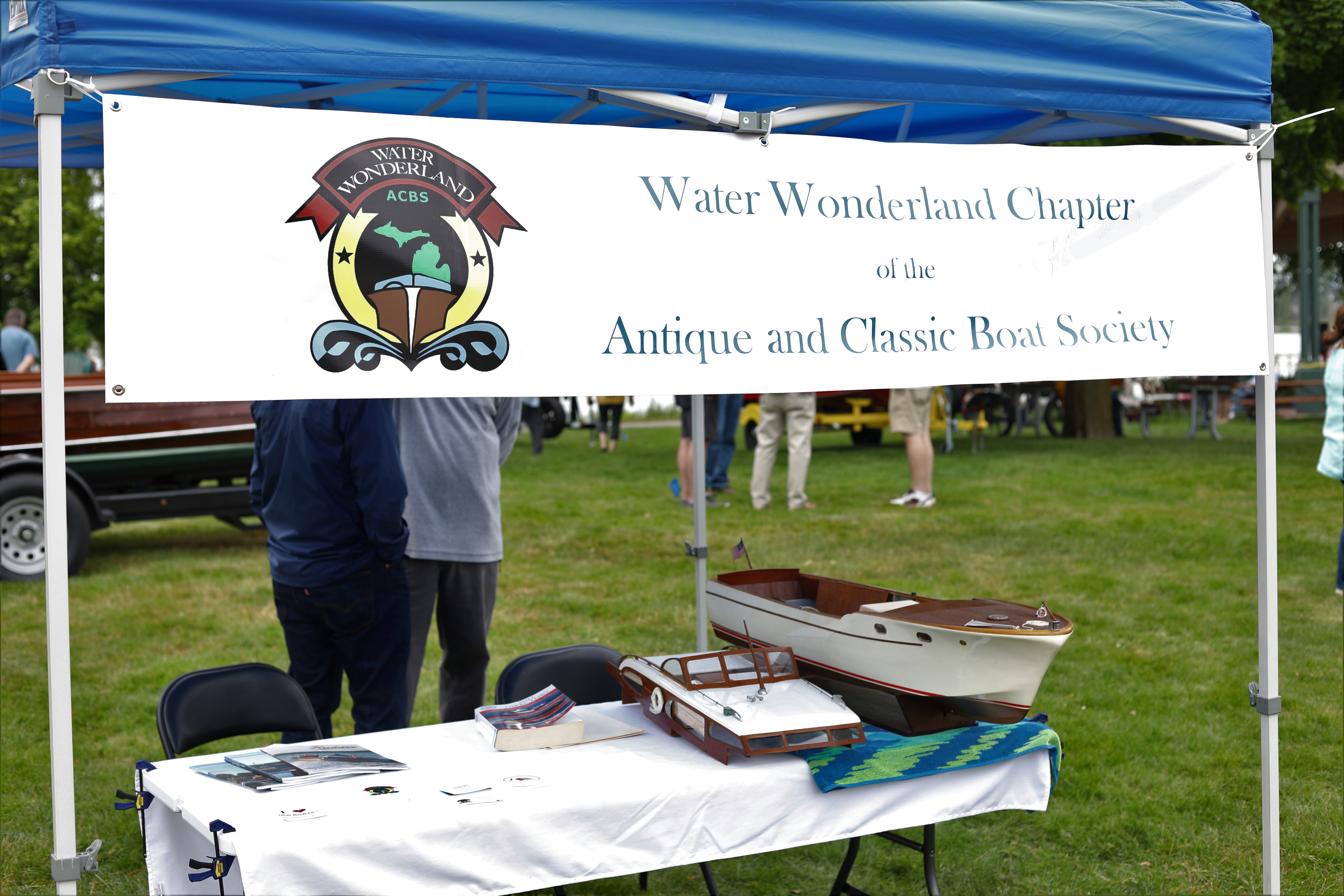 It was a beautiful day in Spring Lake for this meet. Both the boat show and our club featured many fine displays of boats and motors, including a custom built Mustang Boat-Car!