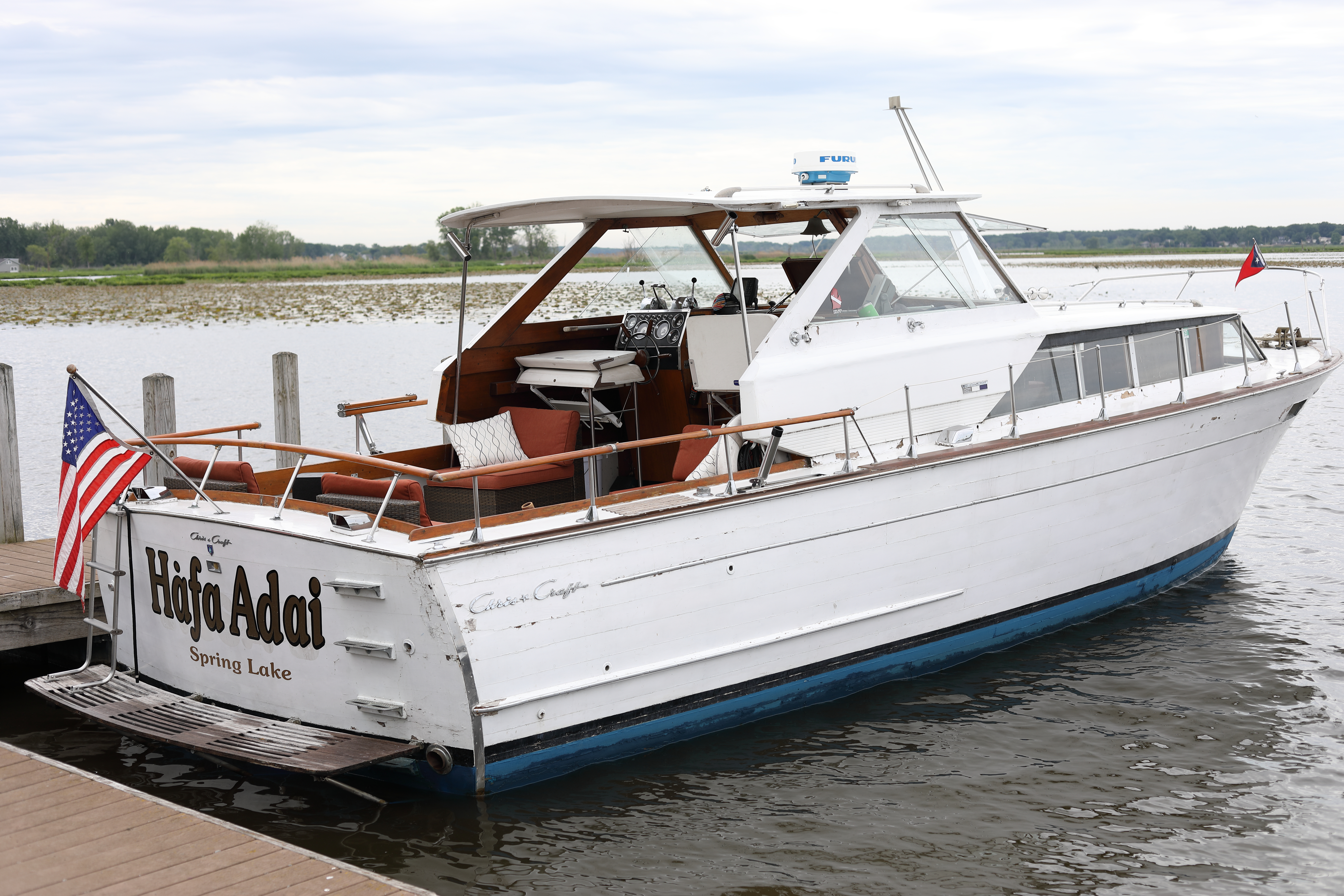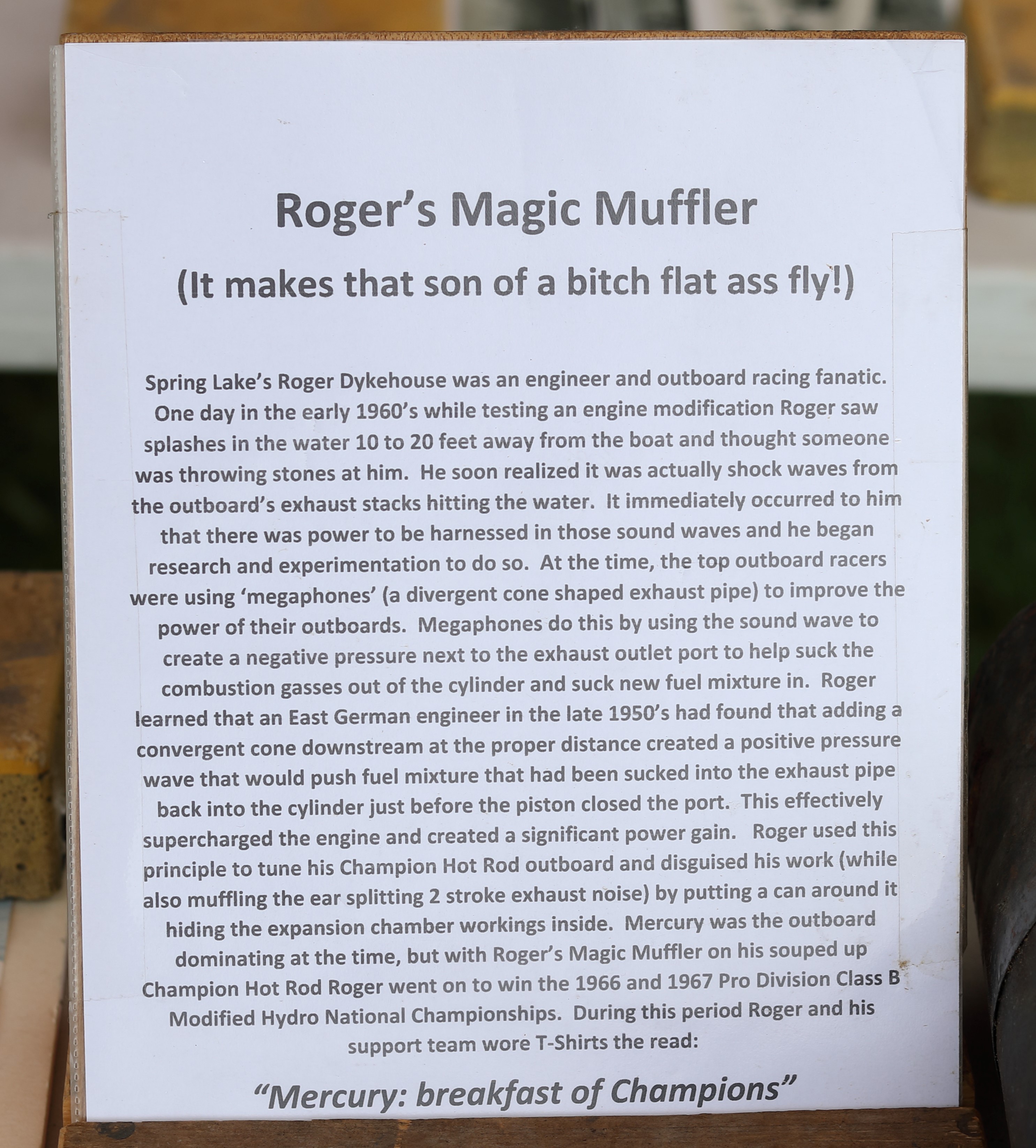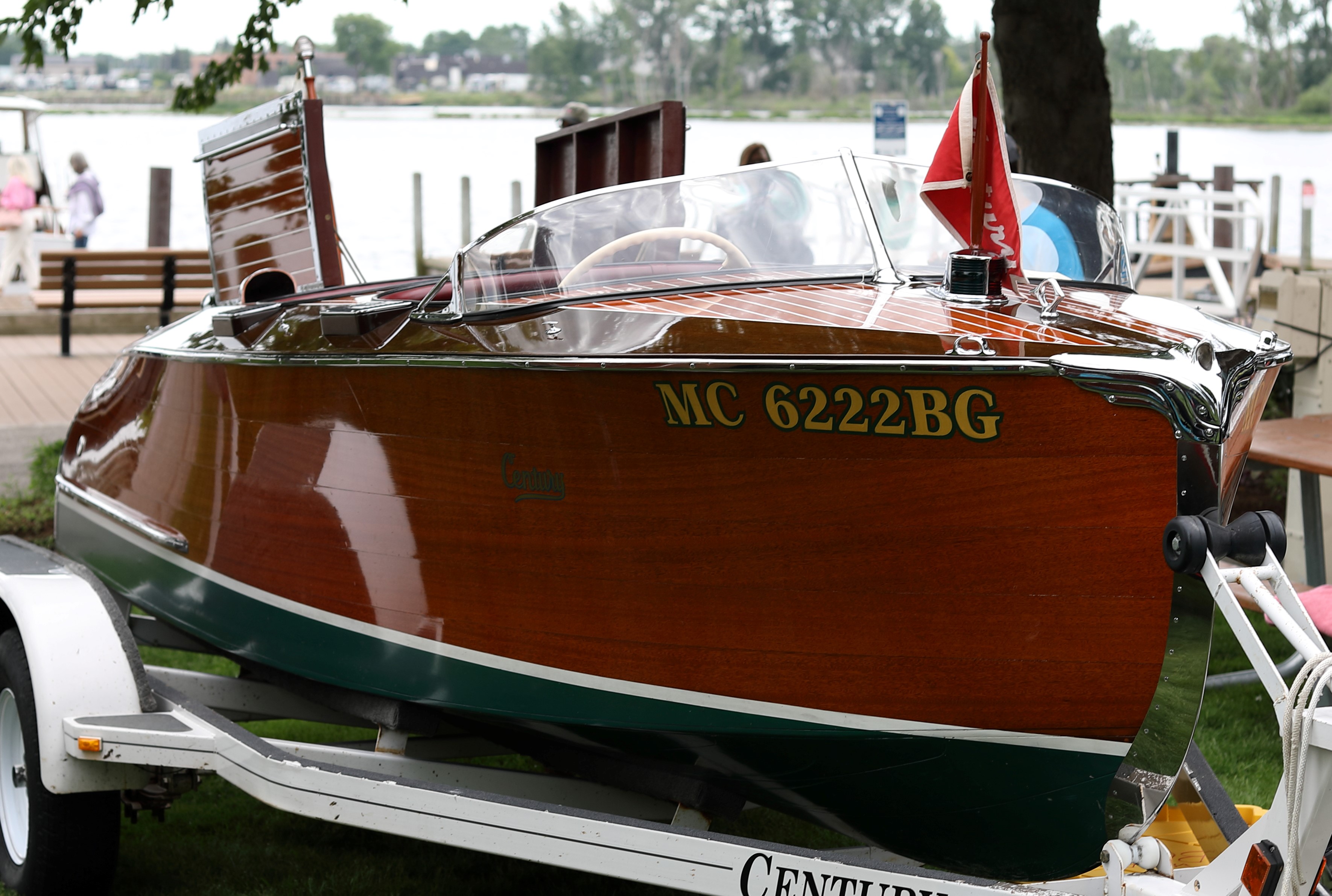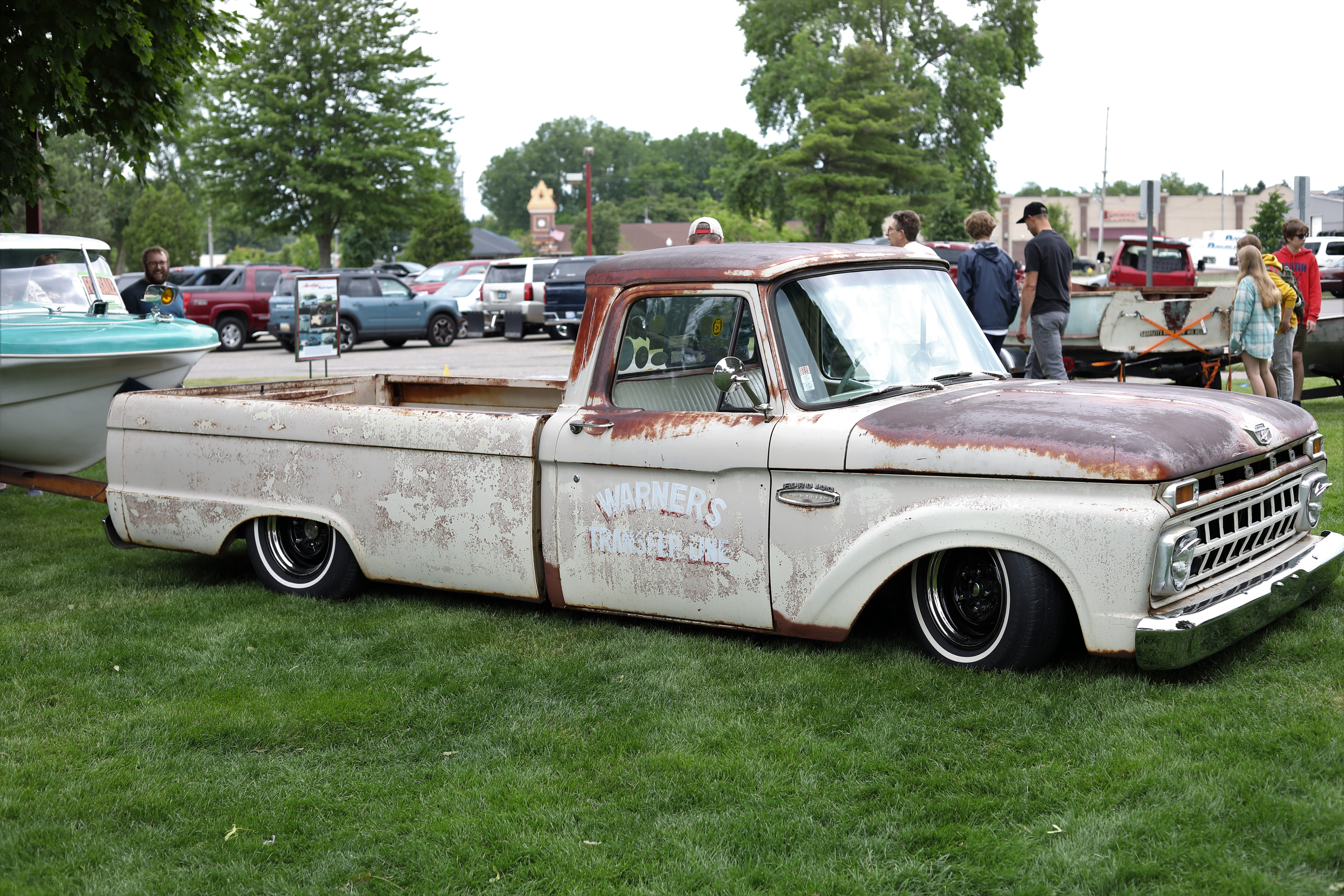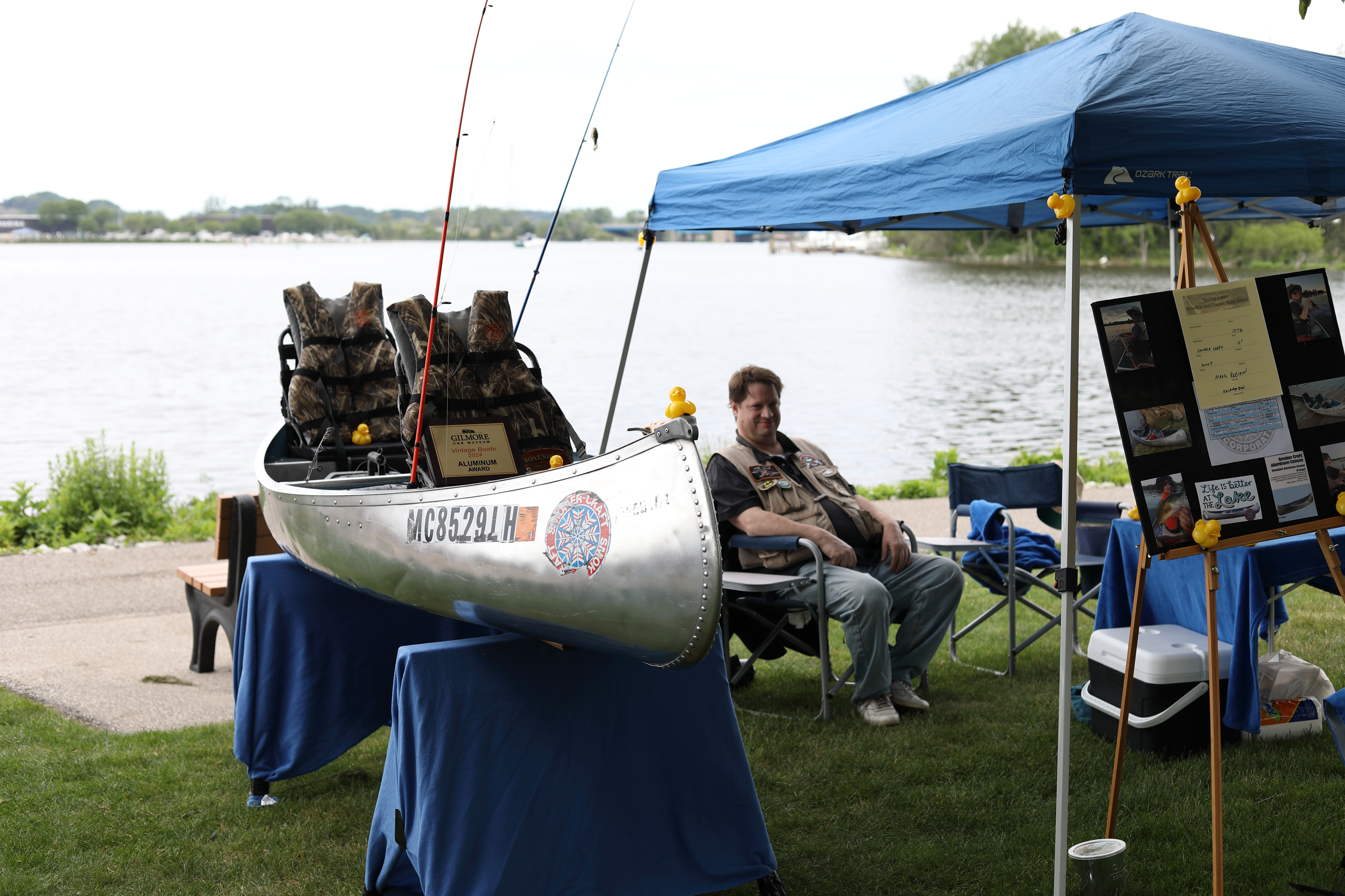It was a beautiful day in Spring Lake for this meet. Both the boat show and our club featured many fine displays of boats and motors, including a custom built Mustang Boat-Car!