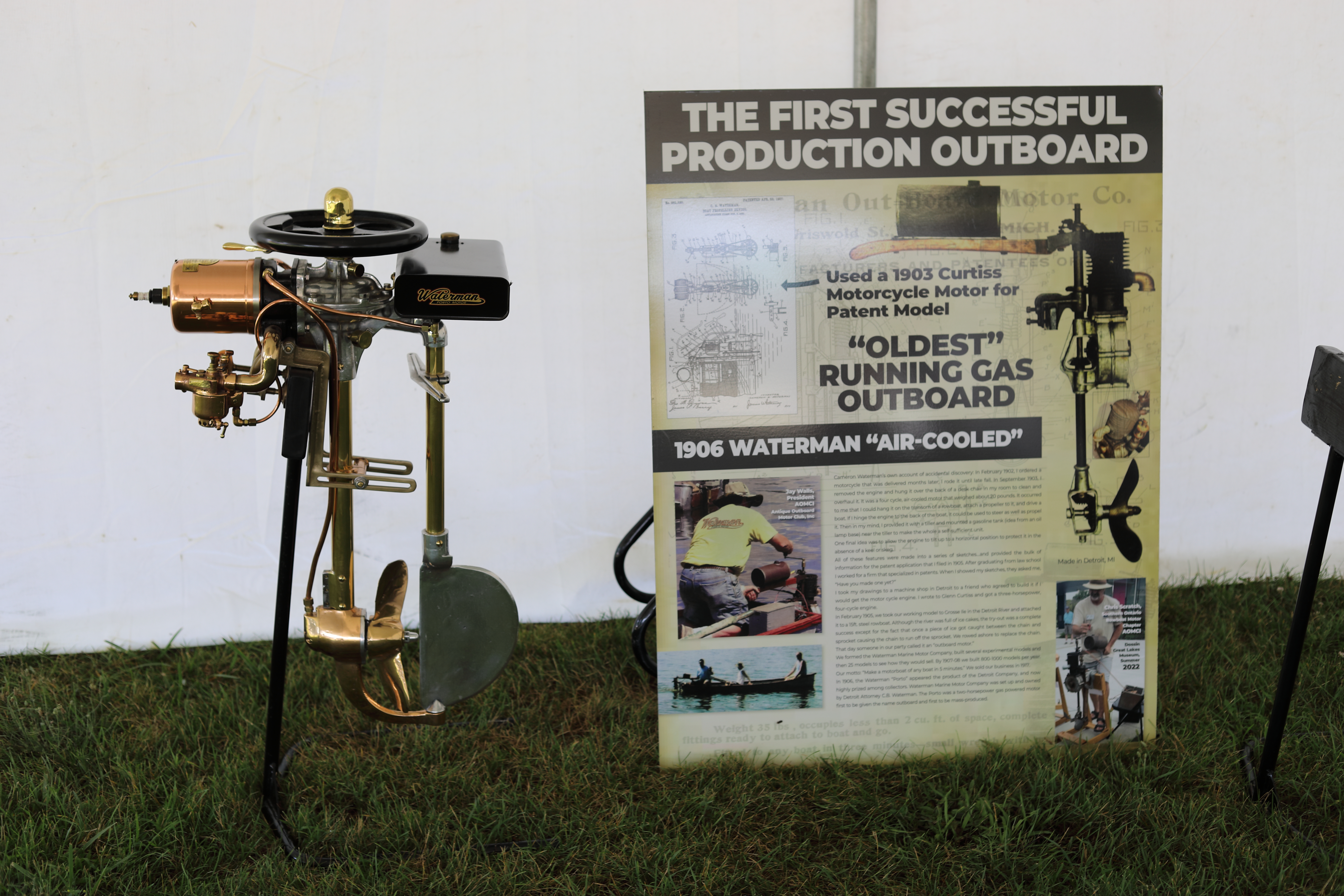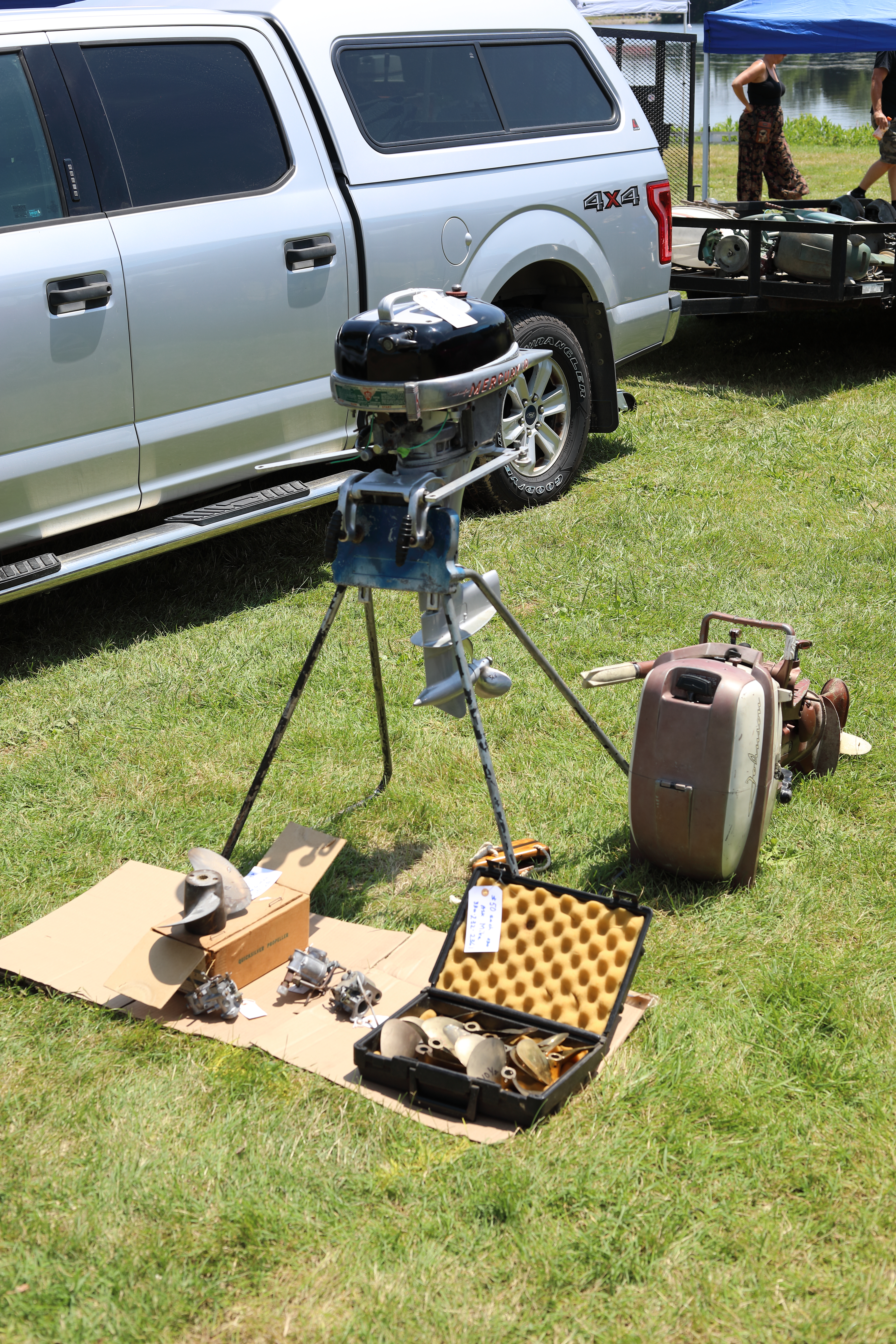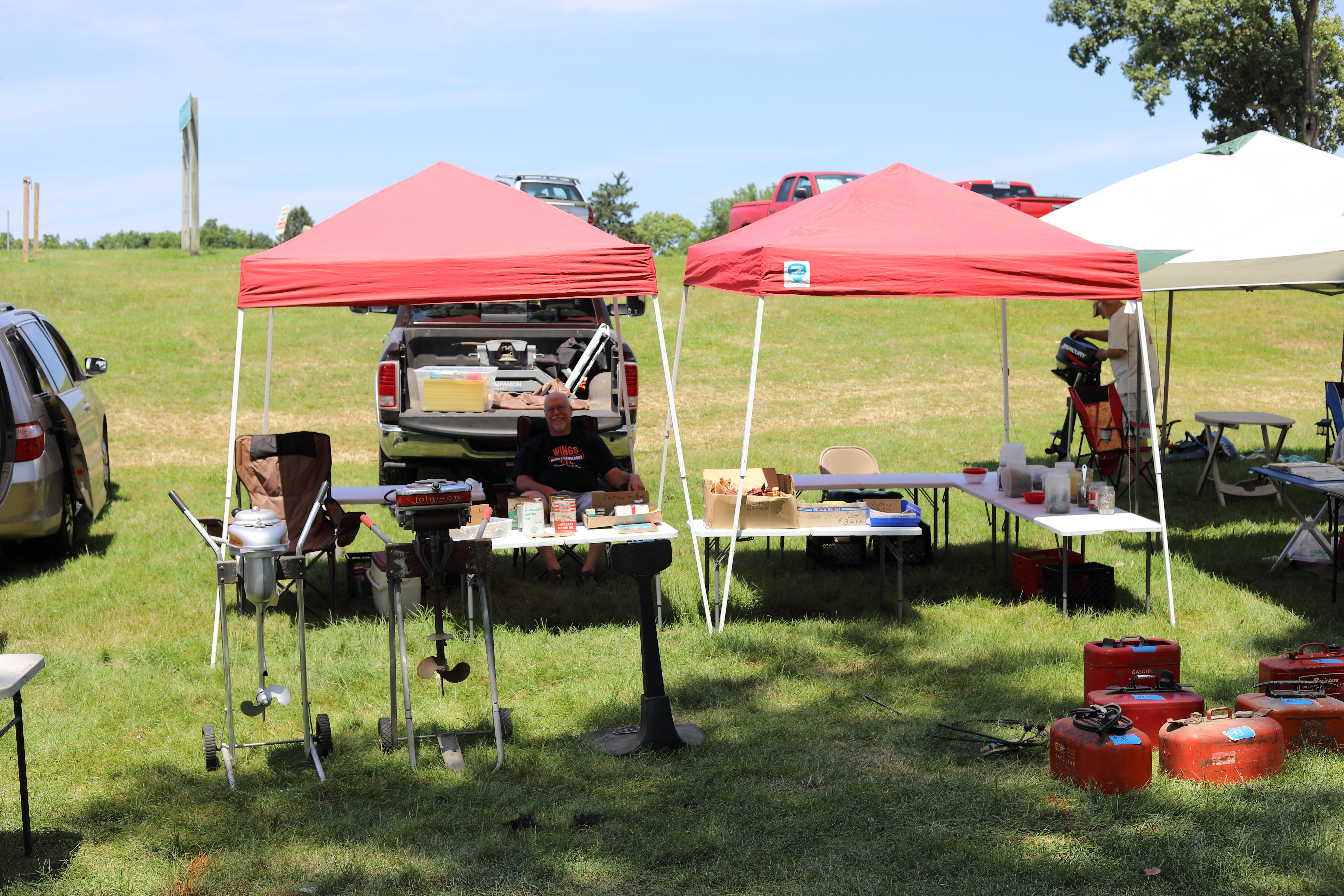 Very warm and sunny on Thursday, with an occasional pleasant breeze - the only day I could attend for these pictures. Good times and great deals on outboards and needed parts were found. Quite a few boats coming in all day with the promise of some great runs! There were many fantastic motor displays under the tent this year, as well as the annual Auction-Under-The-Tree that everyone seems to enjoy. Check the pictures under Motors to view some of these display motors.
