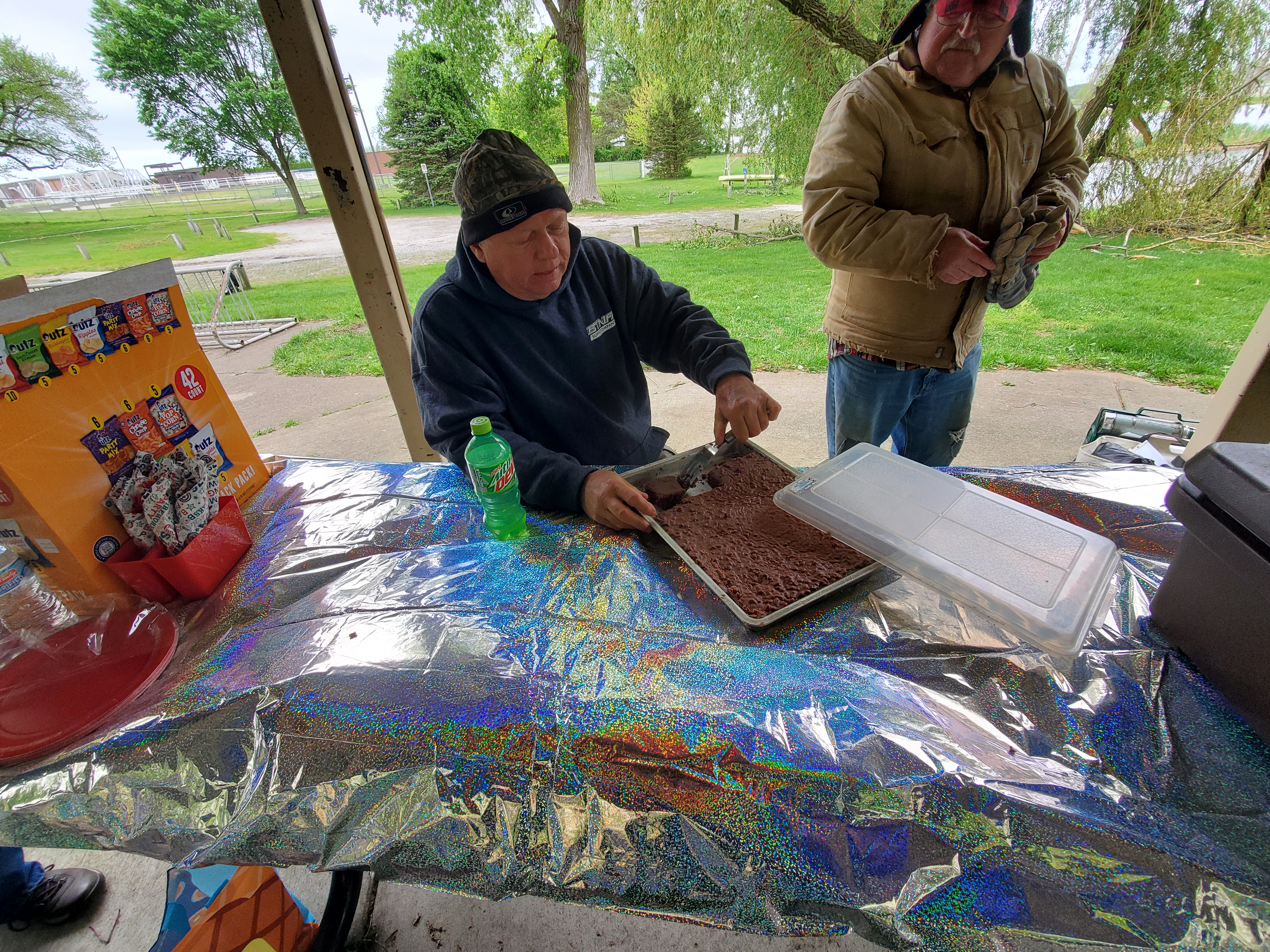 To be honest, it was cold and cloudy, but we still managed to get at least 3 boats out on the water, a number of display motors, and enjoyed a wonderful lunch by Judi and Jim Nienhouse! Also kudos to Jim & Nora Brizzolara for bringing dessert!