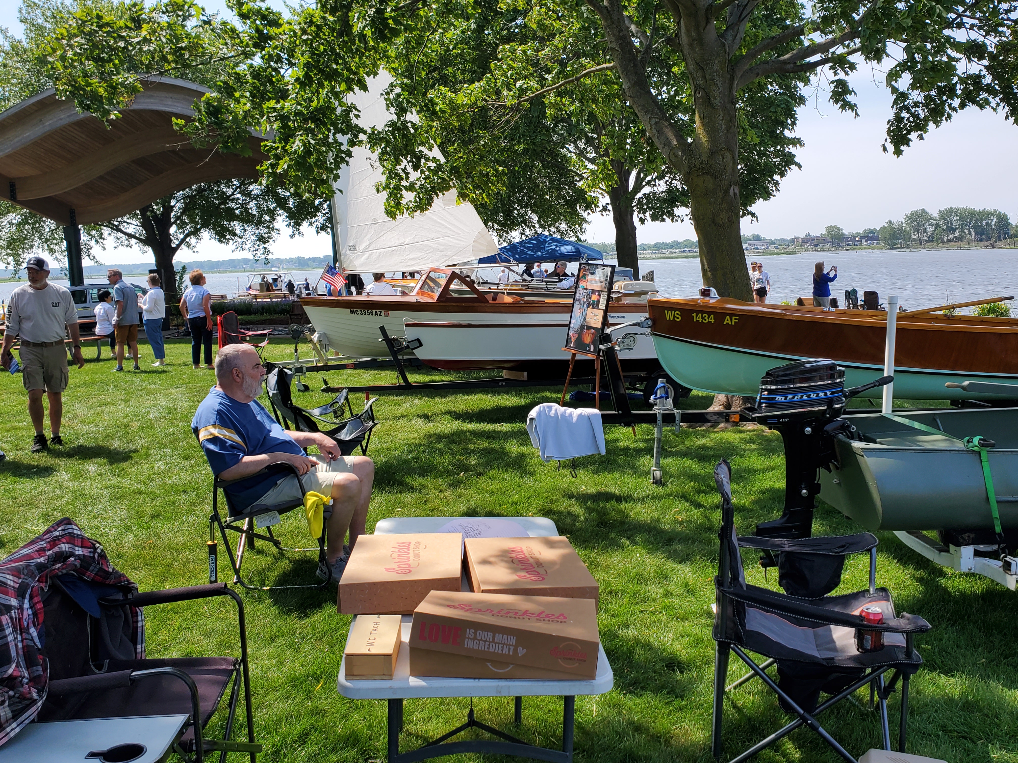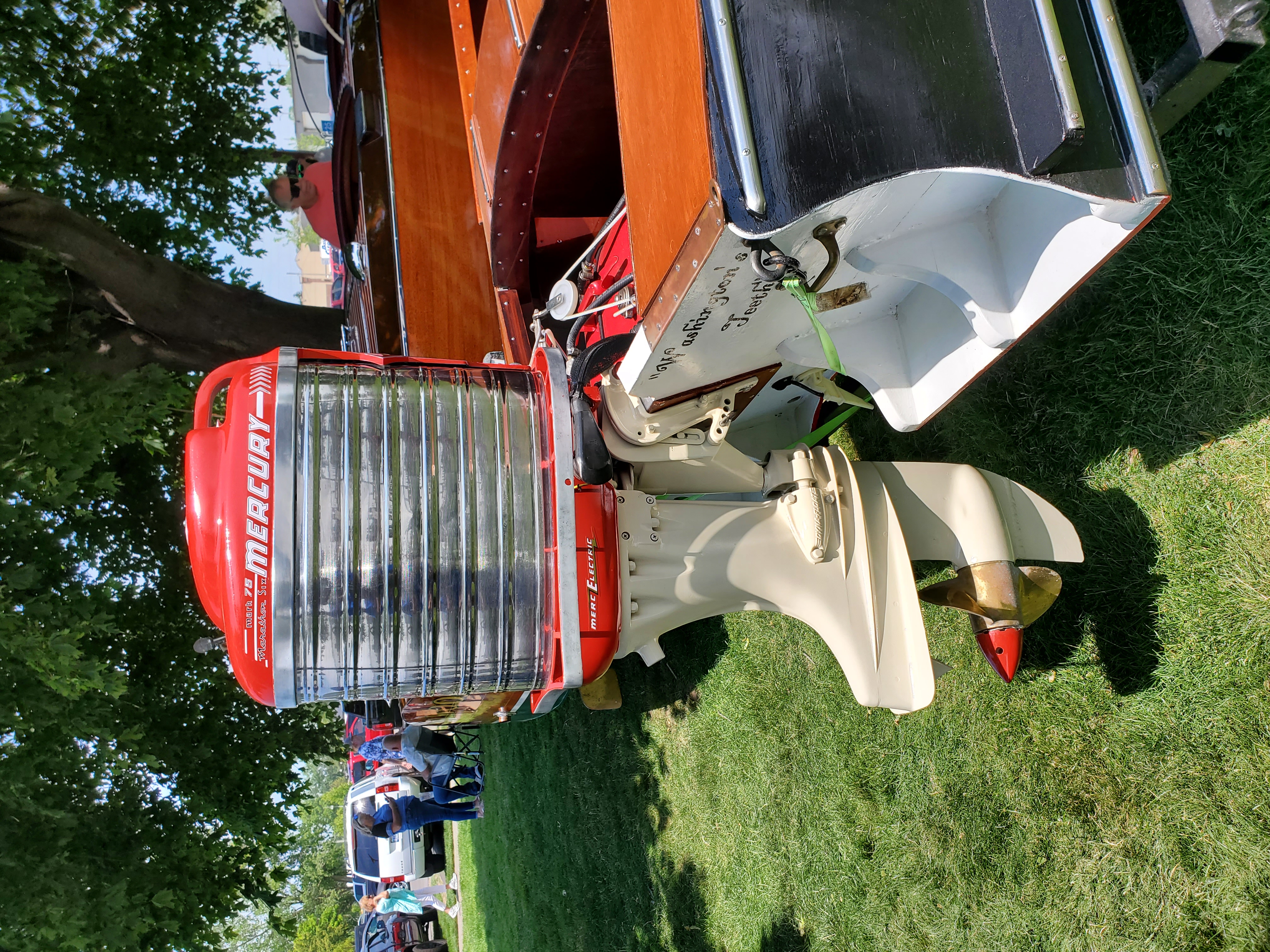 It was a pleasant, sunny Saturday - not too hot. Lots of great antique and collectible boats abound. We hosted over 10 outboards with some fascinating stories behind the acquisition of each! Thanks to the boat show there was live music throughout the day.