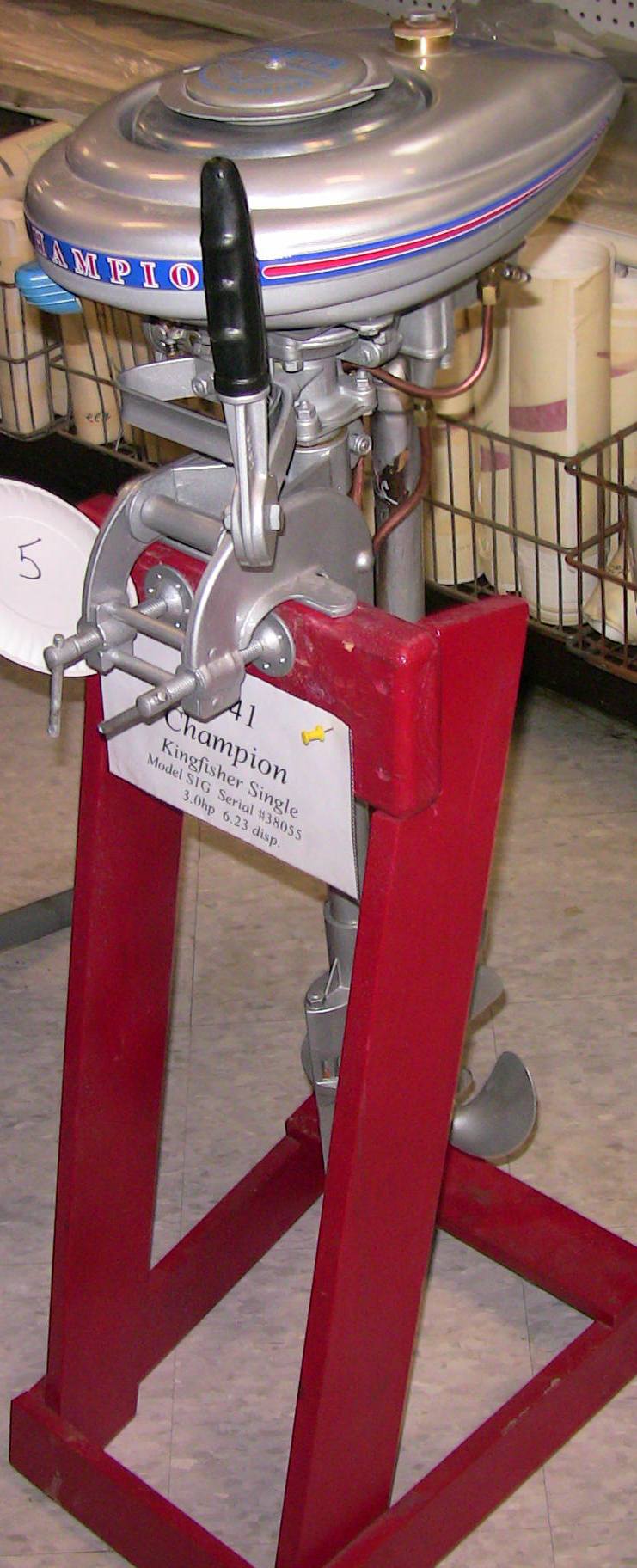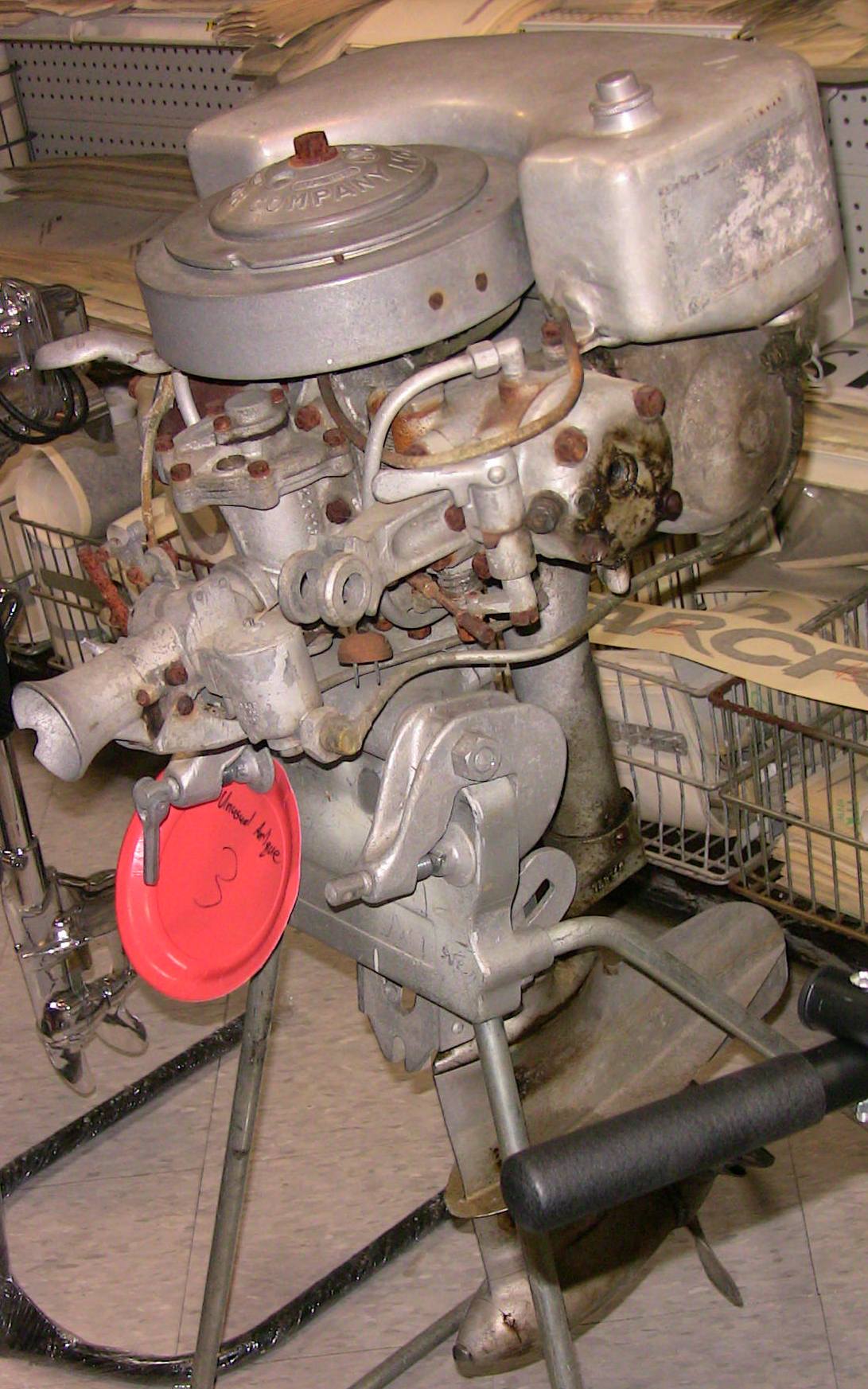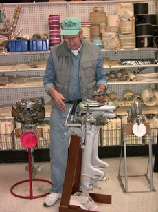 Wolf's Marine was able to supply 3 dozen chairs for our comfort and 4 large tables for our coffee and lunch set-ups and attendance and show-motor registration. That was much appreciated because it eliminated the need to provide any furniture of our own. We had 14 great motors show up for our Peoples' Choice display motor competition. We tried something new for this meet... we had the exhibitor of each of the display motors stand up and give a brief -no longer than 5 minutes - presentation about his or her motor. The information we were looking for could include year produced, brand, model, manufacturer, specifications, distinctive features, condition, history and justification for the show category selected.