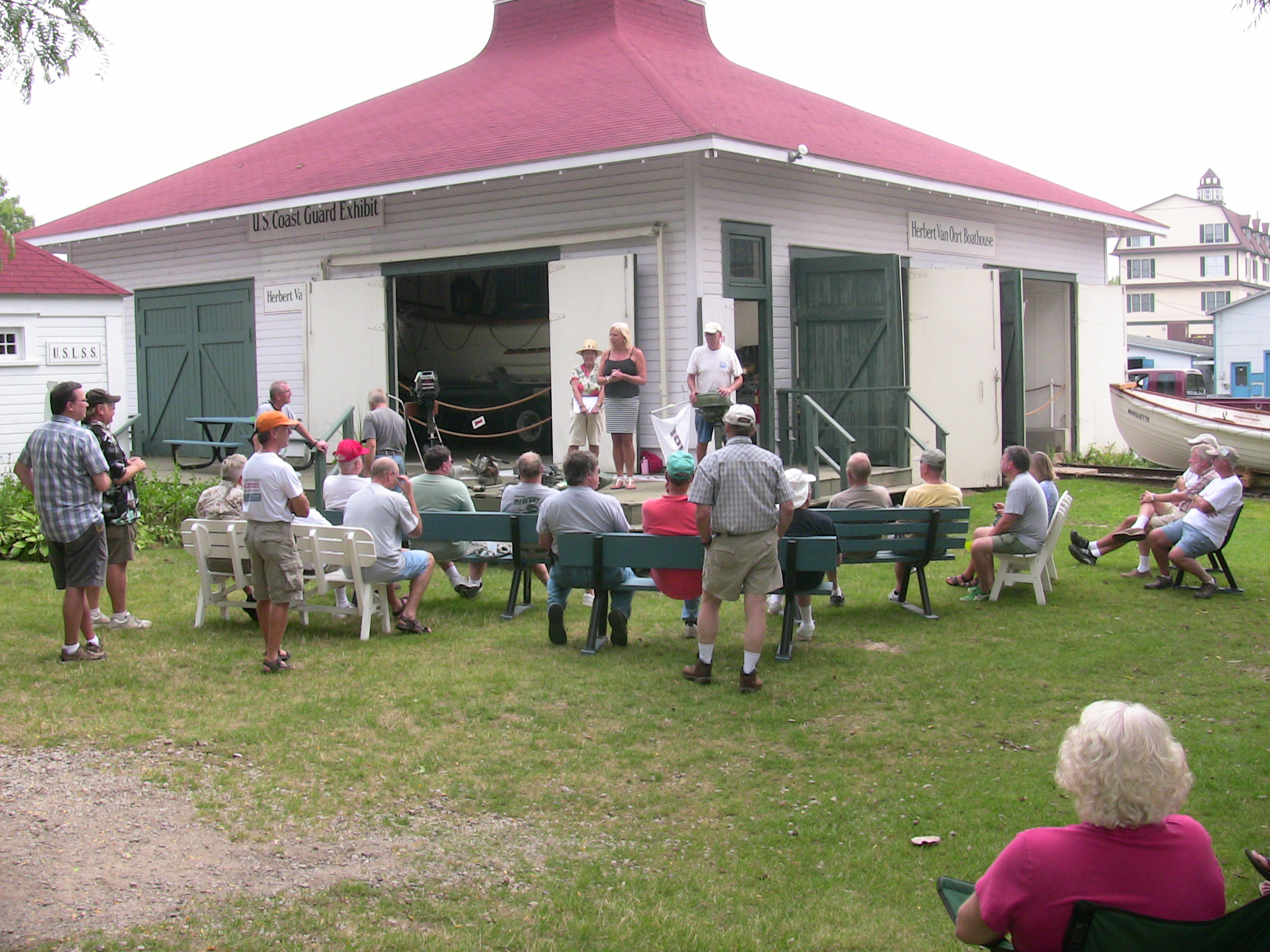 One of the traditional events at this meet is an auction of items donated by Chapter members and by people from the greater South Haven area with the proceeds going to the Museum to help offset operating costs (one of their latest fund raising projects is to help fund a new building for their small watercraft collection). While the collective donated items did not look like they would bring in all that much, the results were quite surprising. The bidding was quite competitive and brought in a total of $420. Our auctioneer, Frank James, obviously did his job well but the "generous" crowd really helped. Thanks to all that participated... the proceeds really pleased the Museum personnel.