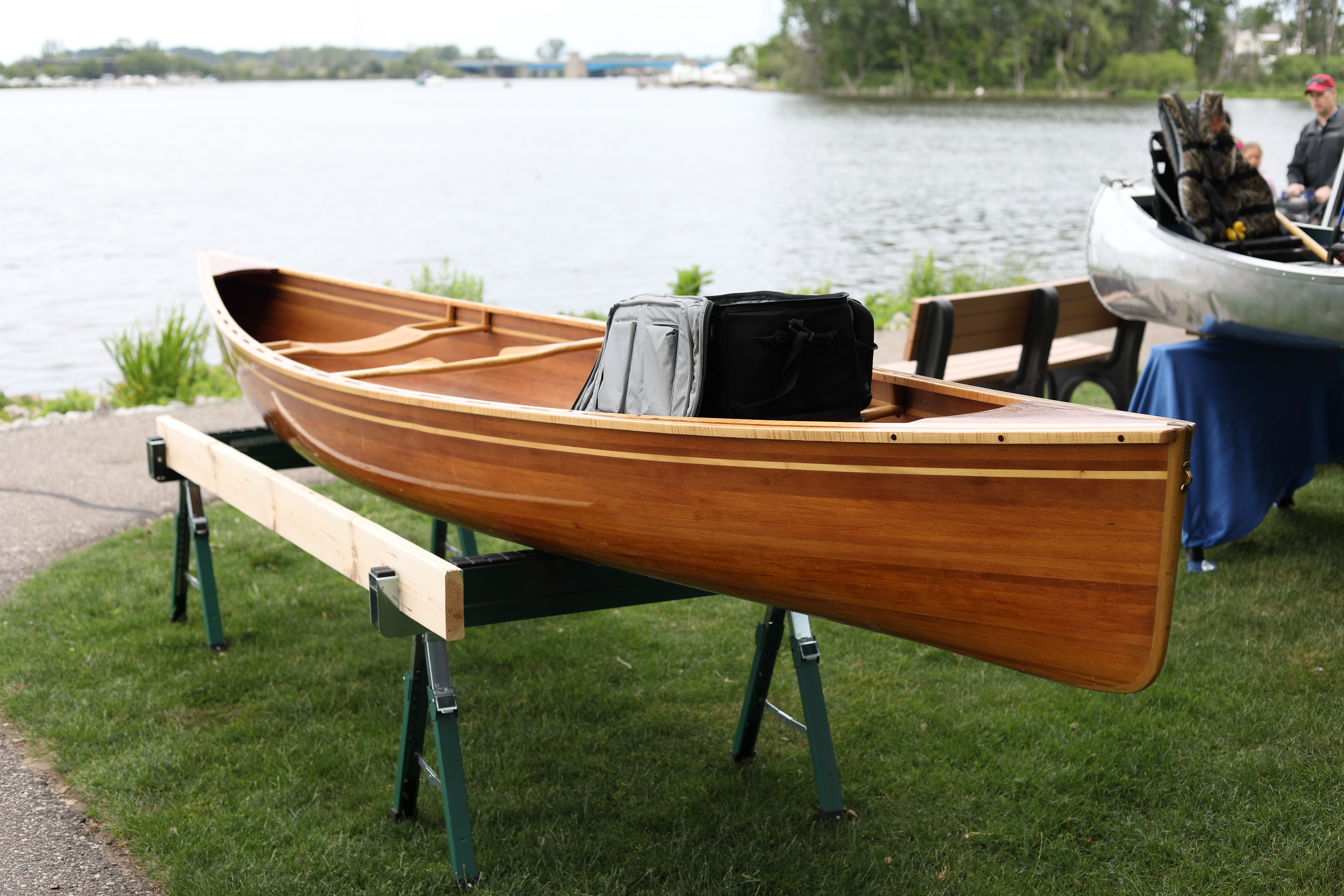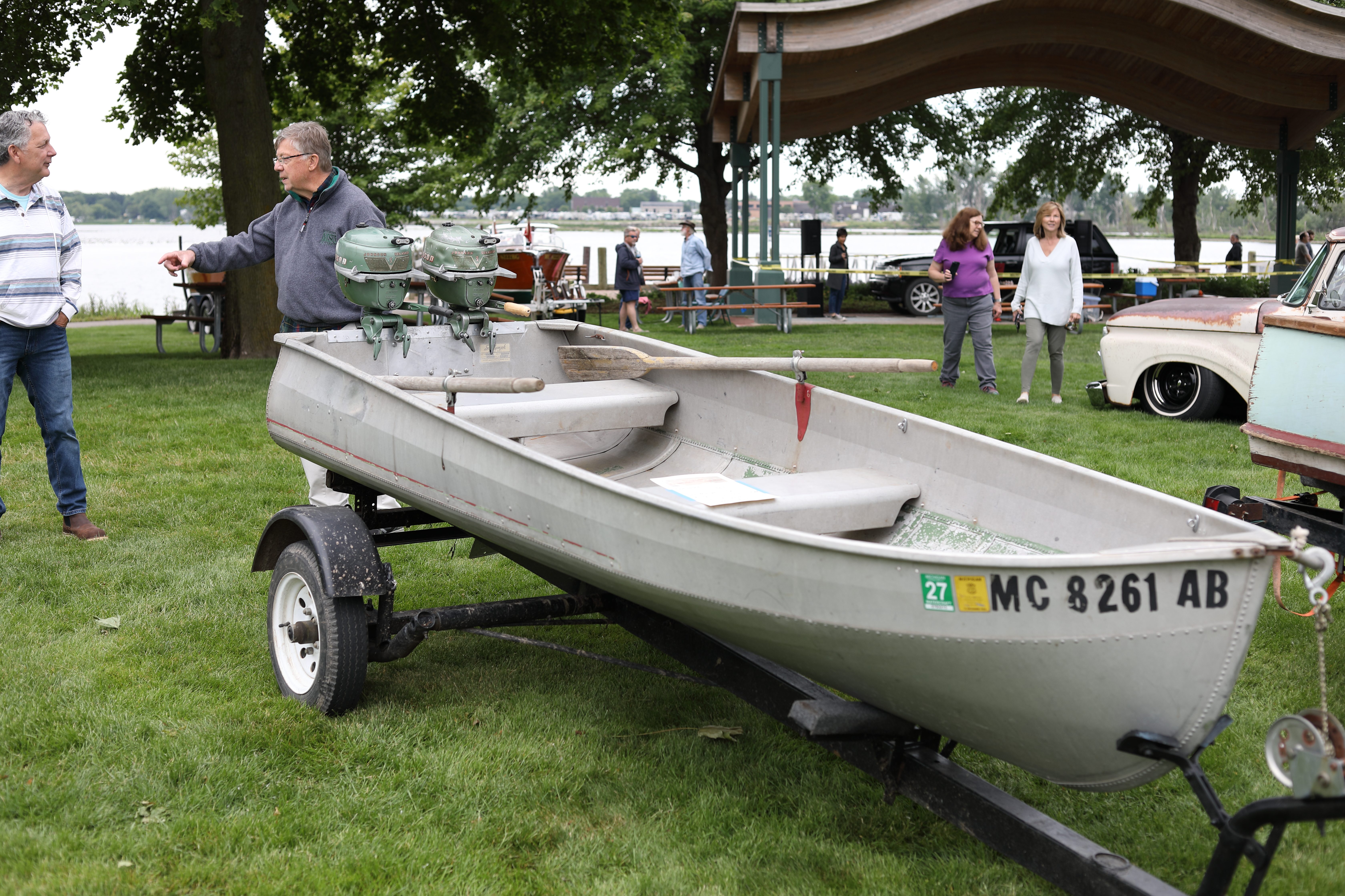 It was a beautiful day in Spring Lake for this meet. Both the boat show and our club featured many fine displays of boats and motors, including a custom built Mustang Boat-Car!
