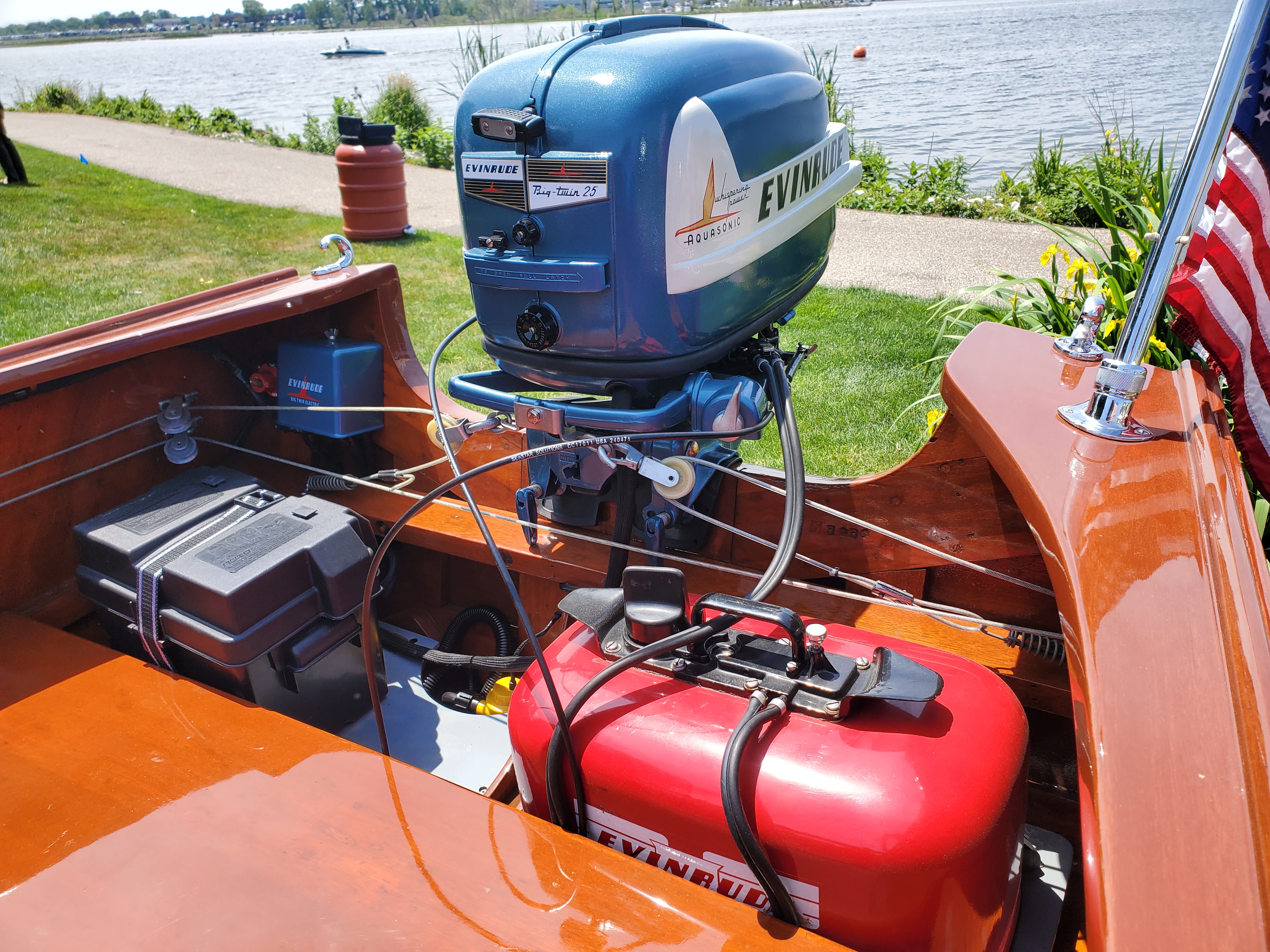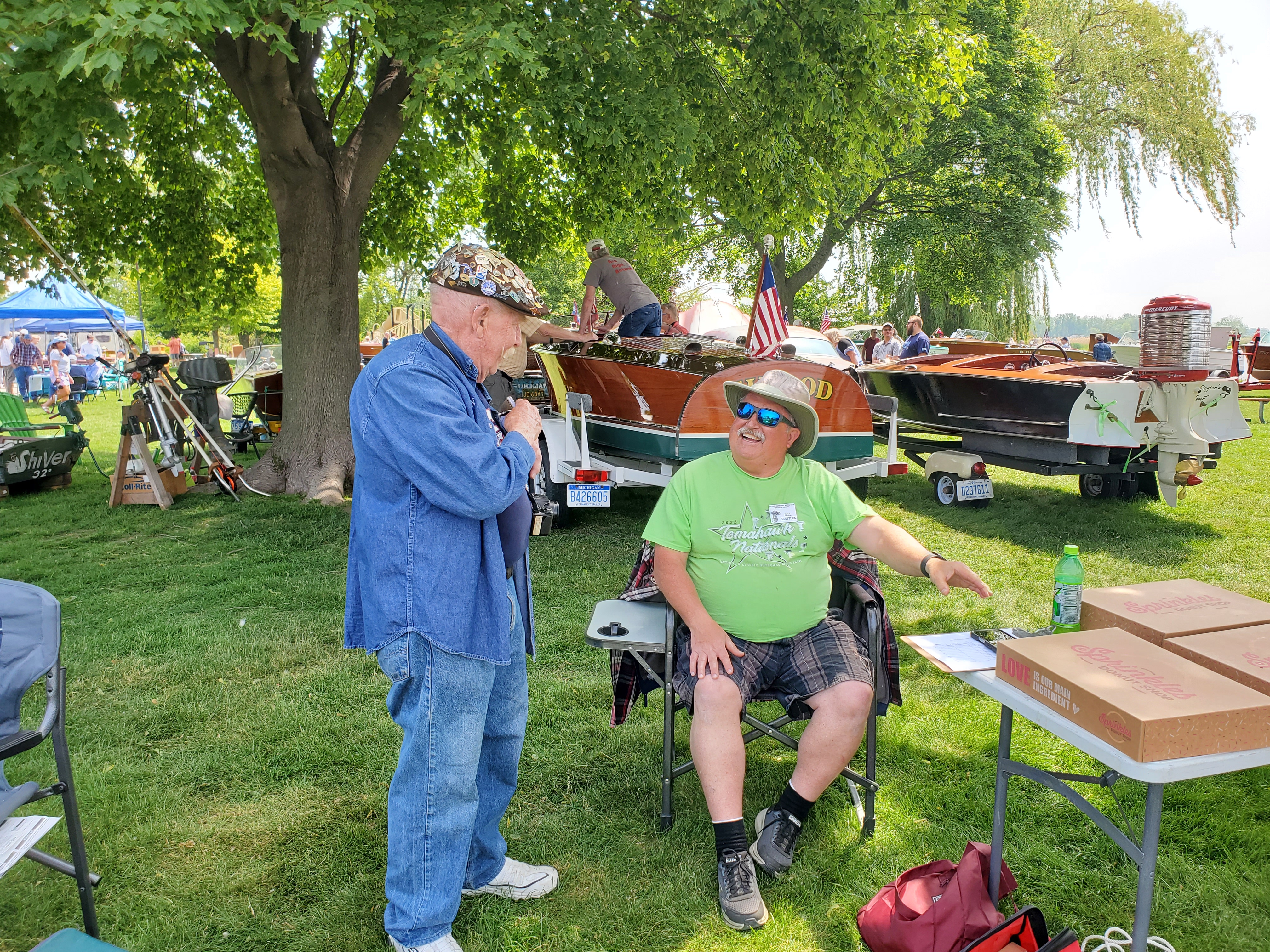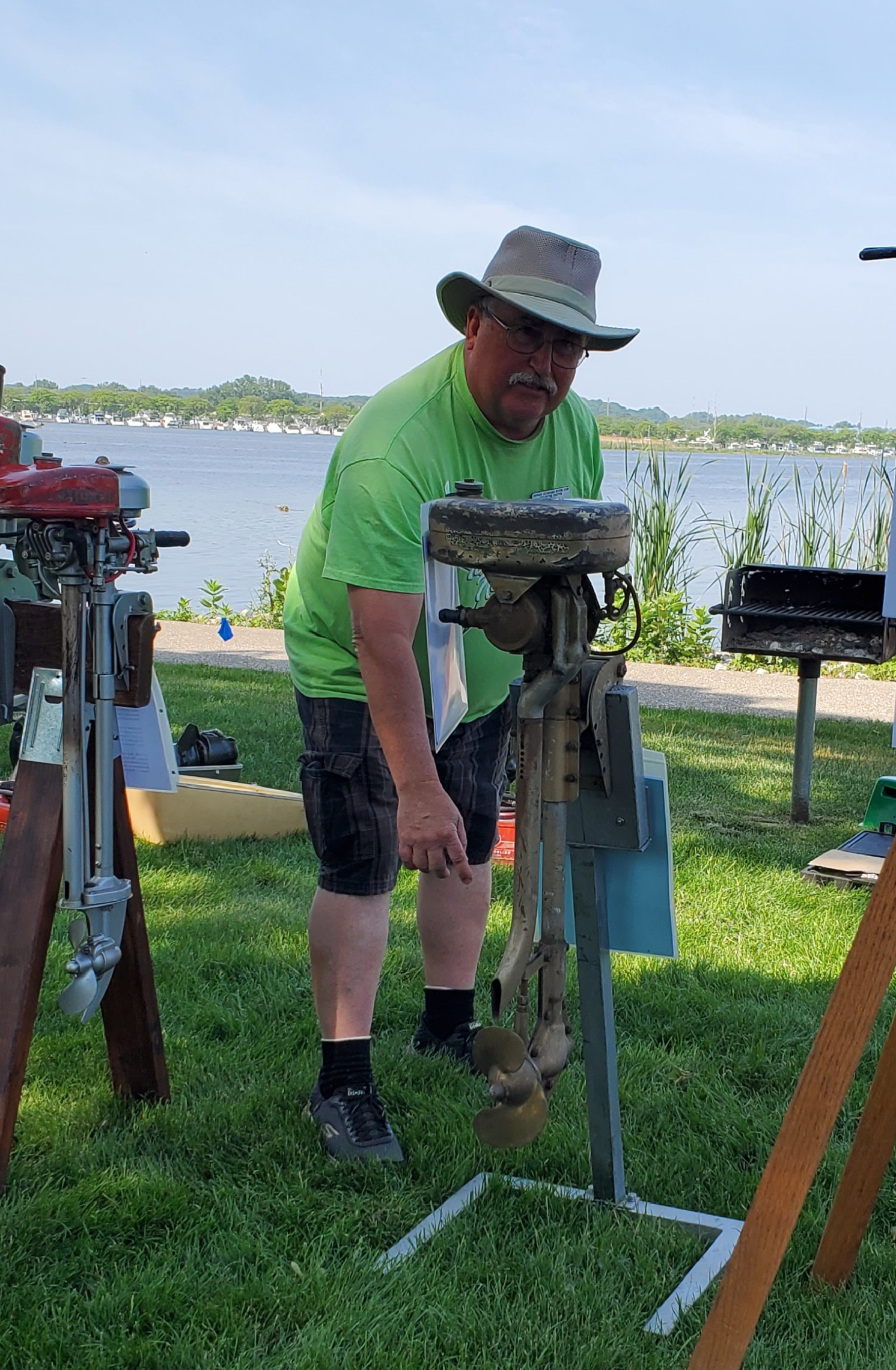 It was a pleasant, sunny Saturday - not too hot. Lots of great antique and collectible boats abound. We hosted over 10 outboards with some fascinating stories behind the acquisition of each! Thanks to the boat show there was live music throughout the day.