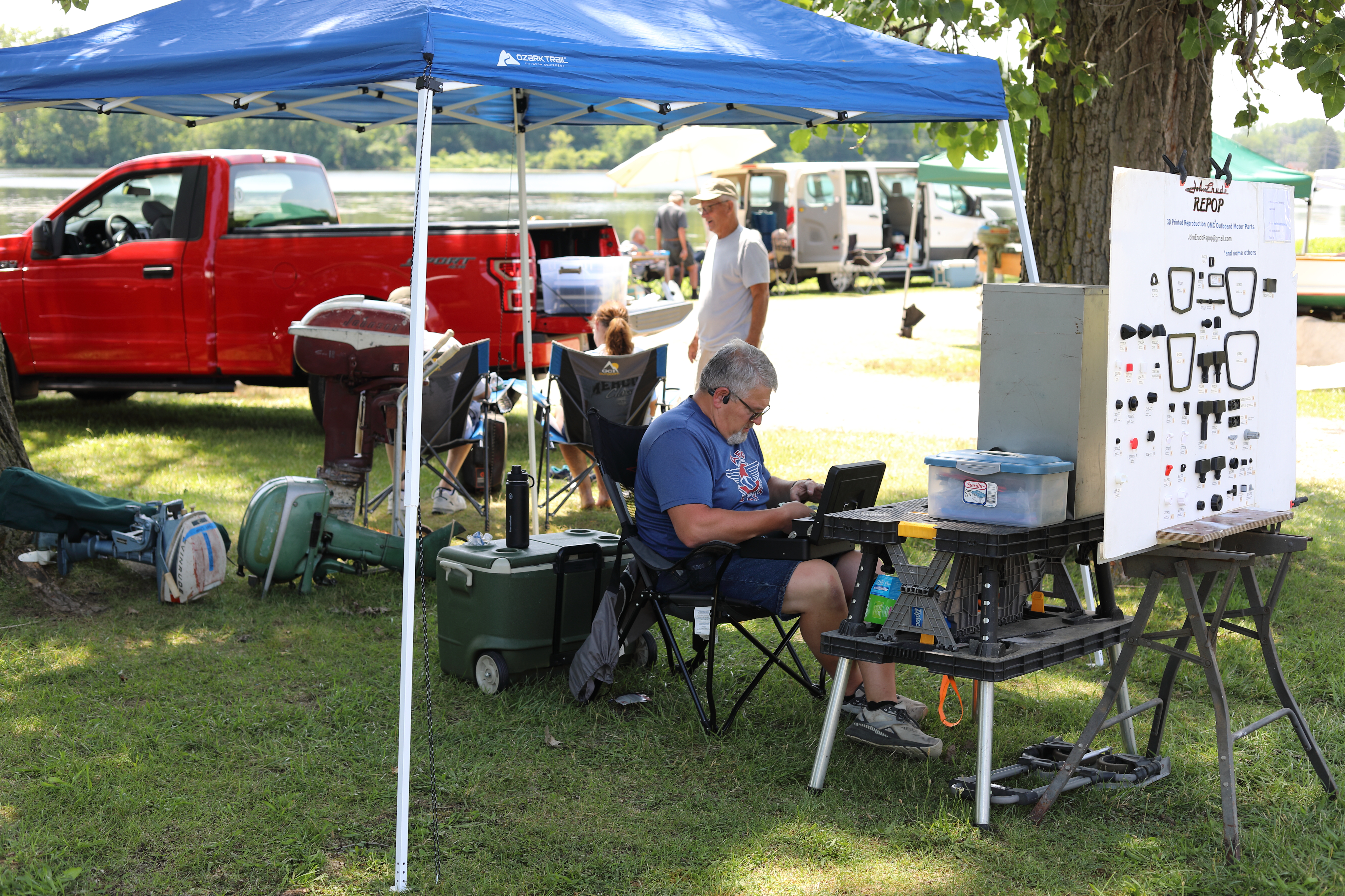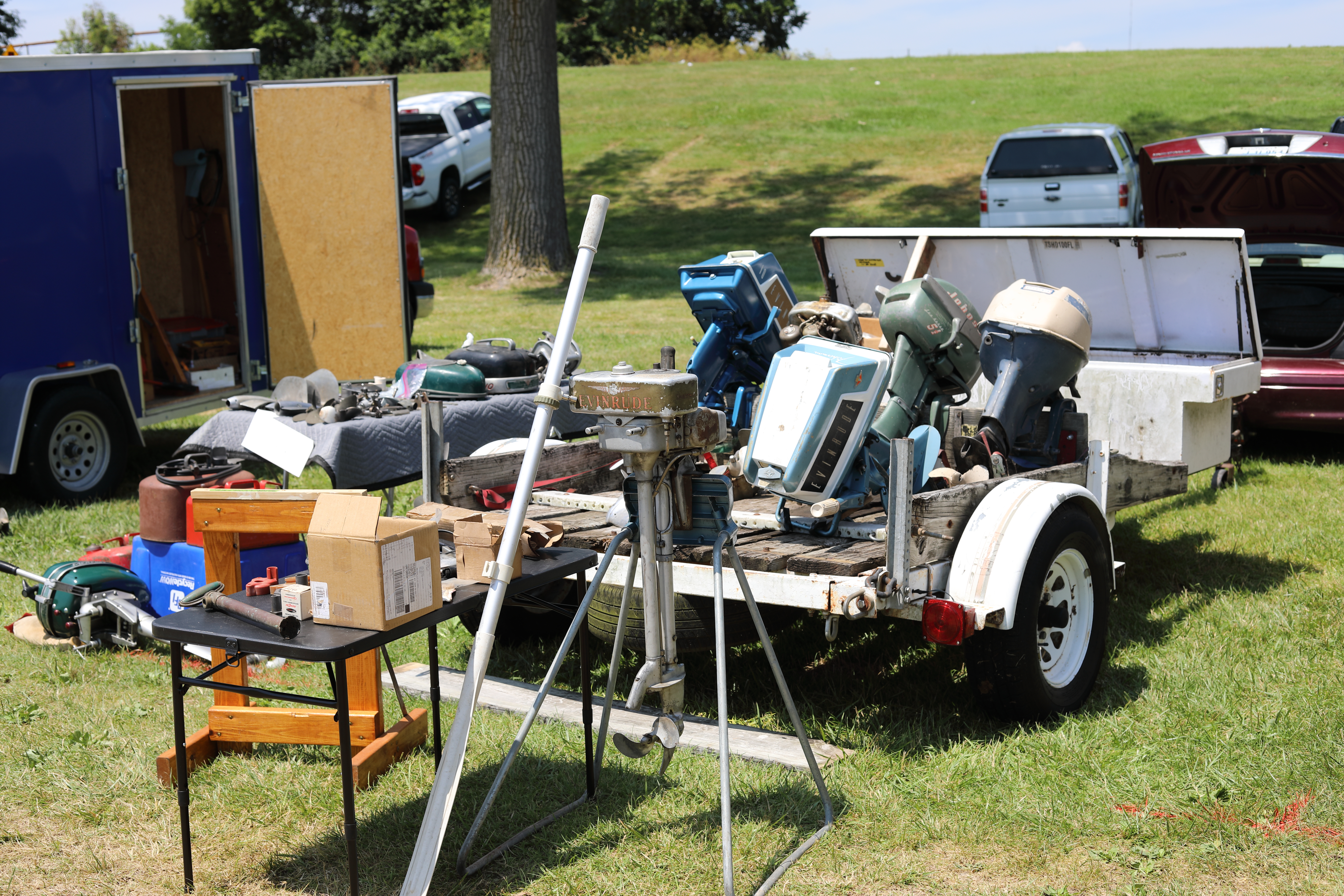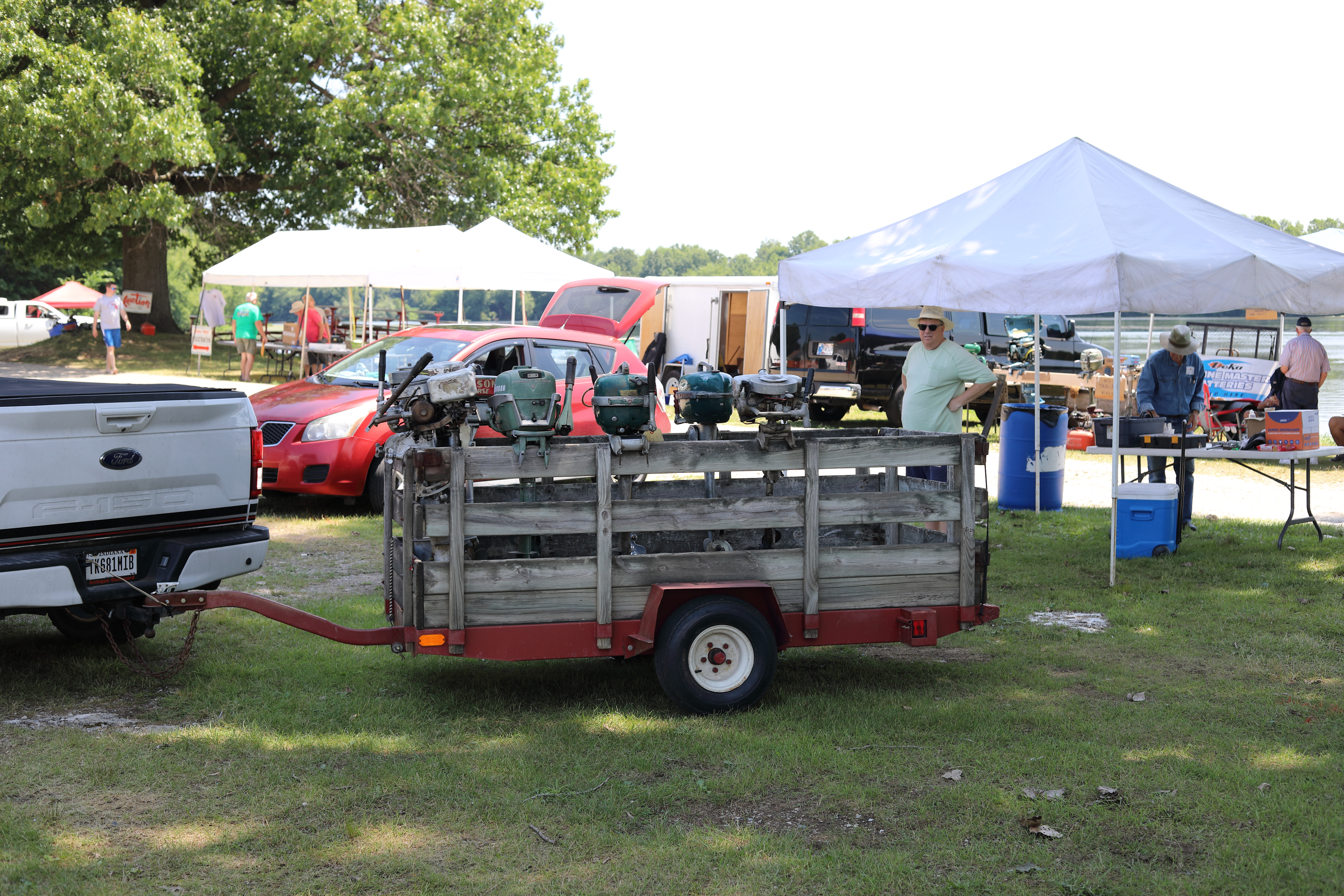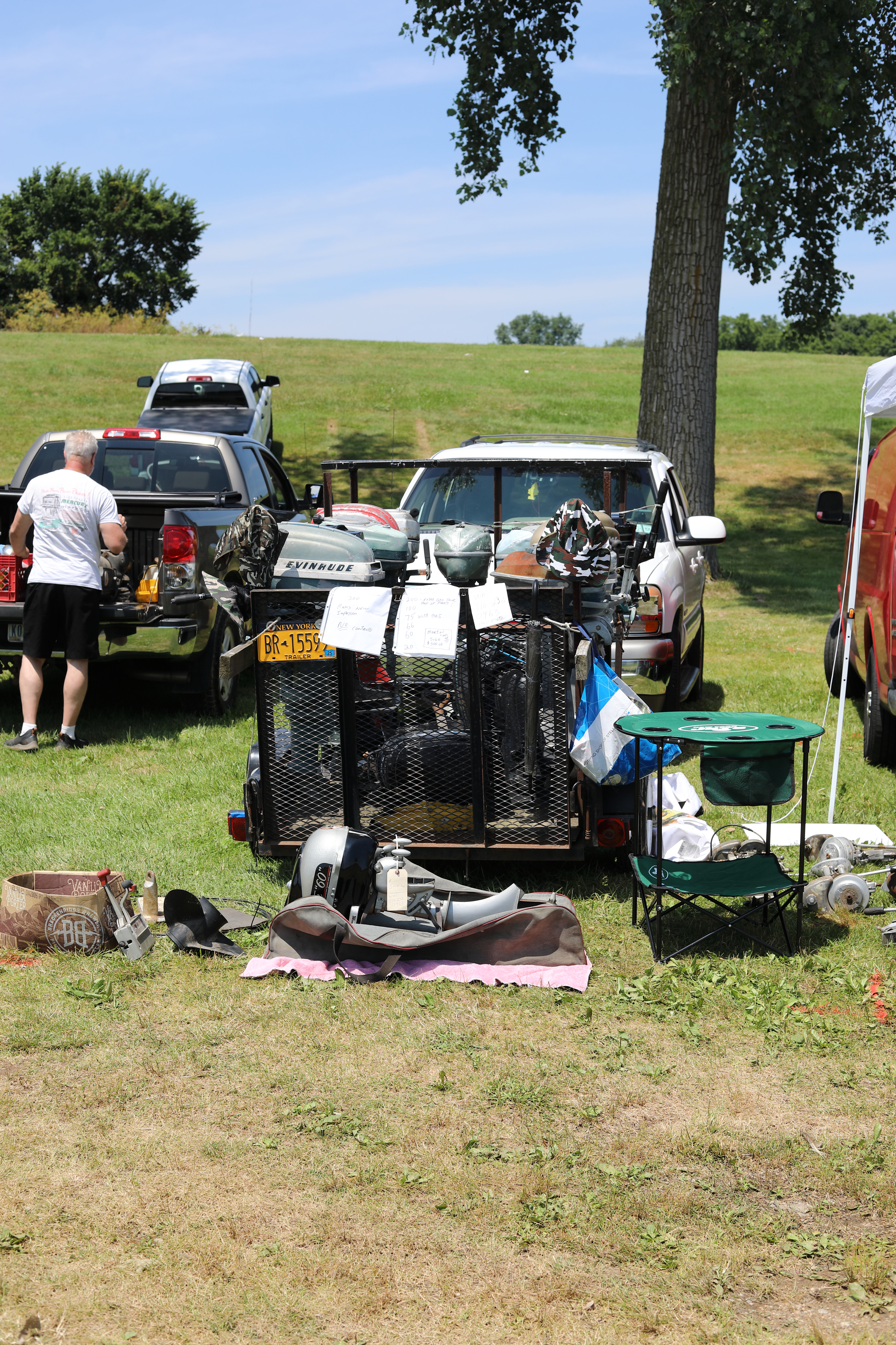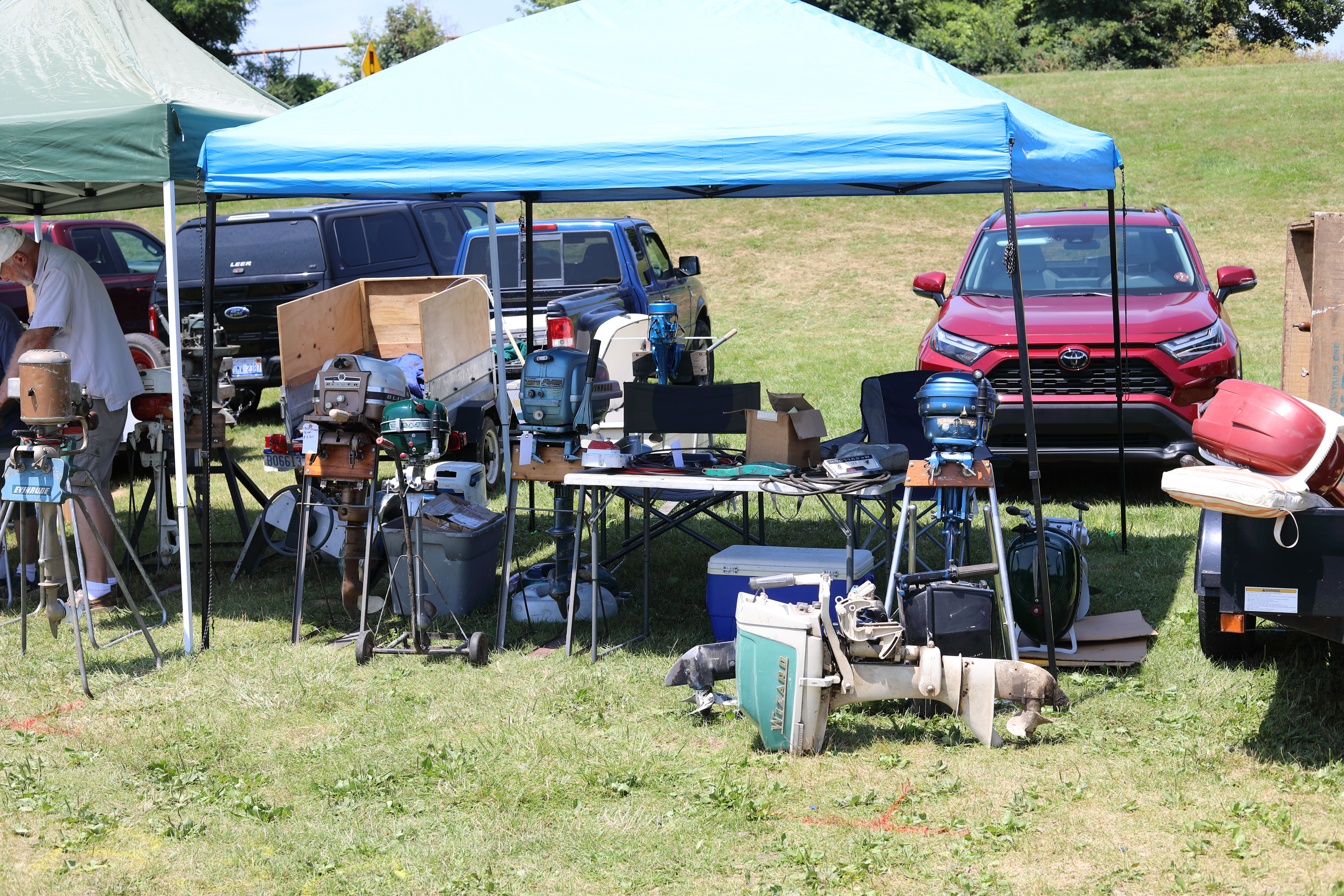 Very warm and sunny on Thursday, with an occasional pleasant breeze - the only day I could attend for these pictures. Good times and great deals on outboards and needed parts were found. Quite a few boats coming in all day with the promise of some great runs! There were many fantastic motor displays under the tent this year, as well as the annual Auction-Under-The-Tree that everyone seems to enjoy. Check the pictures under Motors to view some of these display motors.