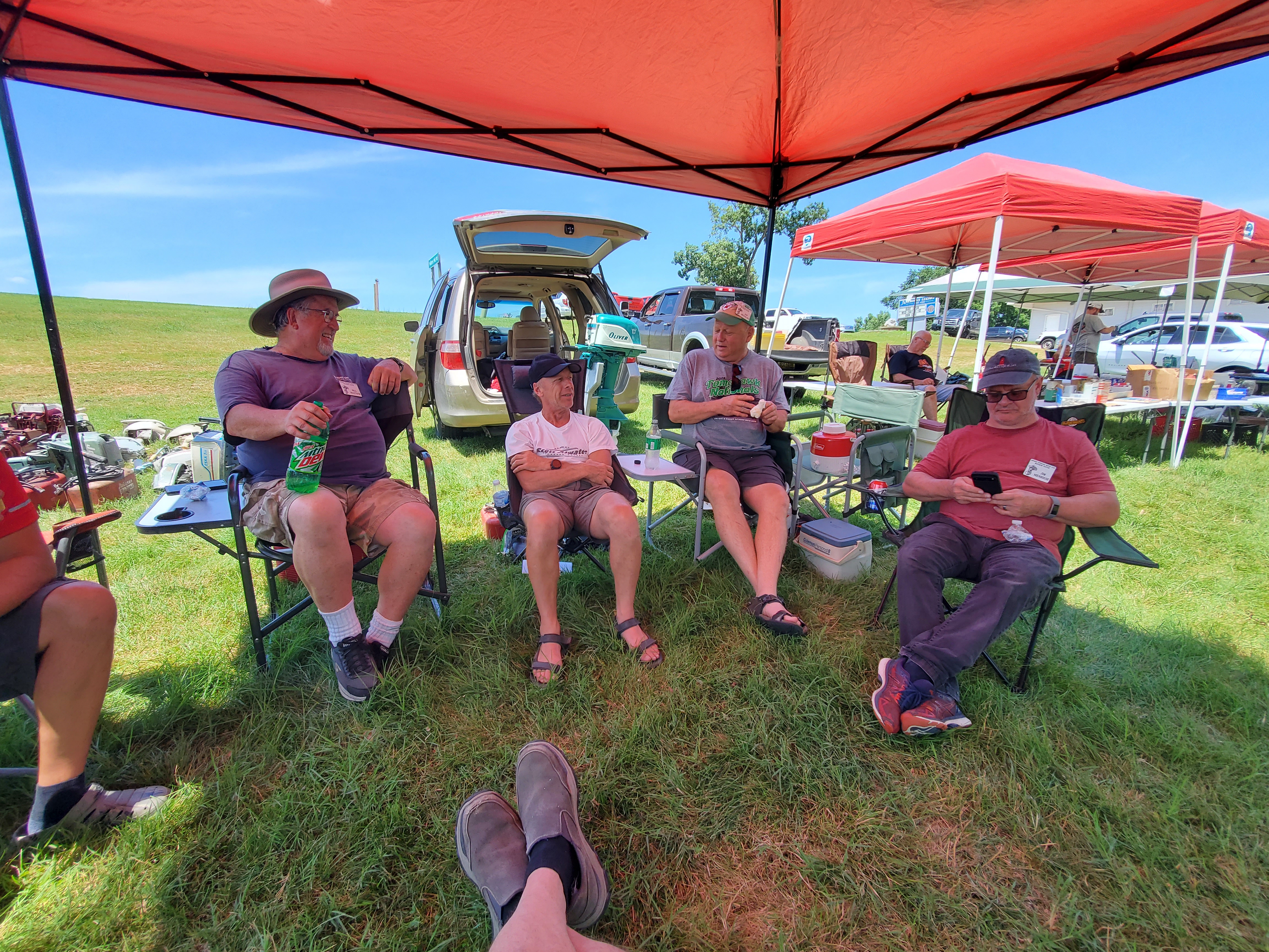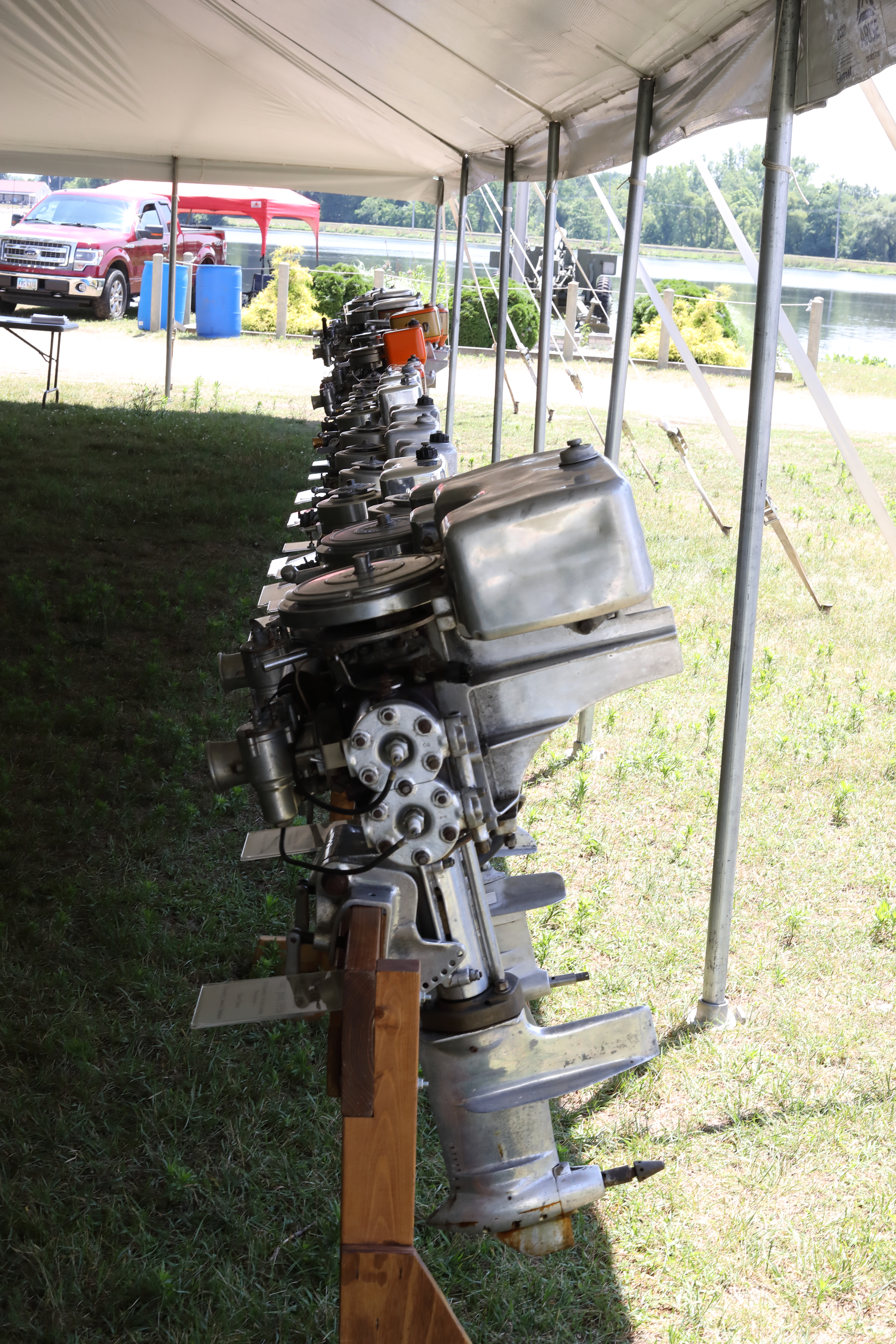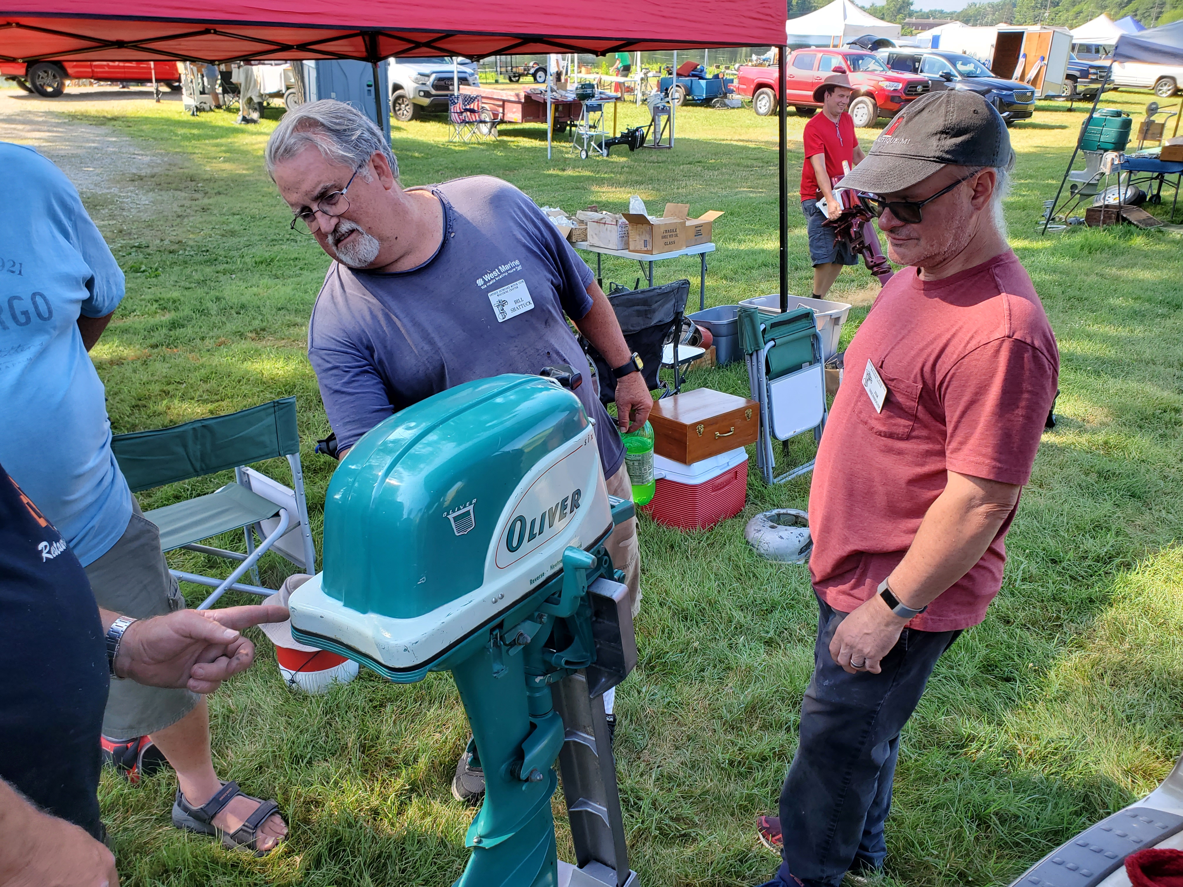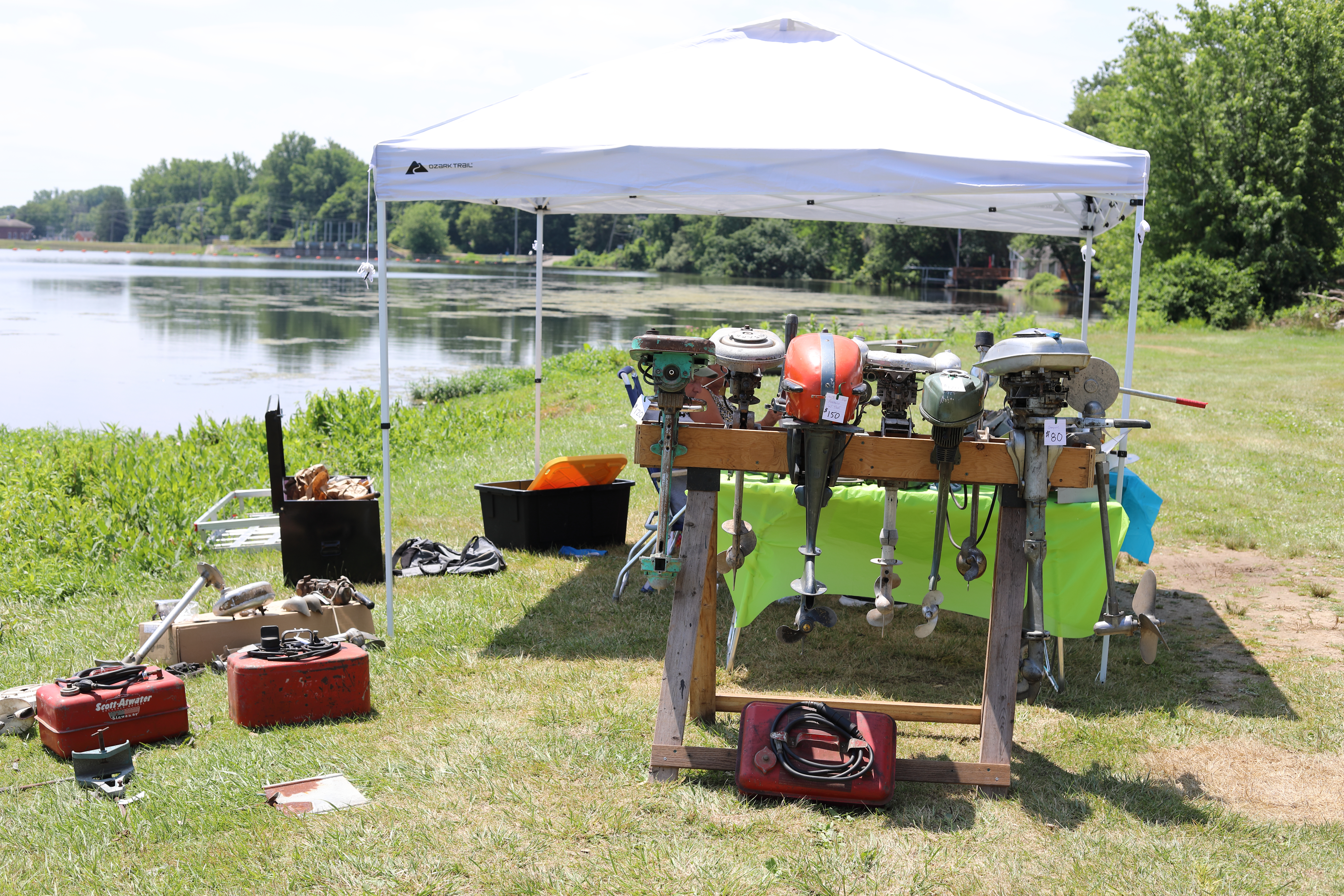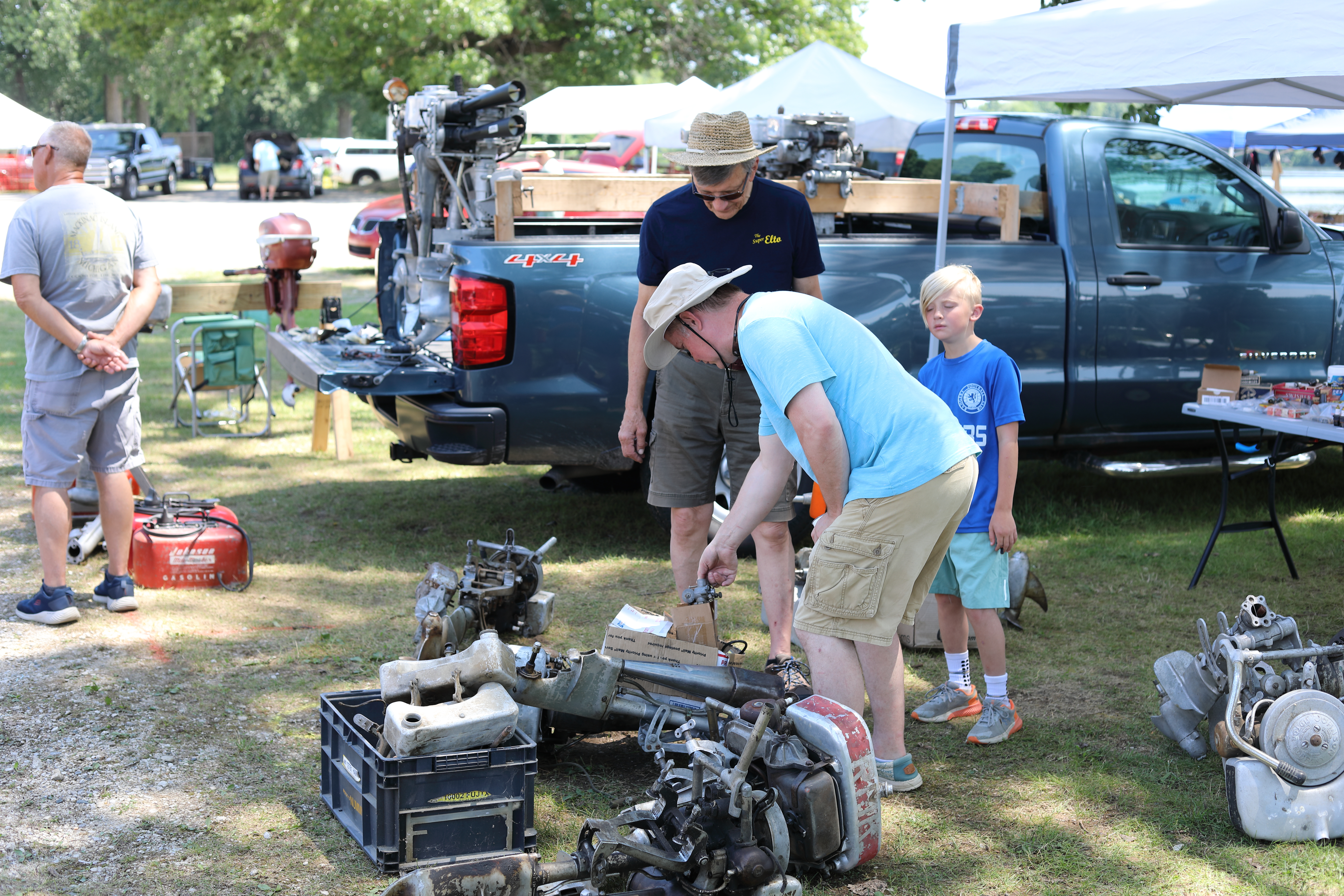 Very warm and sunny on Thursday, with an occasional pleasant breeze - the only day I could attend for these pictures. Good times and great deals on outboards and needed parts were found. Quite a few boats coming in all day with the promise of some great runs! There were many fantastic motor displays under the tent this year, as well as the annual Auction-Under-The-Tree that everyone seems to enjoy. Check the pictures under Motors to view some of these display motors.