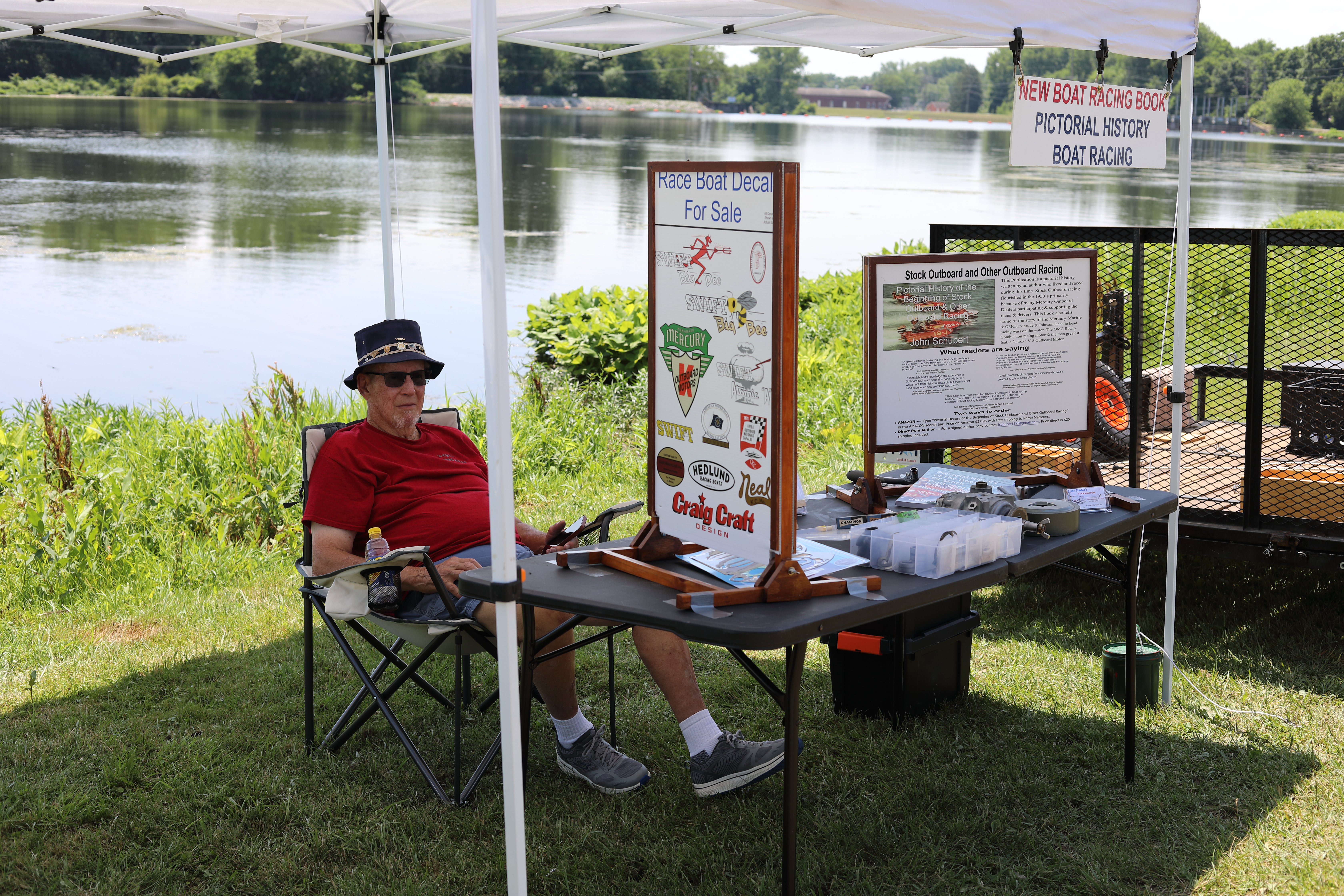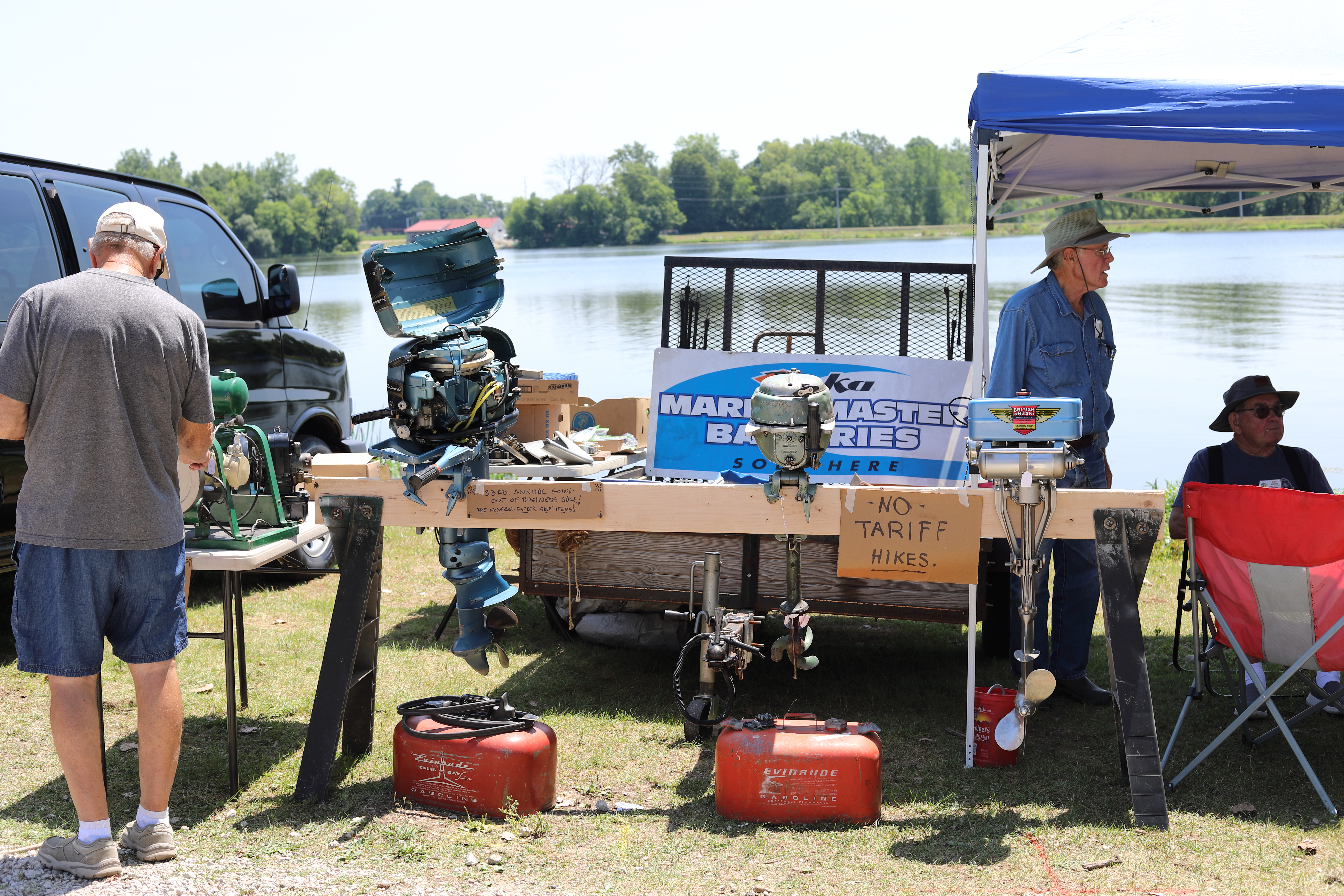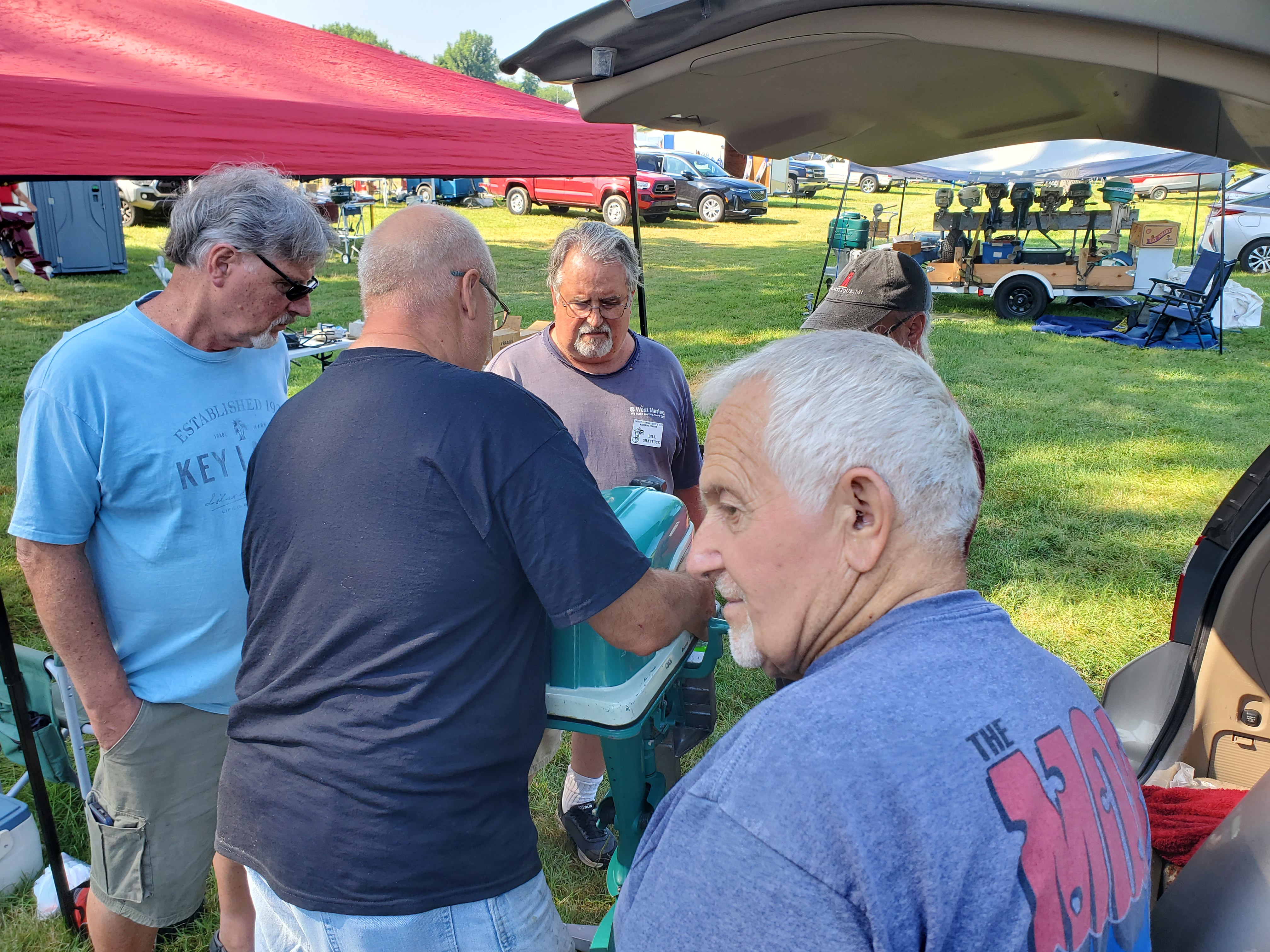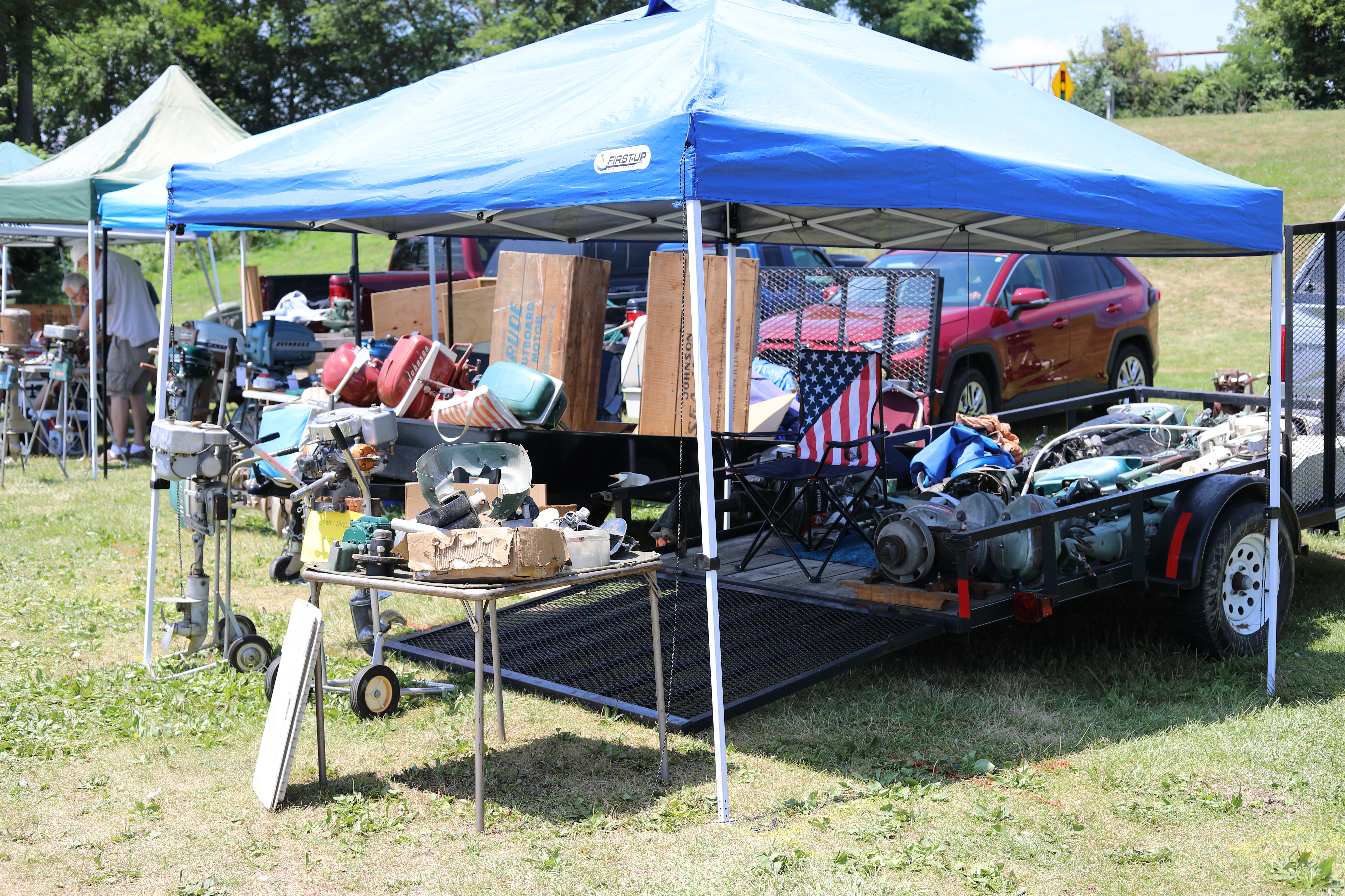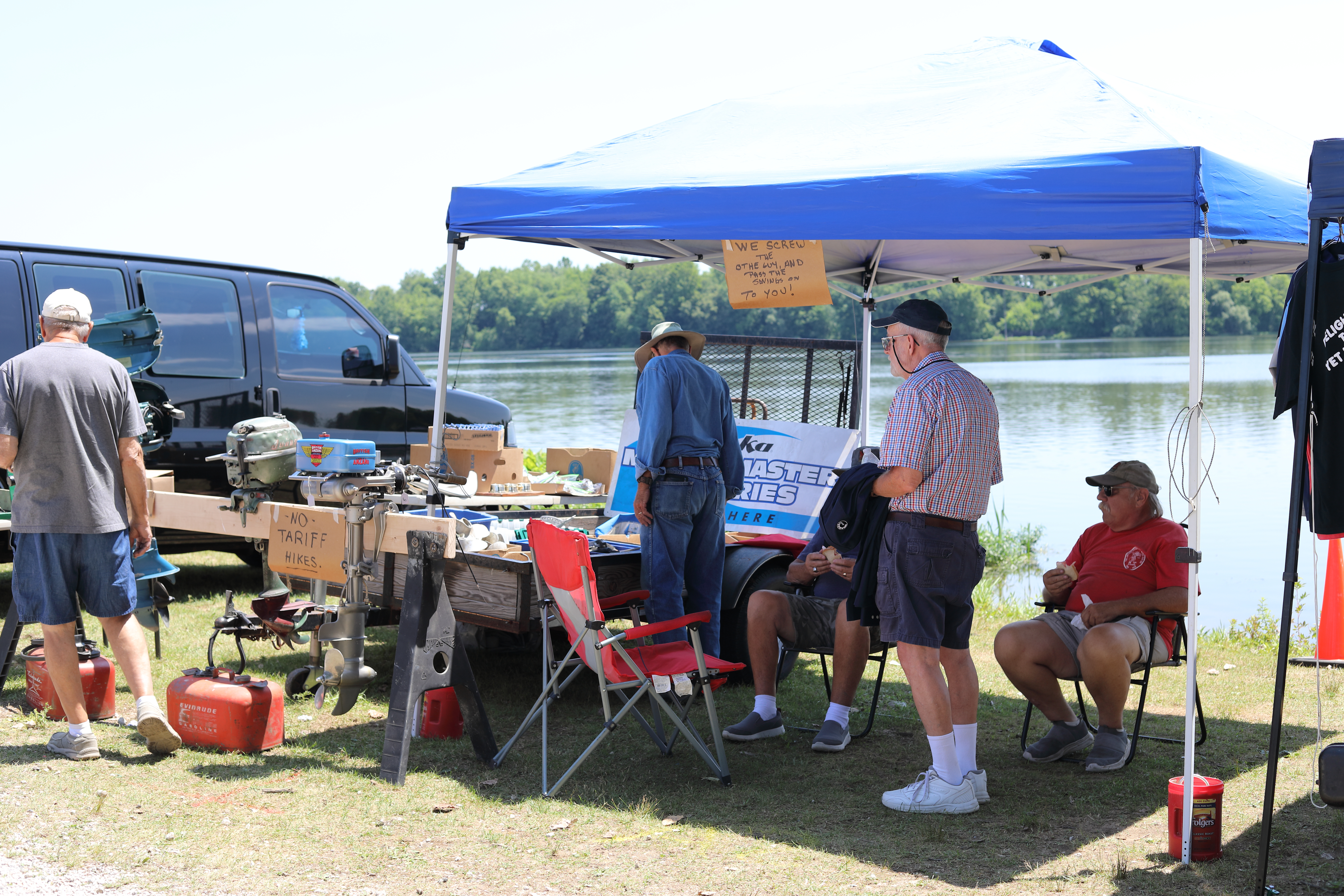 Very warm and sunny on Thursday, with an occasional pleasant breeze - the only day I could attend for these pictures. Good times and great deals on outboards and needed parts were found. Quite a few boats coming in all day with the promise of some great runs! There were many fantastic motor displays under the tent this year, as well as the annual Auction-Under-The-Tree that everyone seems to enjoy. Check the pictures under Motors to view some of these display motors.