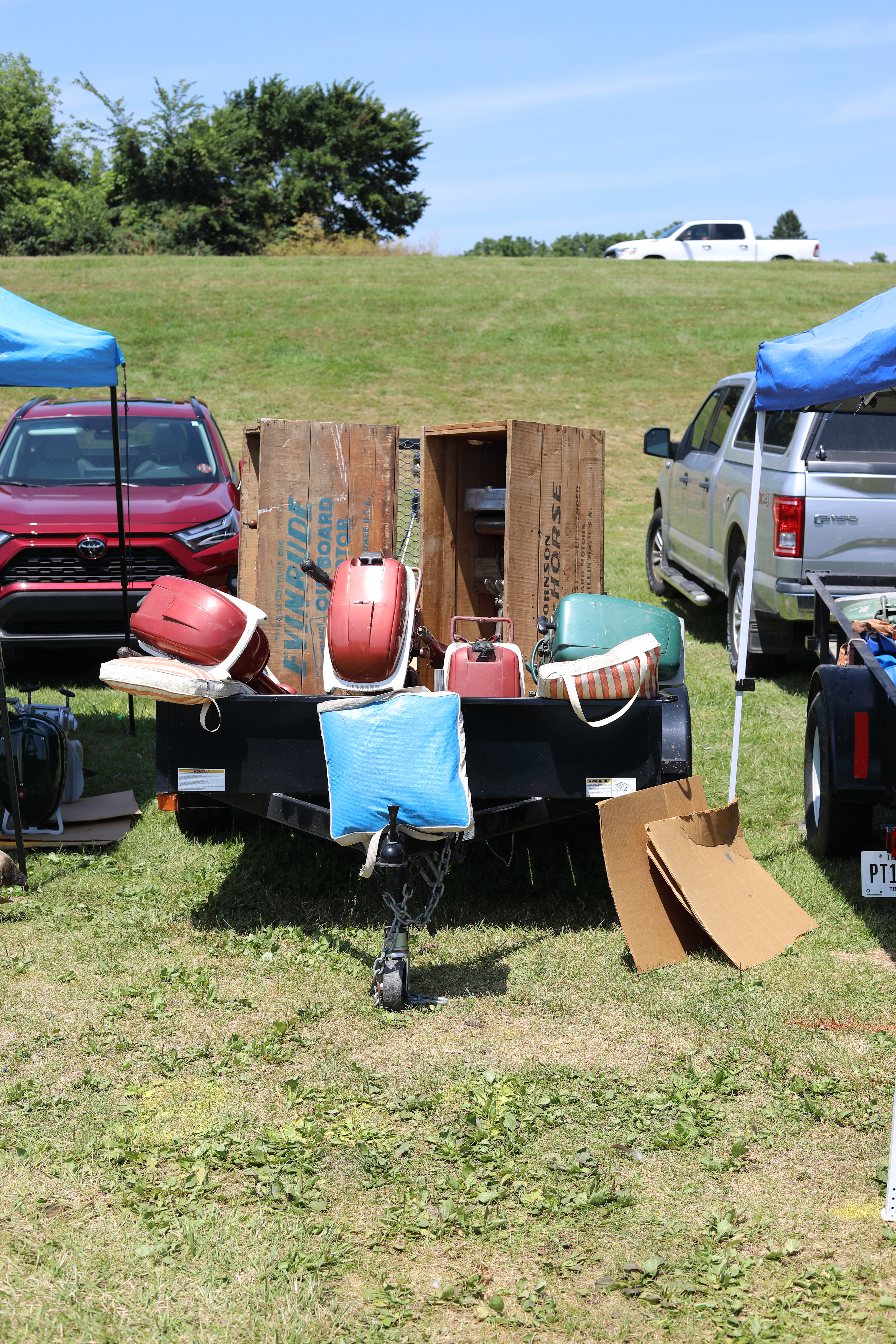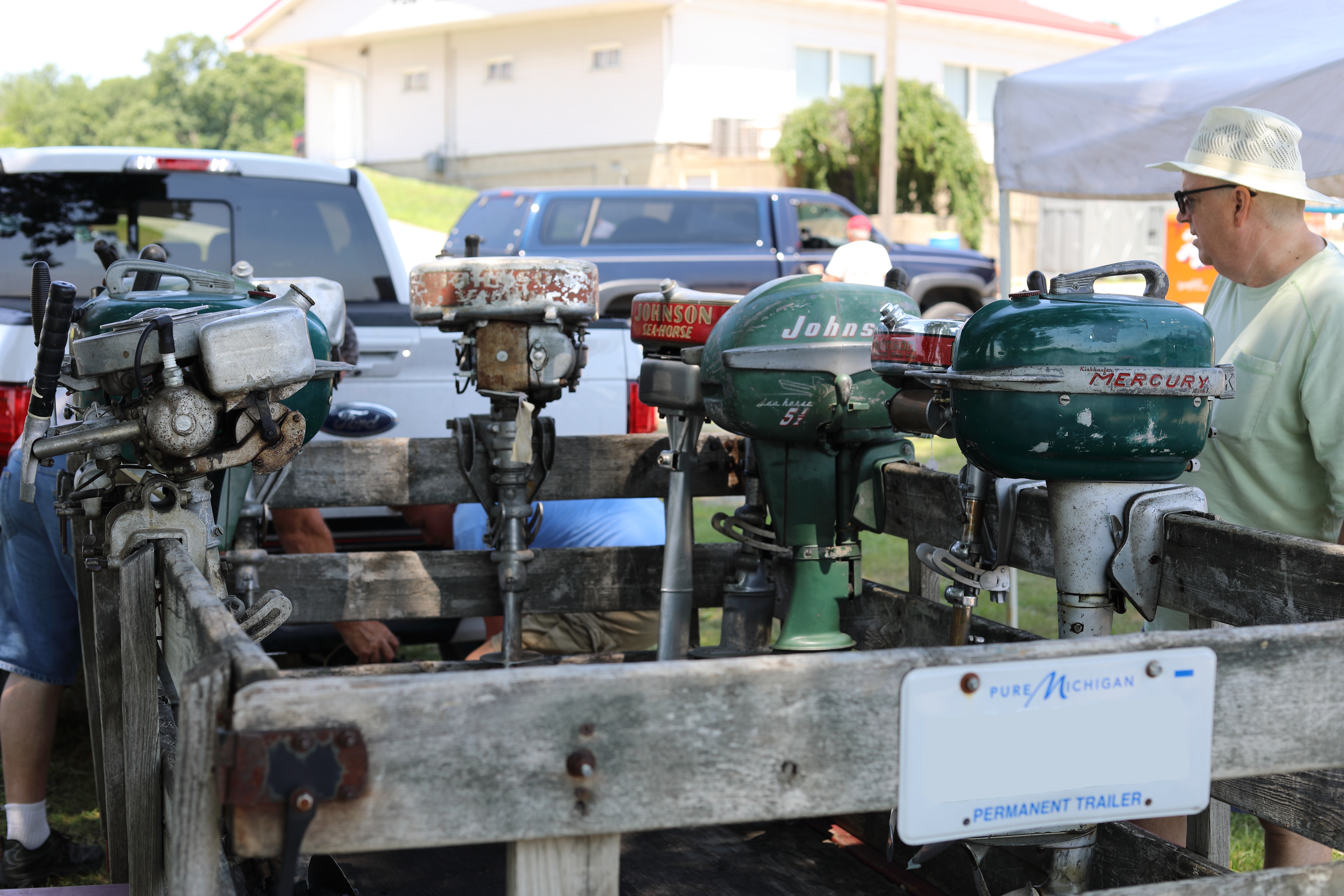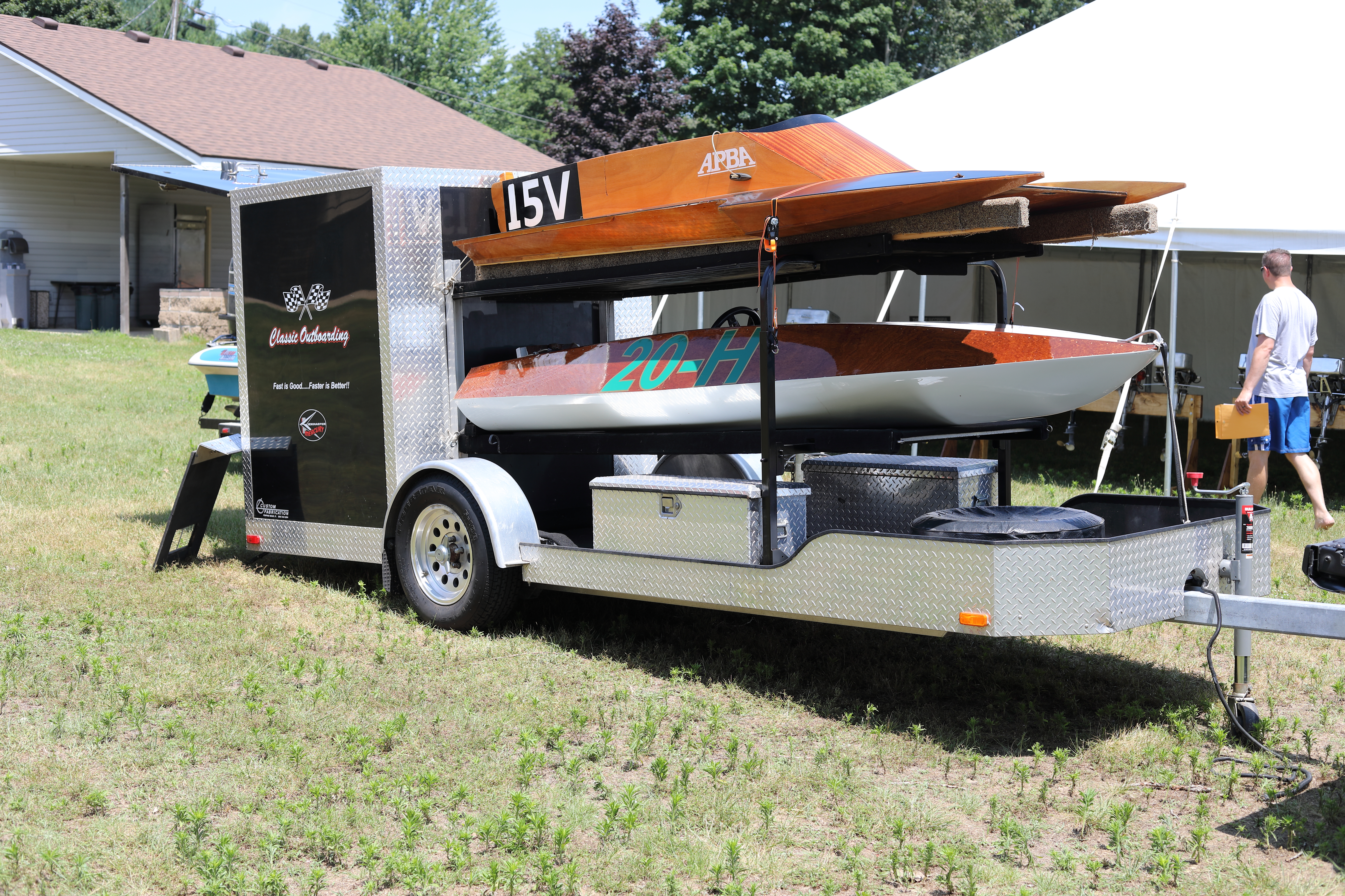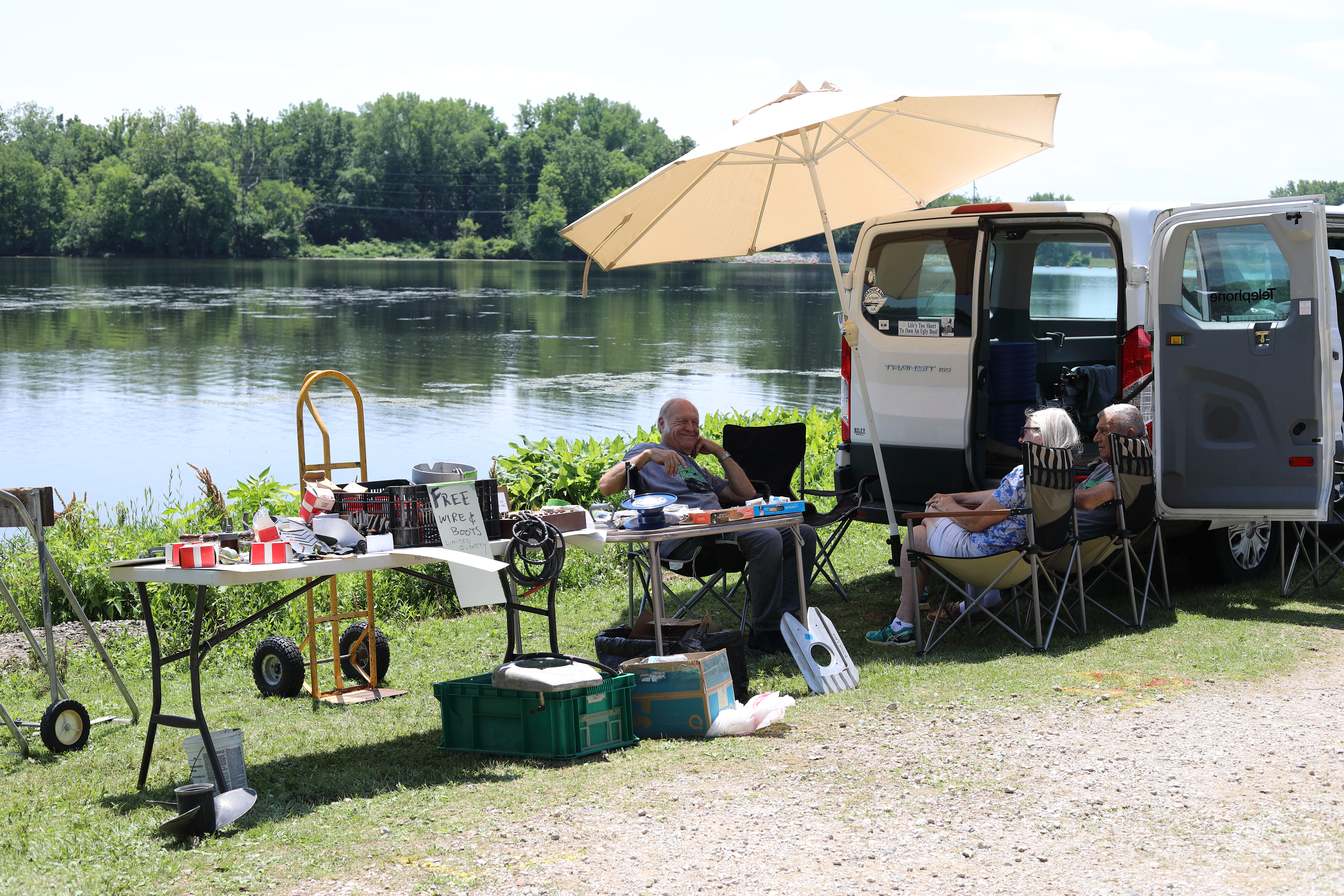 Very warm and sunny on Thursday, with an occasional pleasant breeze - the only day I could attend for these pictures. Good times and great deals on outboards and needed parts were found. Quite a few boats coming in all day with the promise of some great runs! There were many fantastic motor displays under the tent this year, as well as the annual Auction-Under-The-Tree that everyone seems to enjoy. Check the pictures under Motors to view some of these display motors.