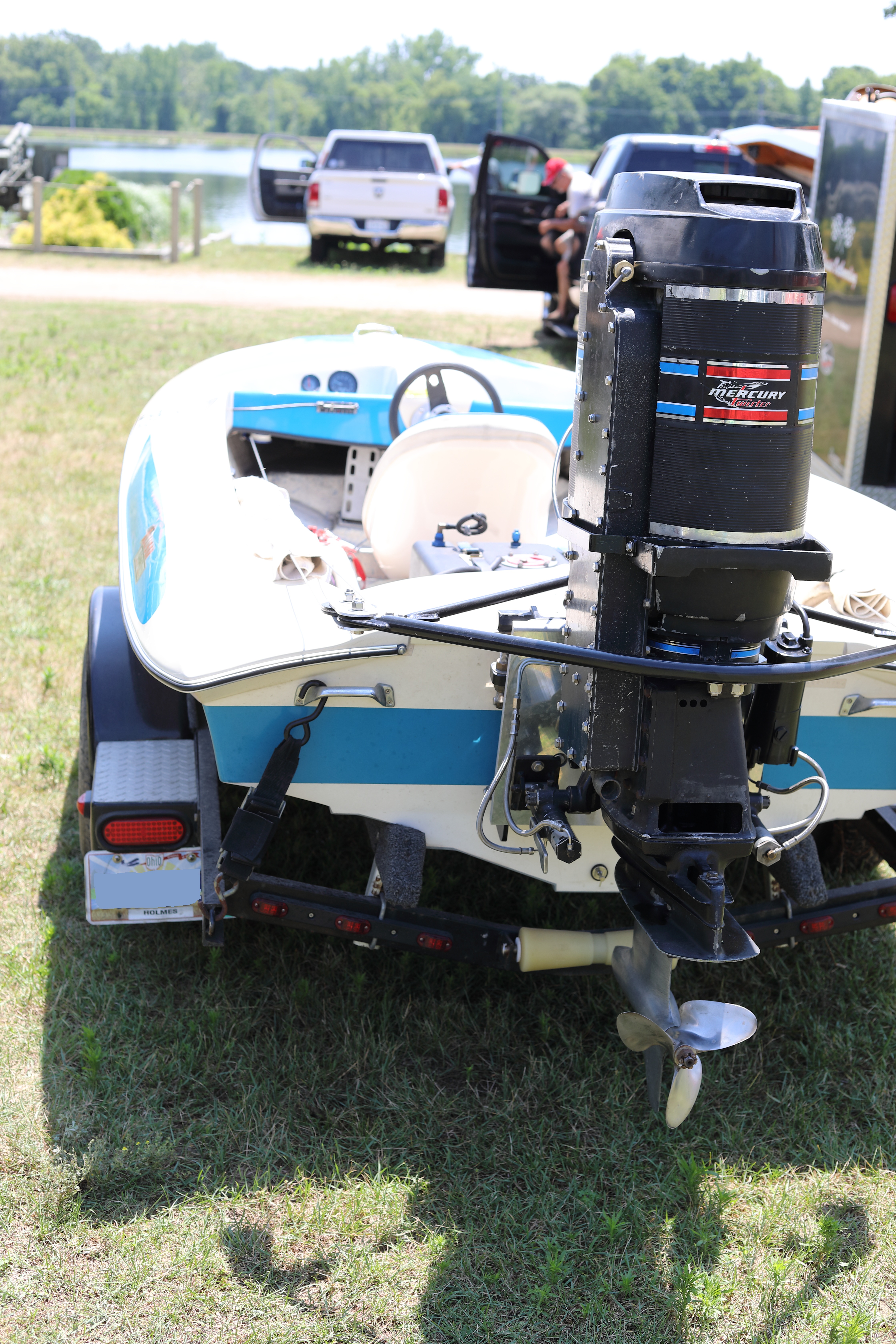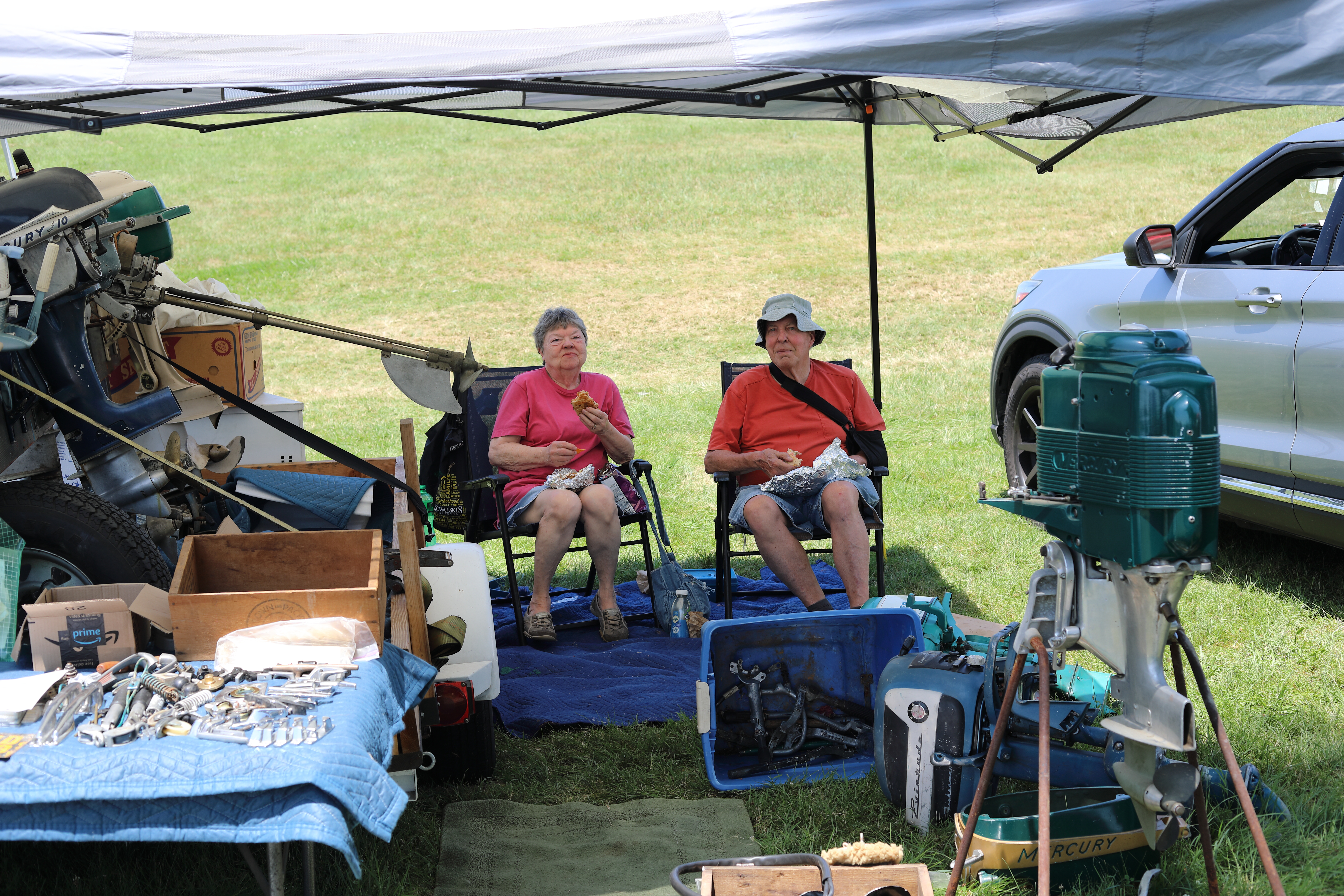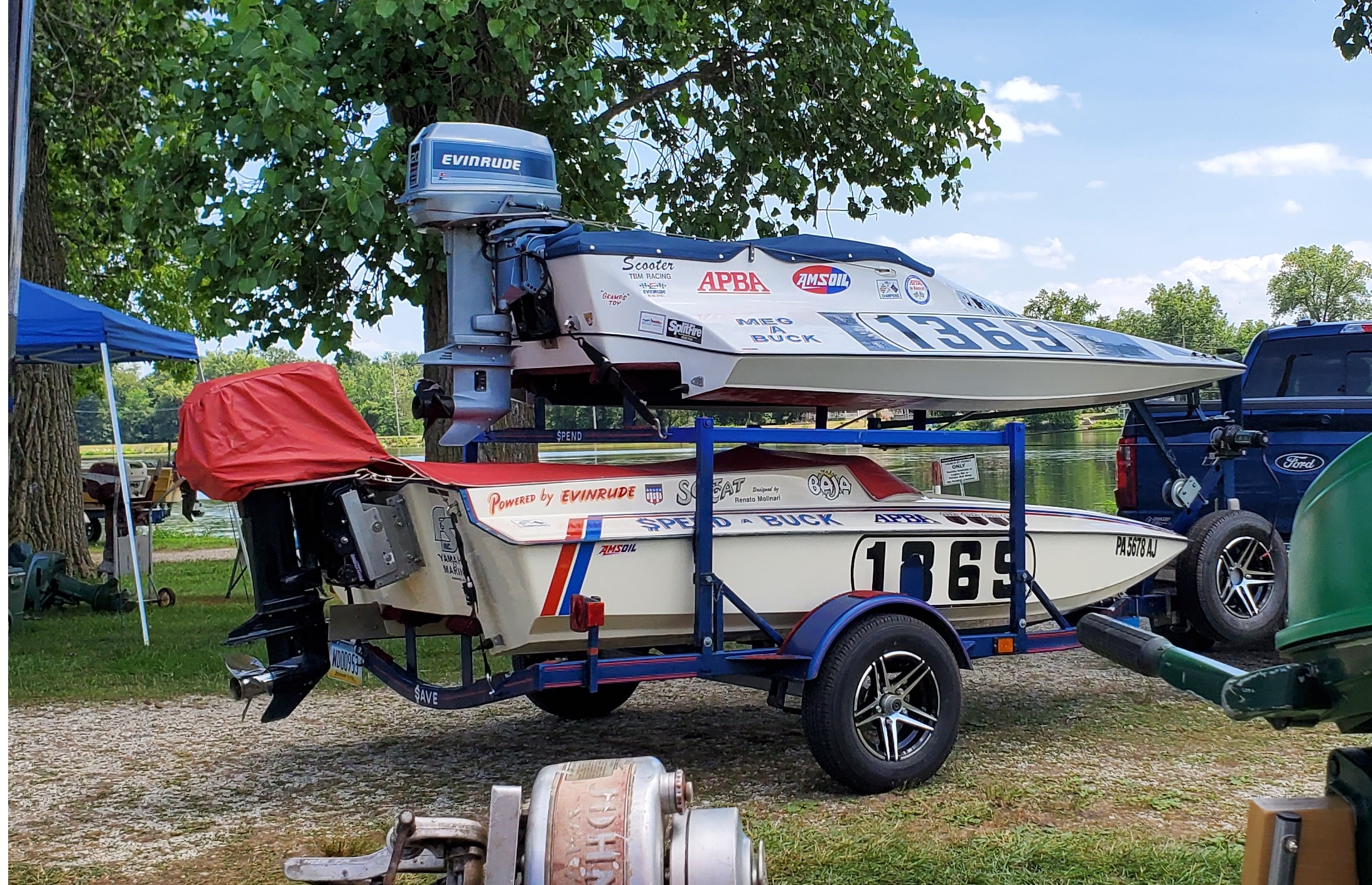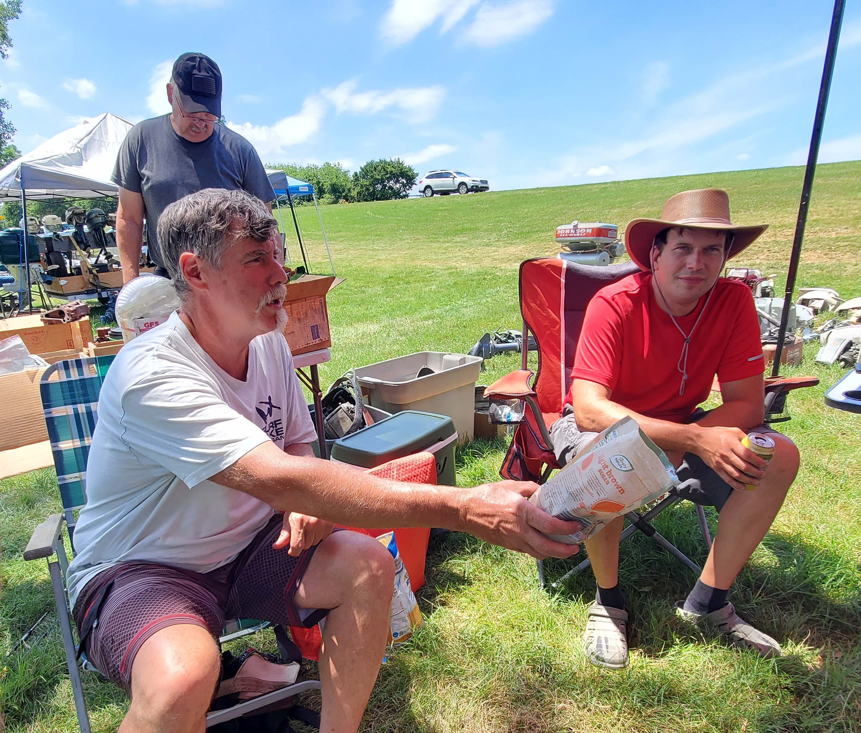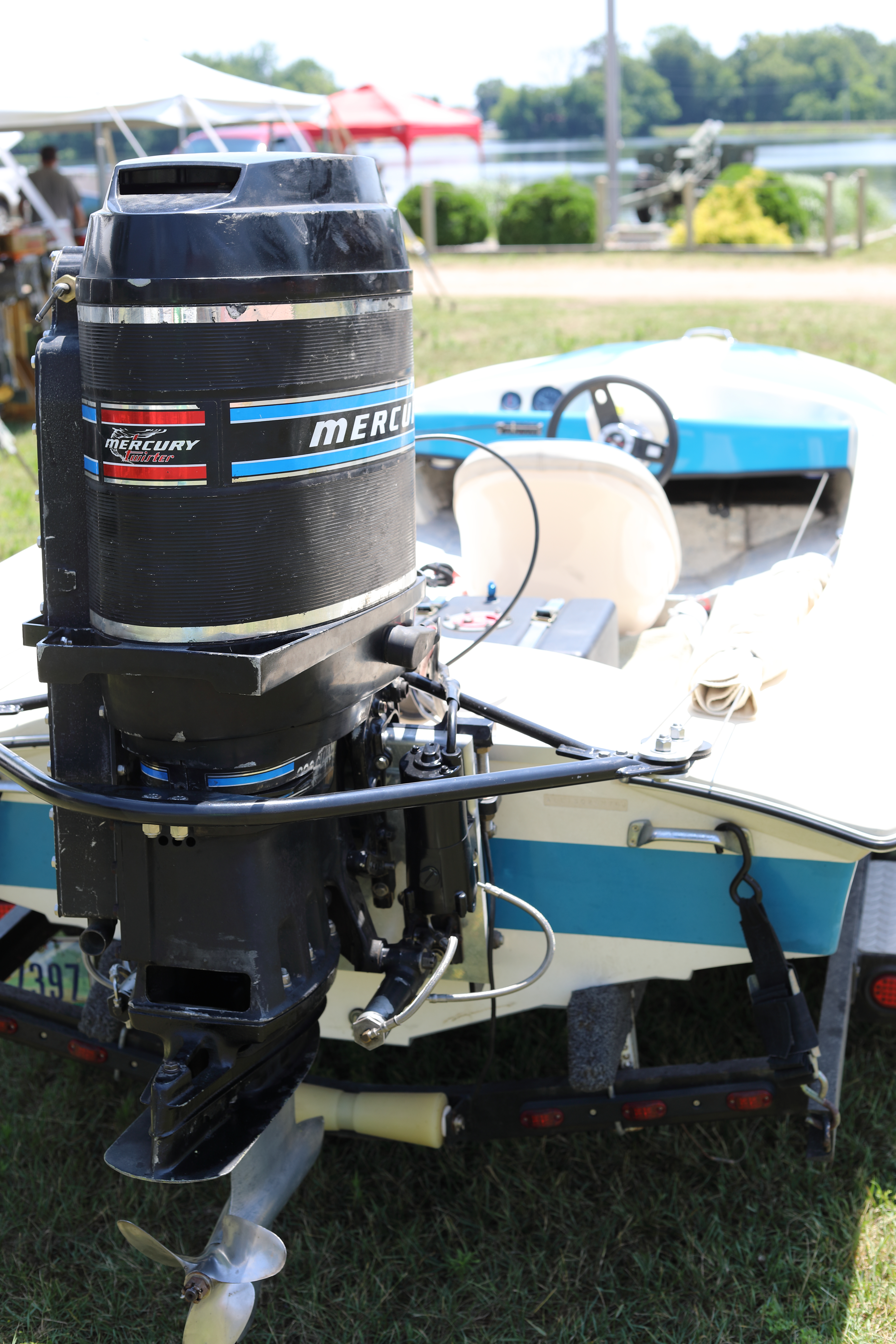 Very warm and sunny on Thursday, with an occasional pleasant breeze - the only day I could attend for these pictures. Good times and great deals on outboards and needed parts were found. Quite a few boats coming in all day with the promise of some great runs! There were many fantastic motor displays under the tent this year, as well as the annual Auction-Under-The-Tree that everyone seems to enjoy. Check the pictures under Motors to view some of these display motors.