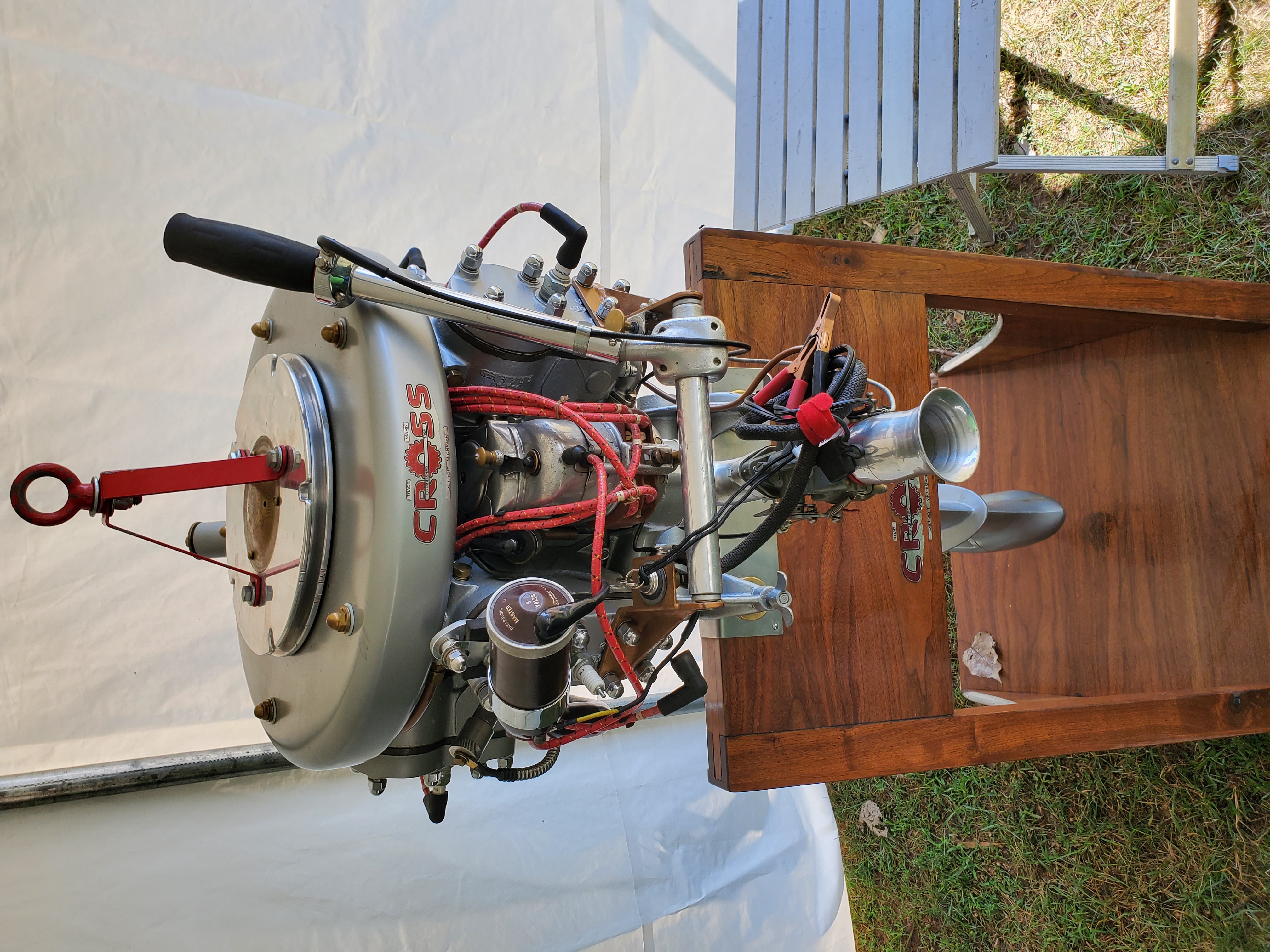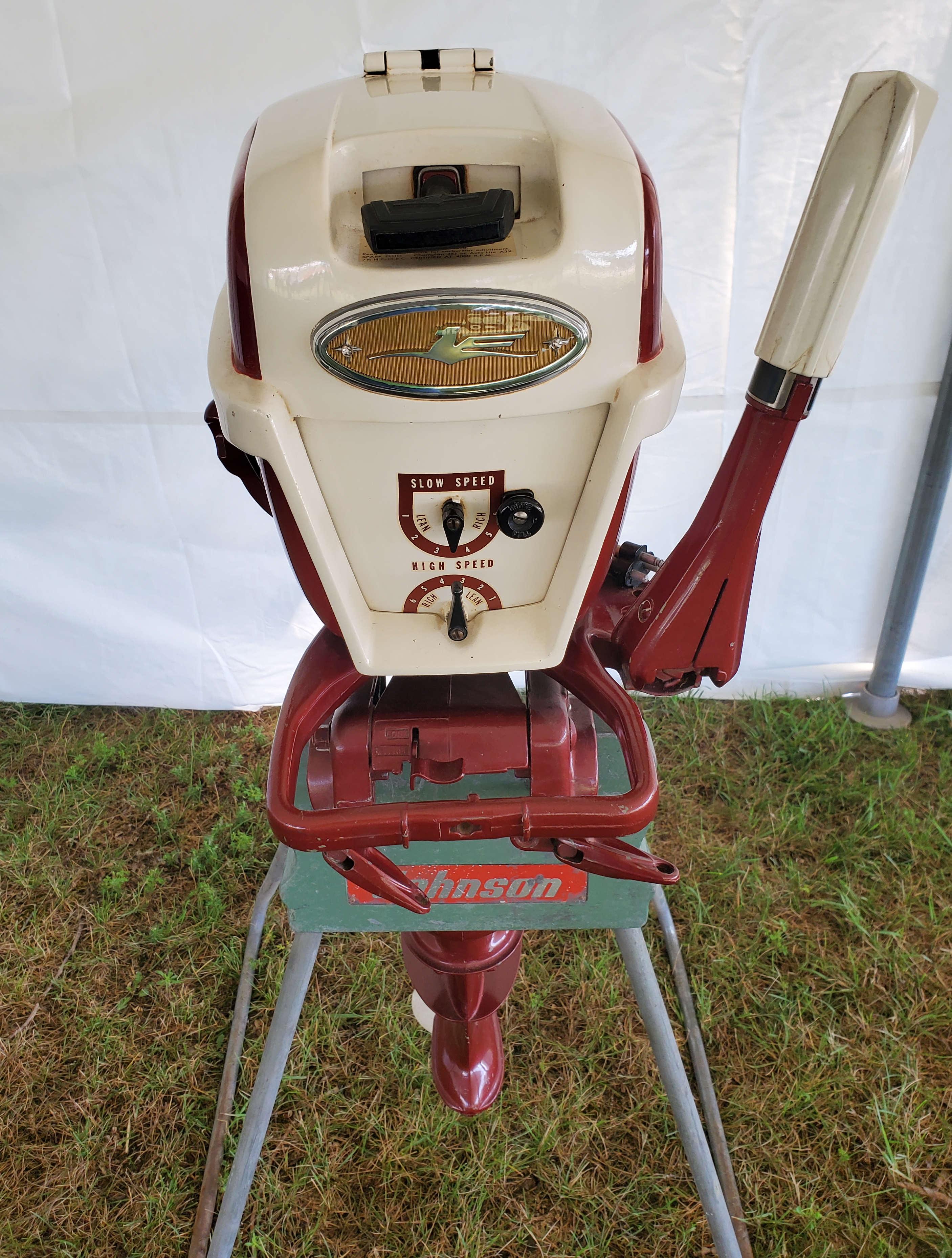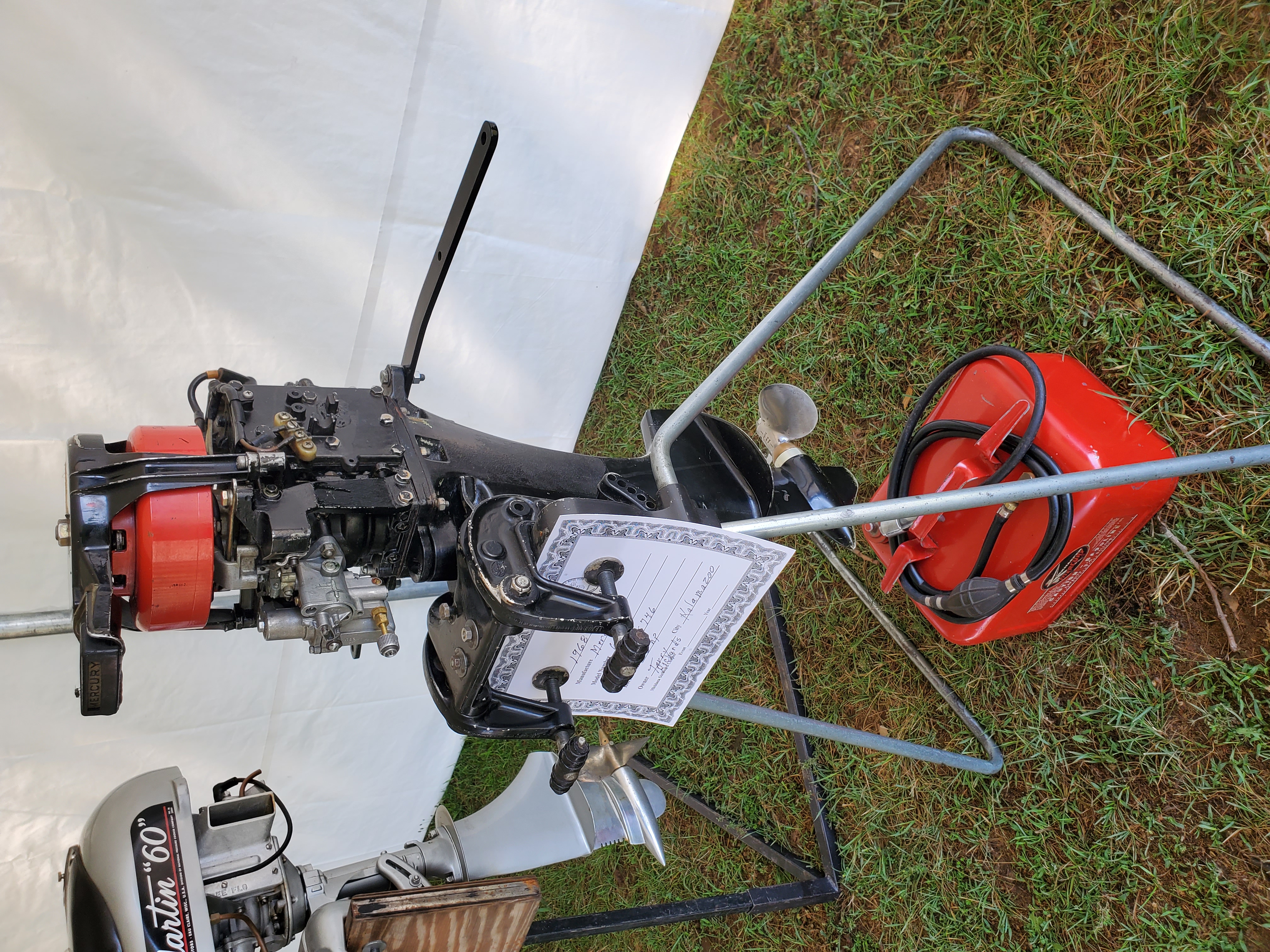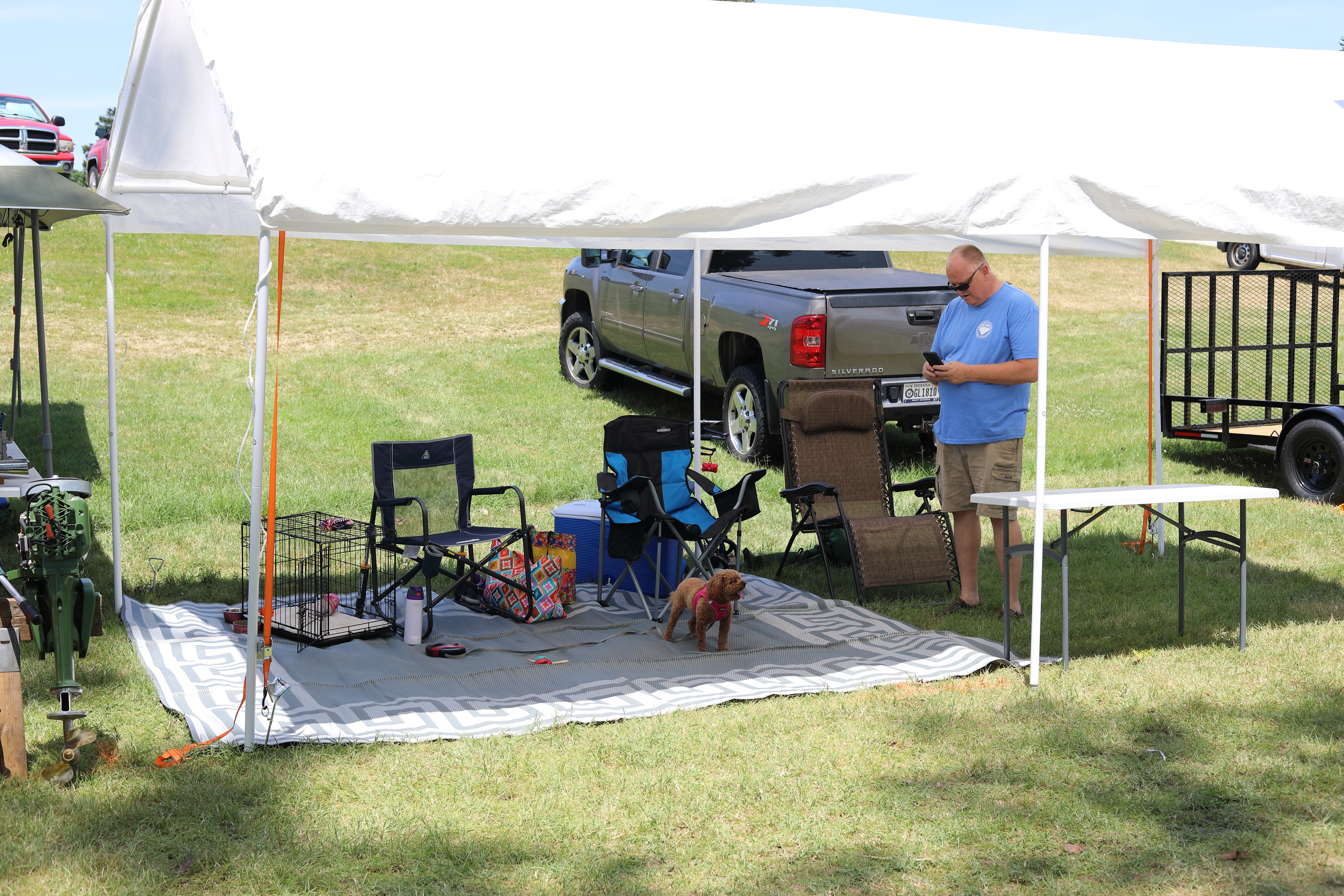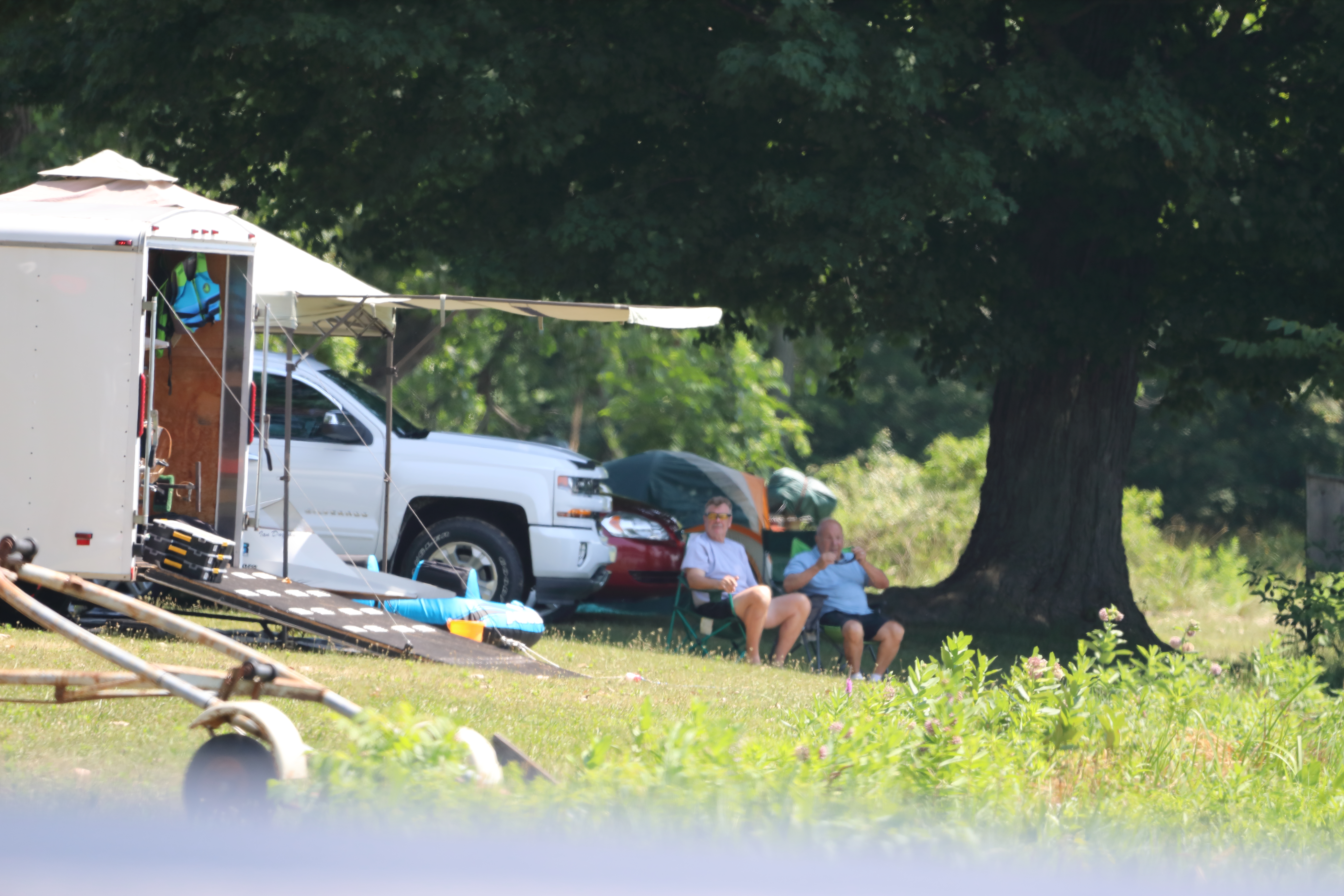 Very warm and sunny on Thursday, with an occasional pleasant breeze - the only day I could attend for these pictures. Good times and great deals on outboards and needed parts were found. Quite a few boats coming in all day with the promise of some great runs! There were many fantastic motor displays under the tent this year, as well as the annual Auction-Under-The-Tree that everyone seems to enjoy. Check the pictures under Motors to view some of these display motors.
