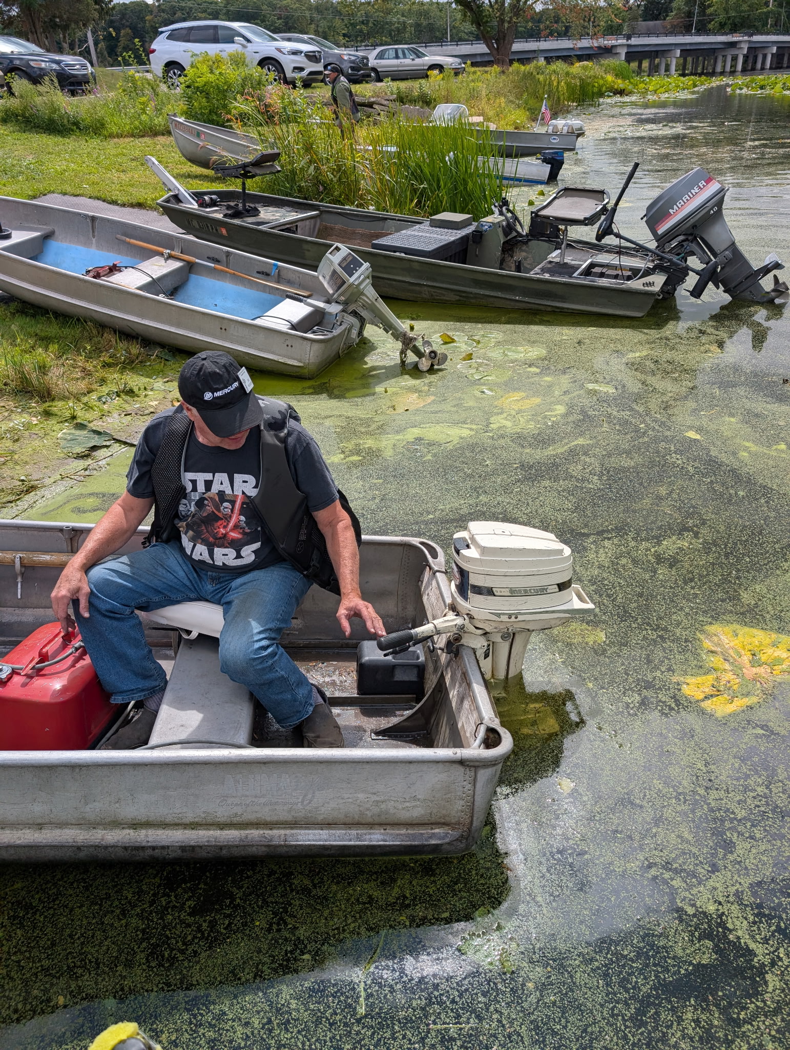 This turned out to be a very good meet, hosted by Craig Brumley - with lots of boats on the water! Most of our motors cooperated well, and some actual racing occurred out there - LOL.